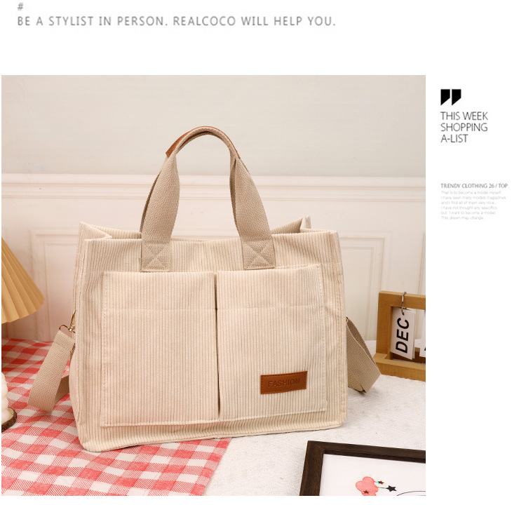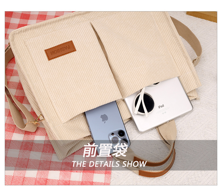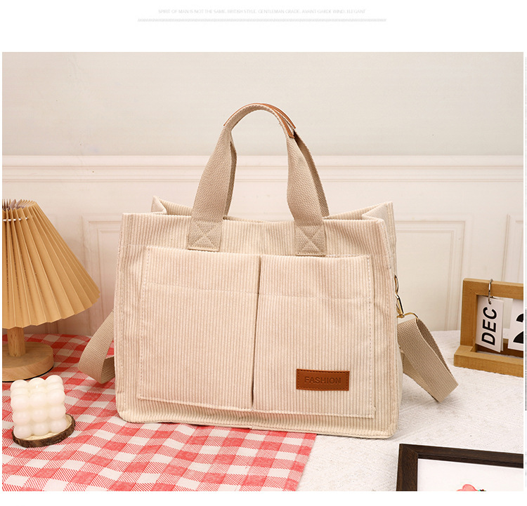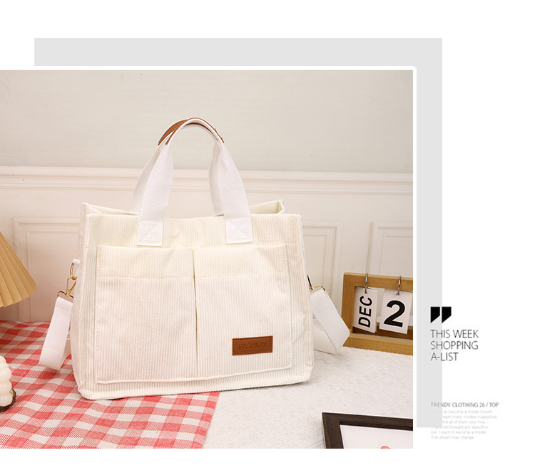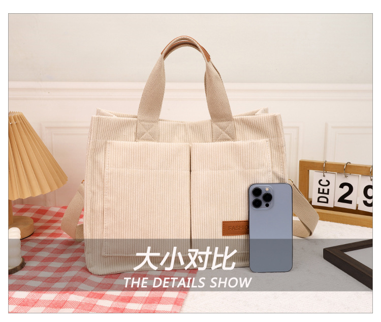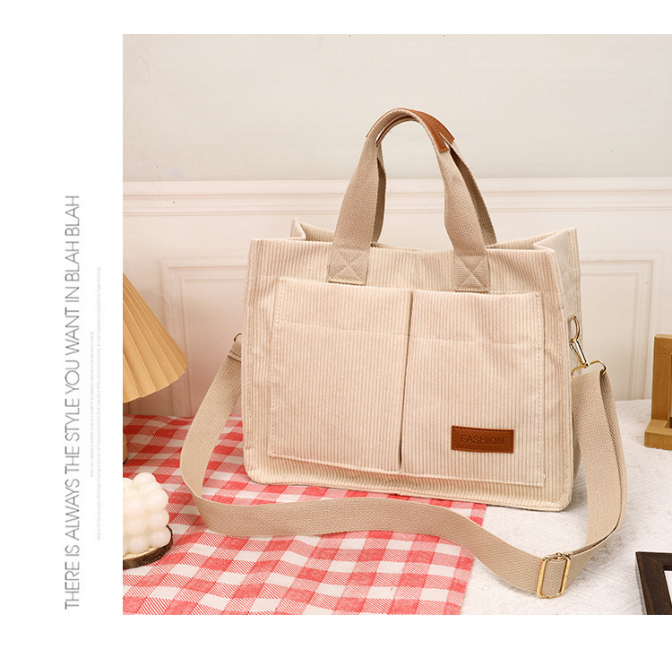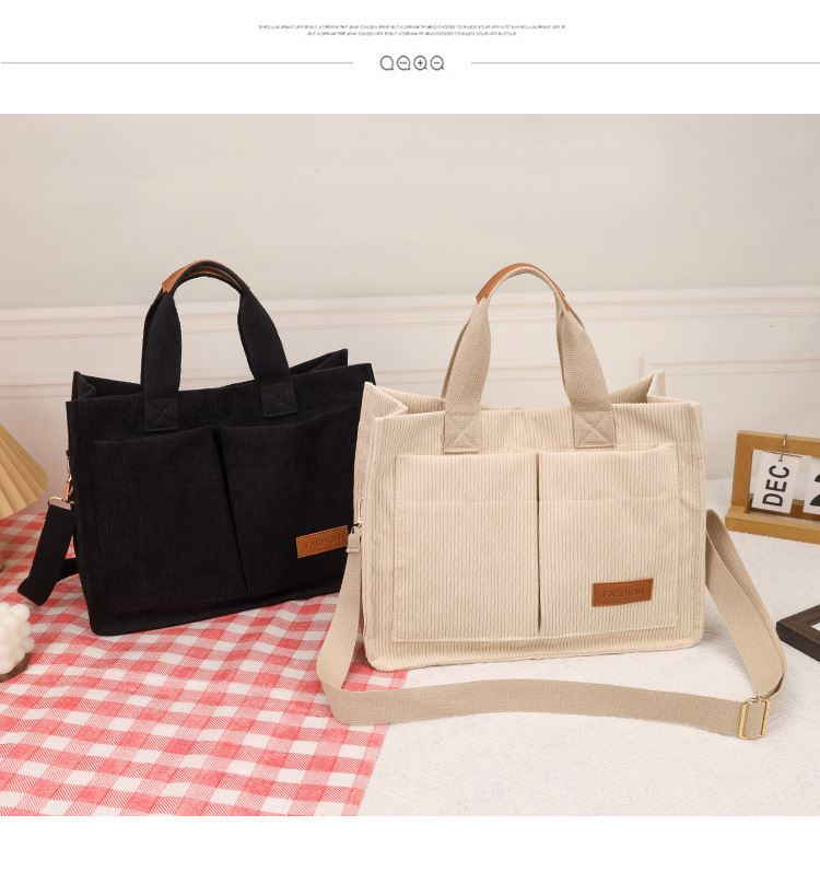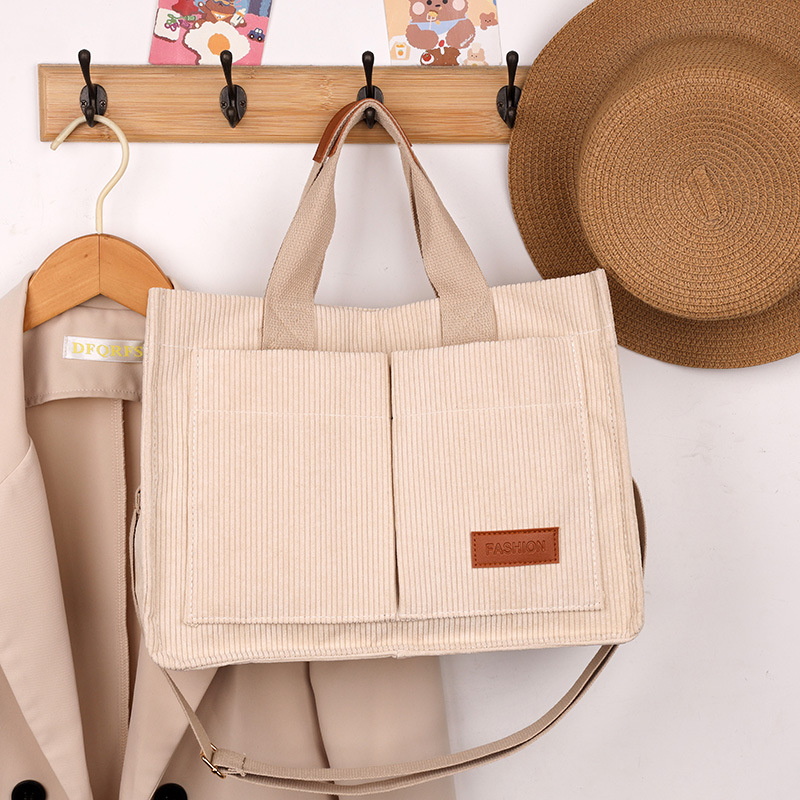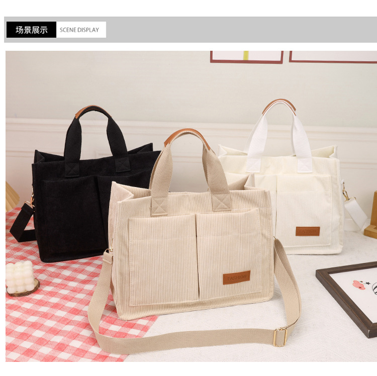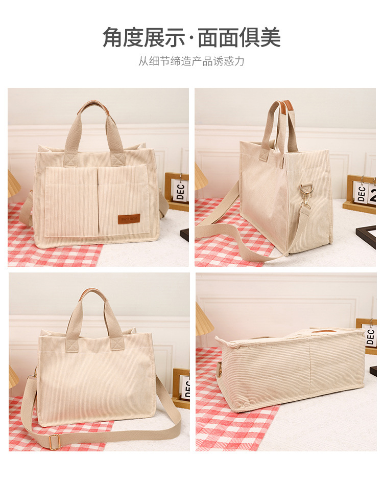 托特包女大容量时尚灯芯绒单肩包休闲复古简约手提包斜挎包通勤包