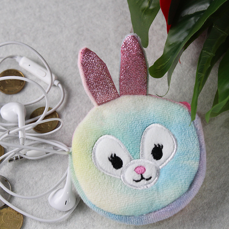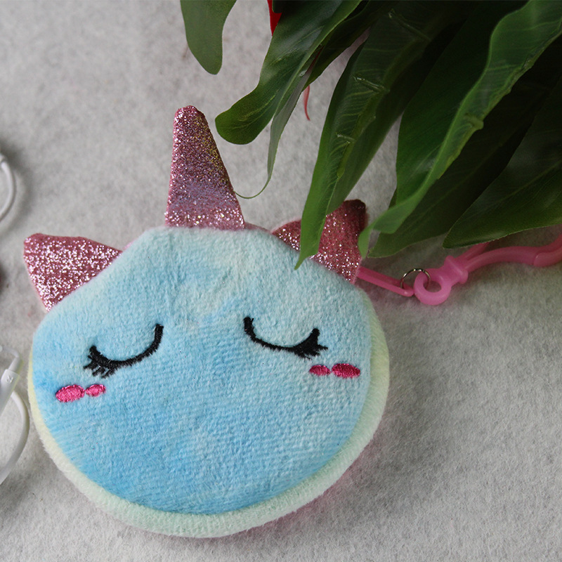 独角兽毛绒斜挎包可爱卡通冰淇淋色扎染圆形拉链耳机包女童零钱包