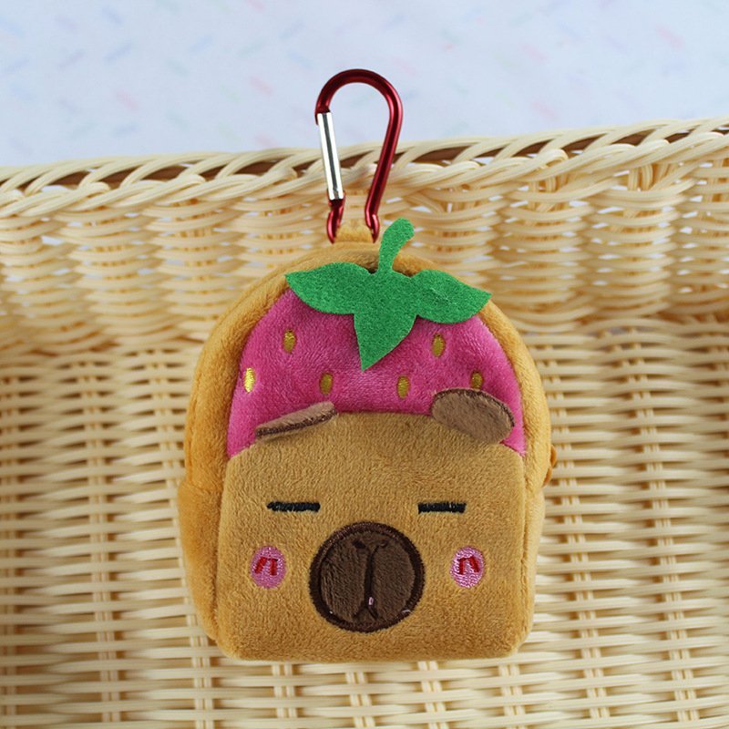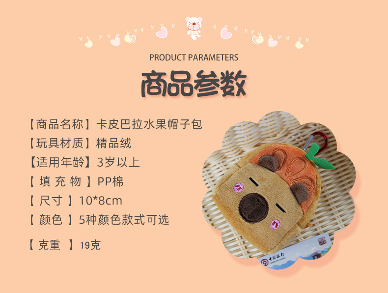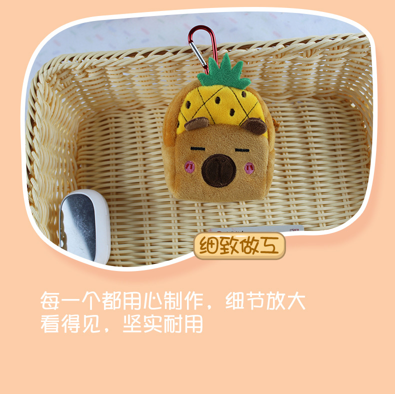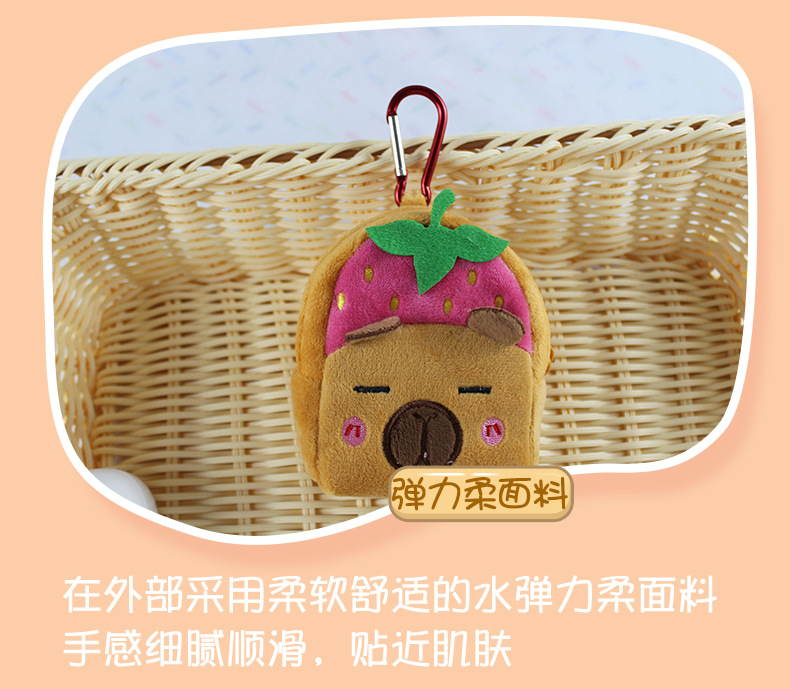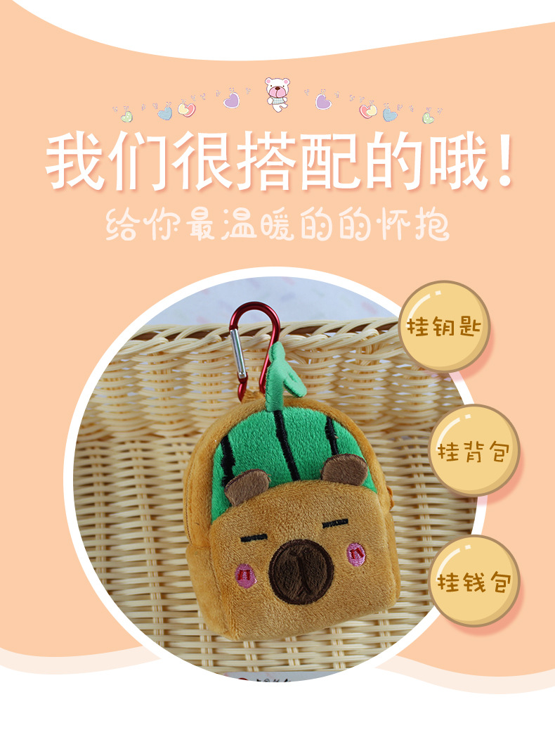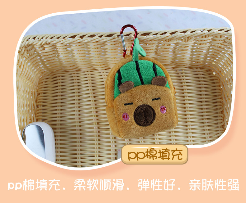 卡皮巴拉水果帽子零钱包卡通水果版水豚零钱包毛绒小背包书包挂件