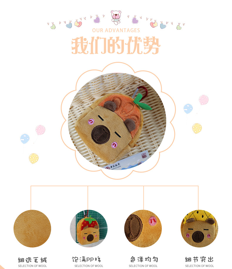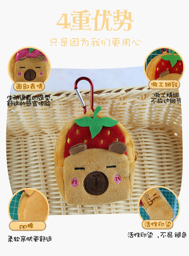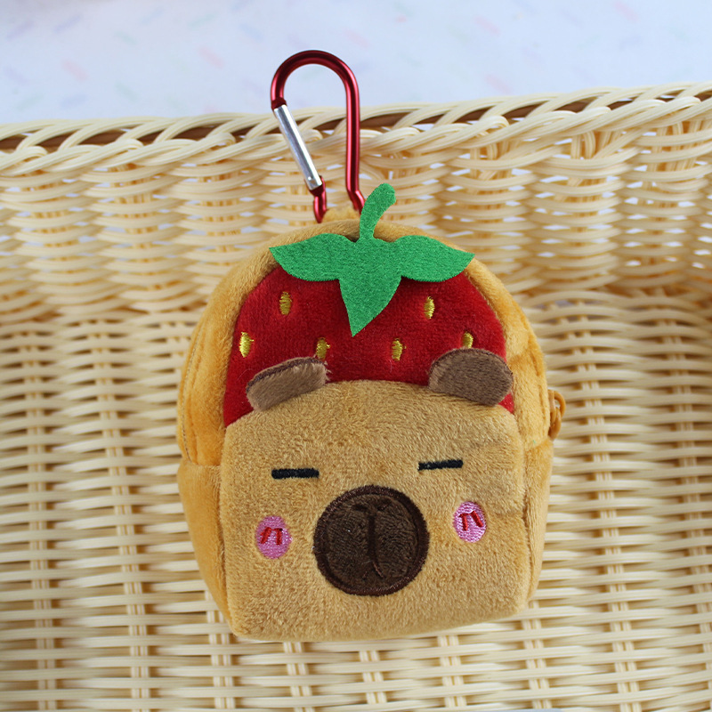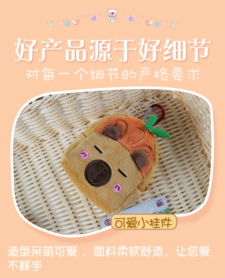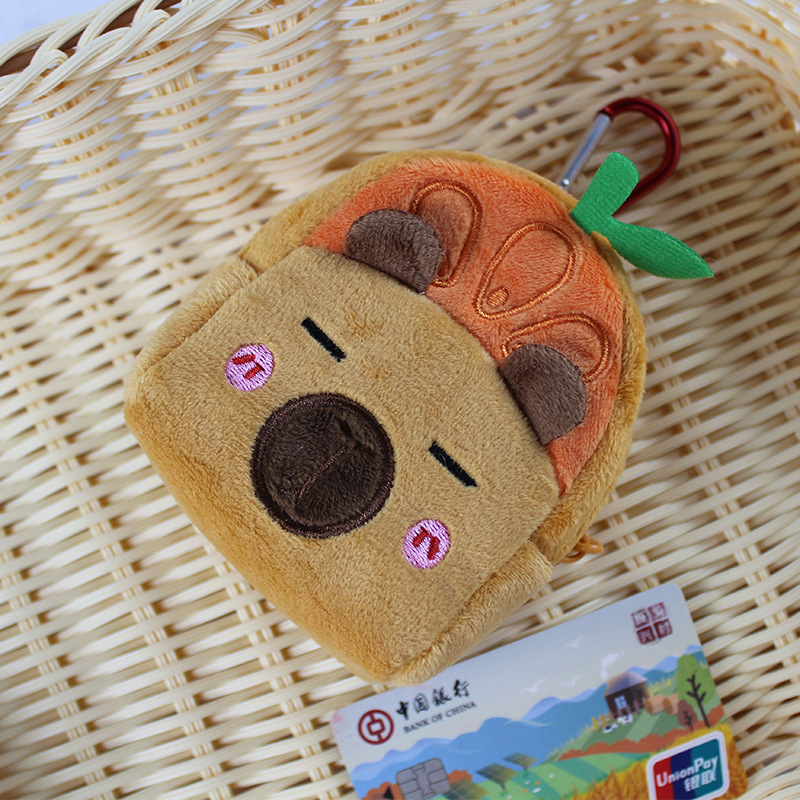卡皮巴拉水果帽子零钱包卡通水果版水豚零钱包毛绒小背包书包挂件