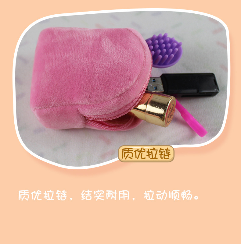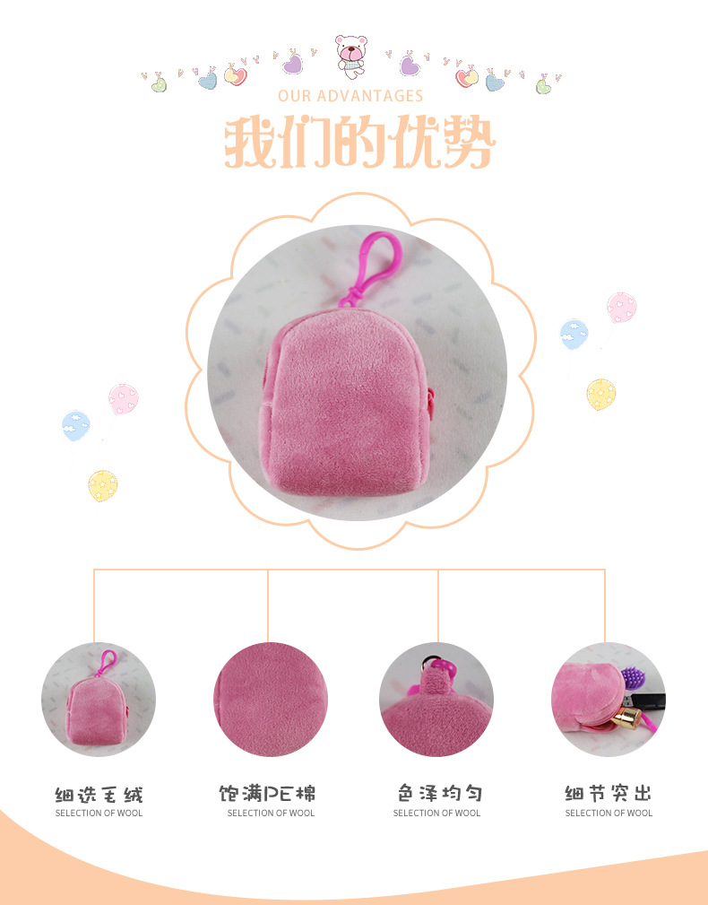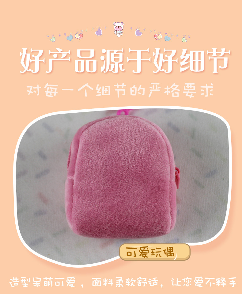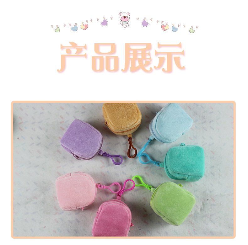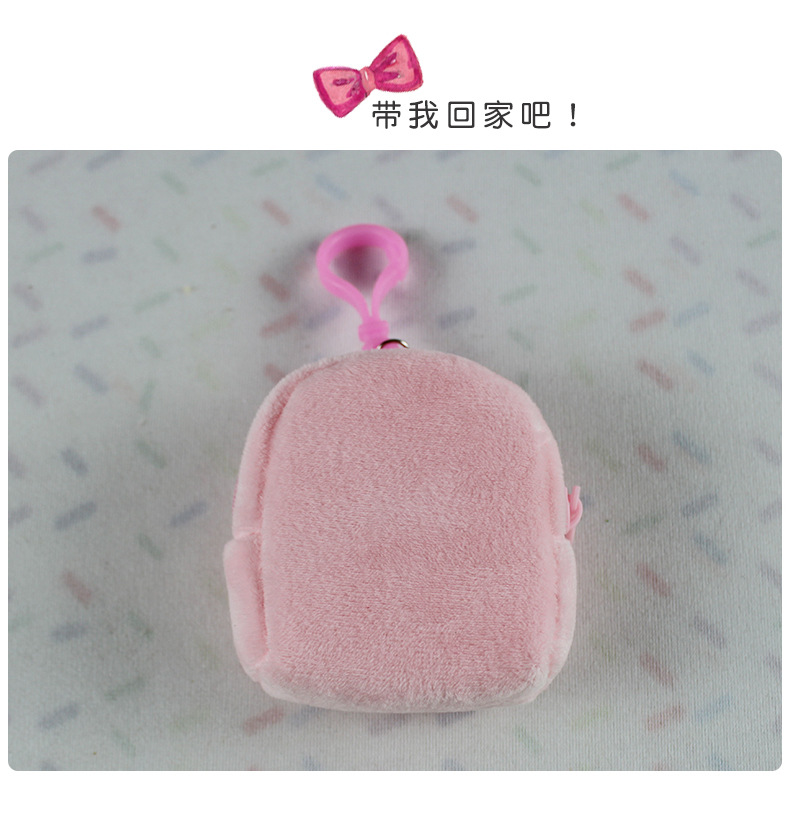 8厘米零钱收纳包 糖果色毛绒小书包纯色背包简约可爱硬币包耳机包