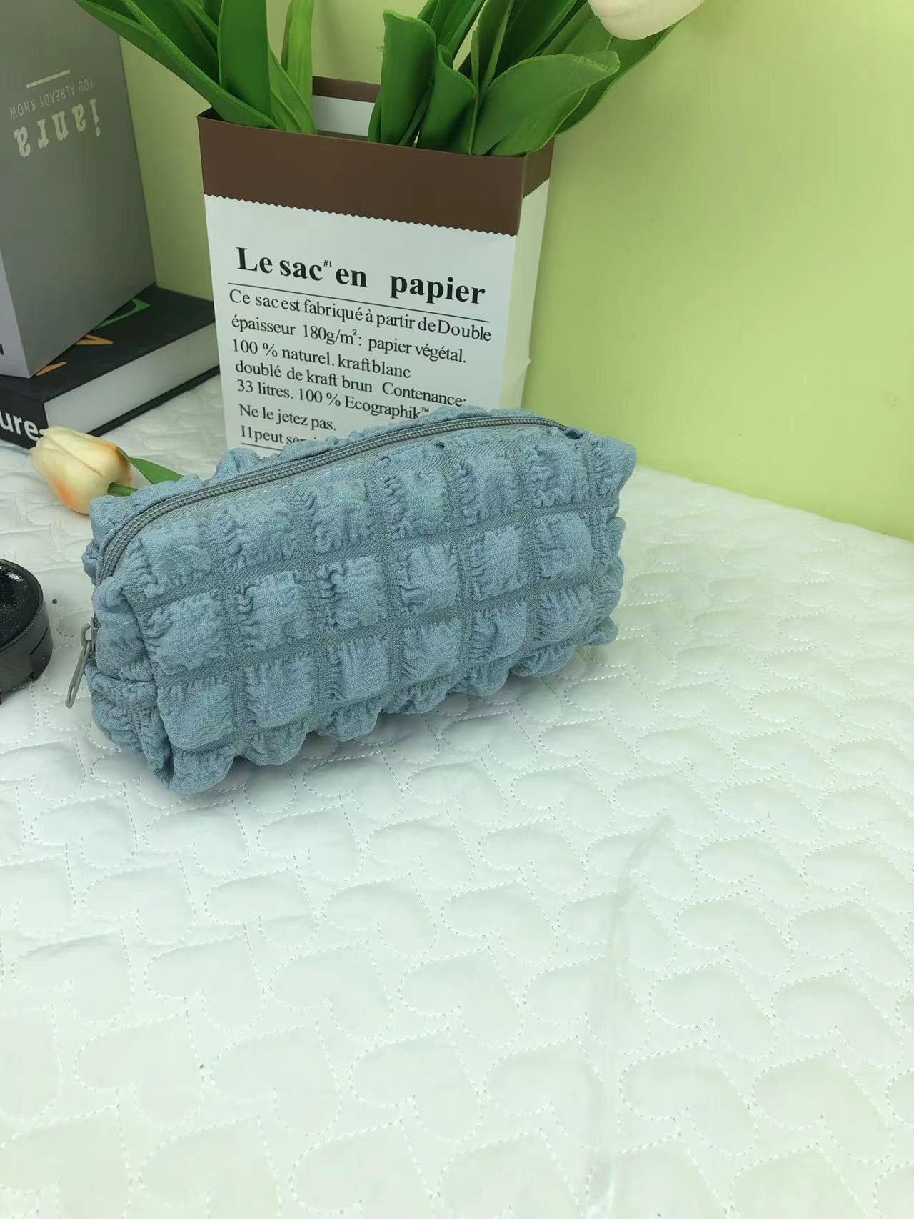 ins奶油泡芙学生笔袋泡泡格小众不撞款大容量软fufu化妆包收纳
