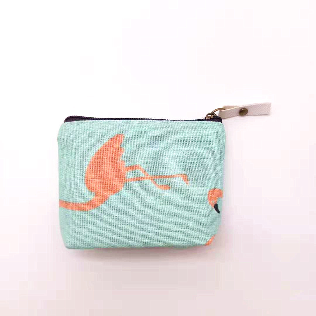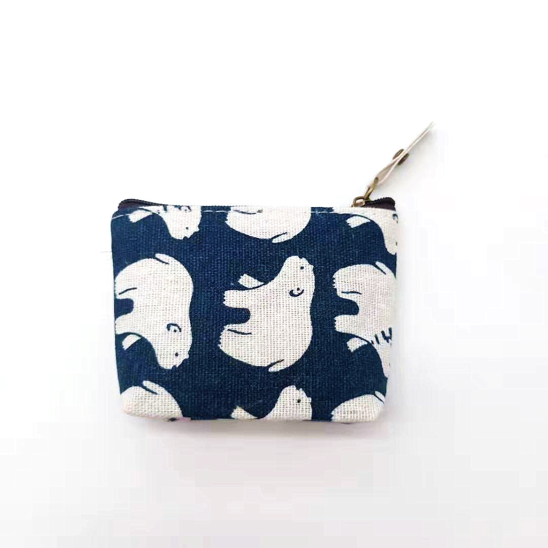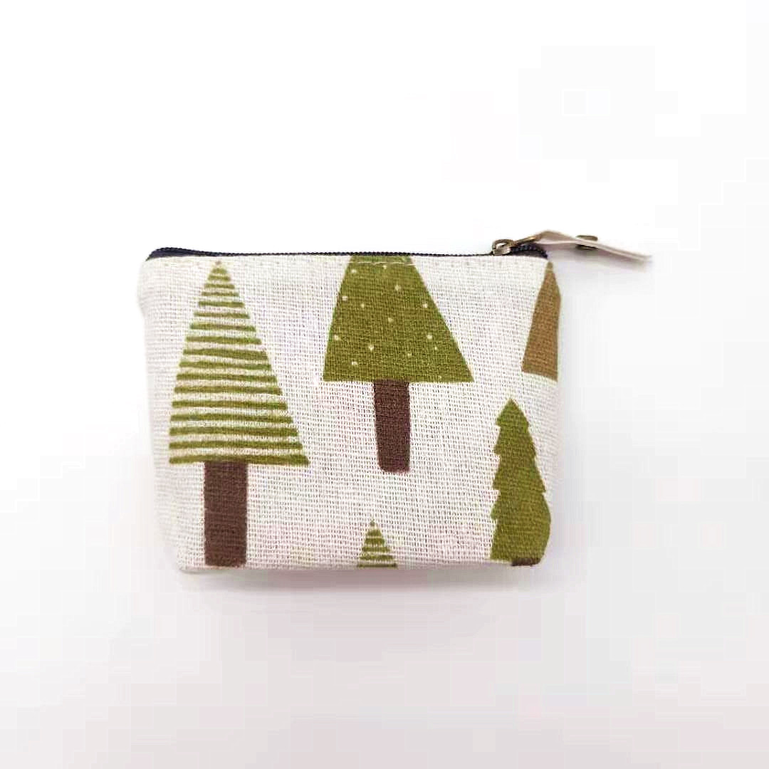 厂家直供清新卡通钥匙包棉麻零钱包简约印花帆布硬币包复古收纳包