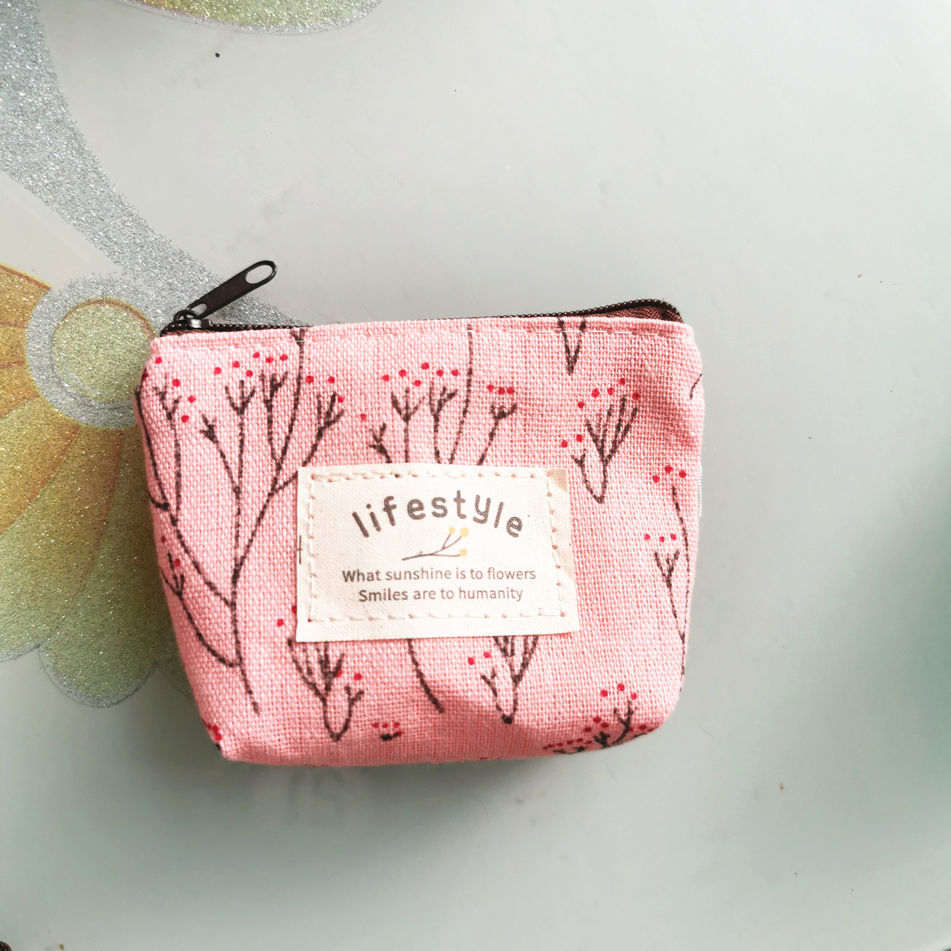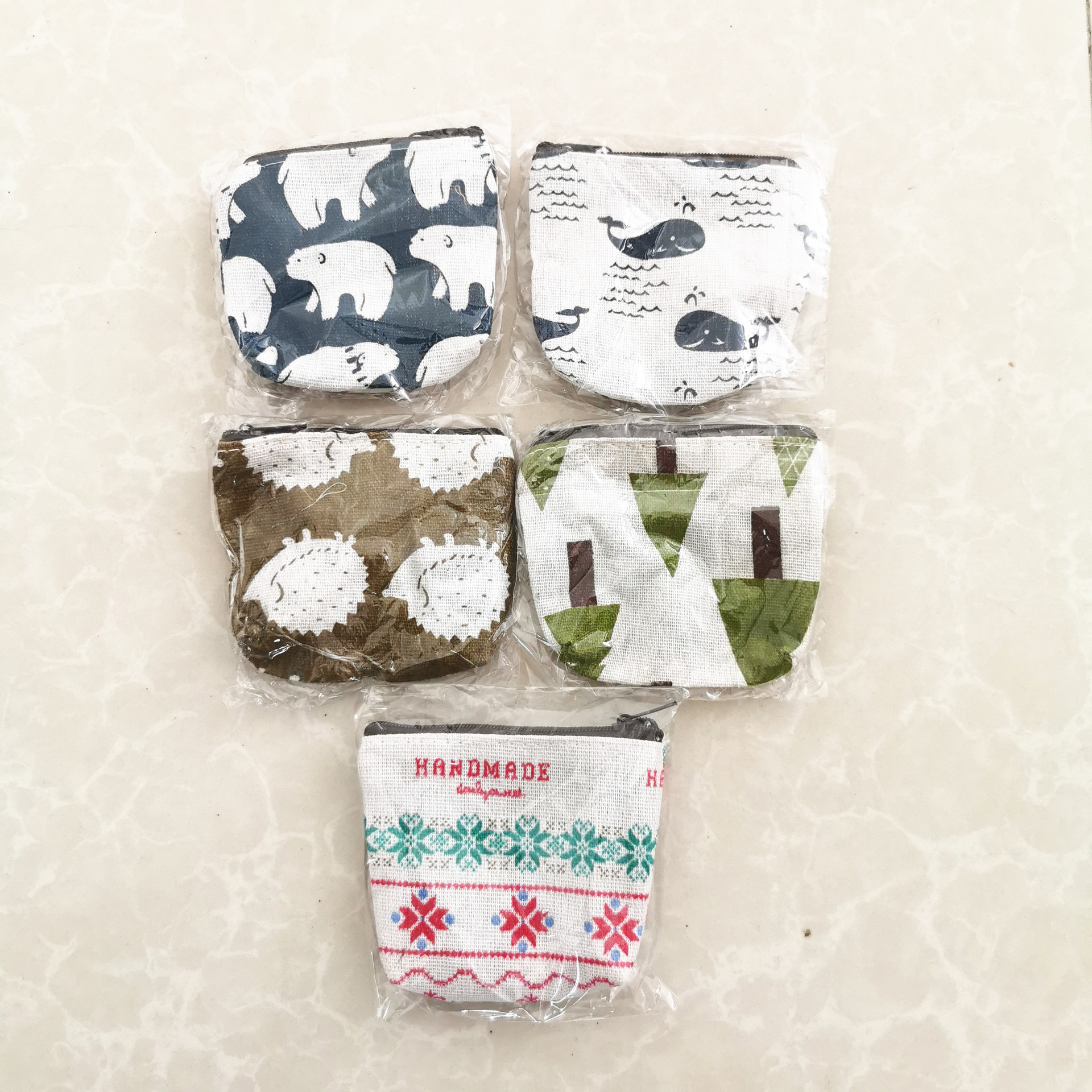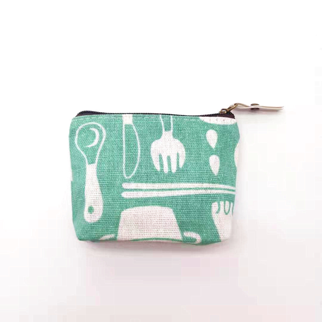 厂家直供清新卡通钥匙包棉麻零钱包简约印花帆布硬币包复古收纳包