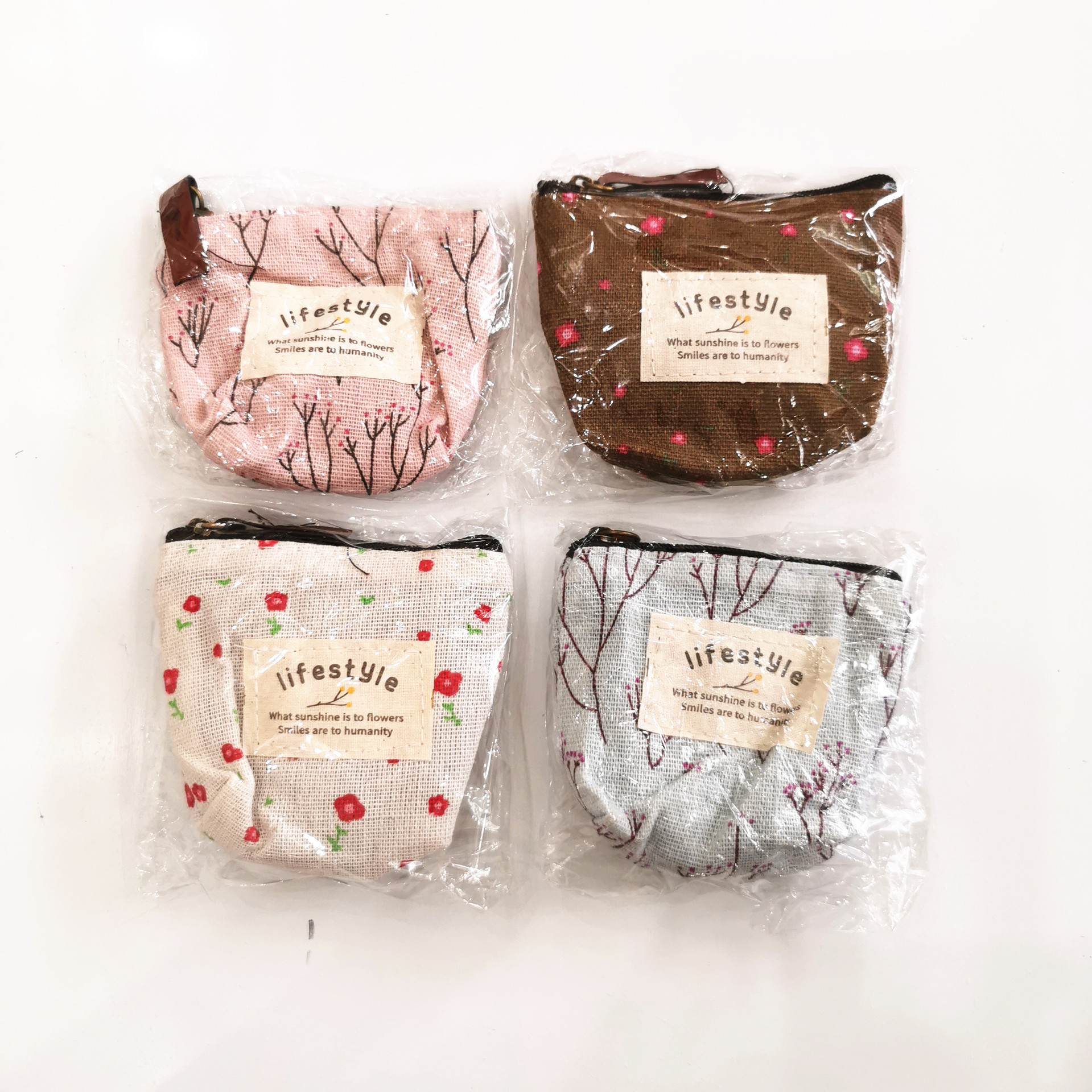 新款小清新碎花棉麻零钱包田园风格花朵布艺迷你卡通装硬币帆布包
