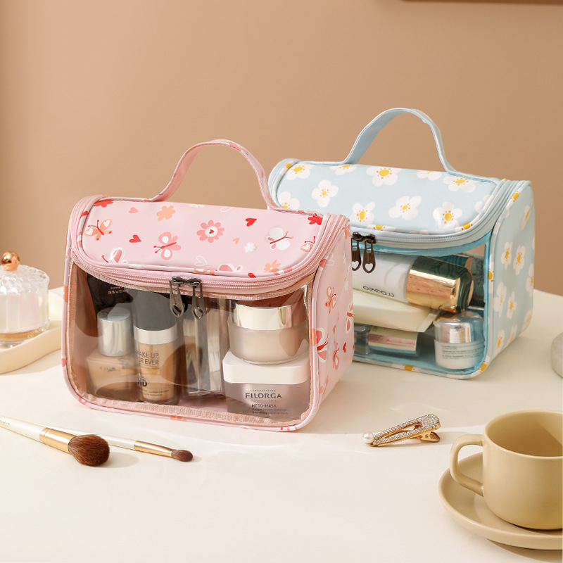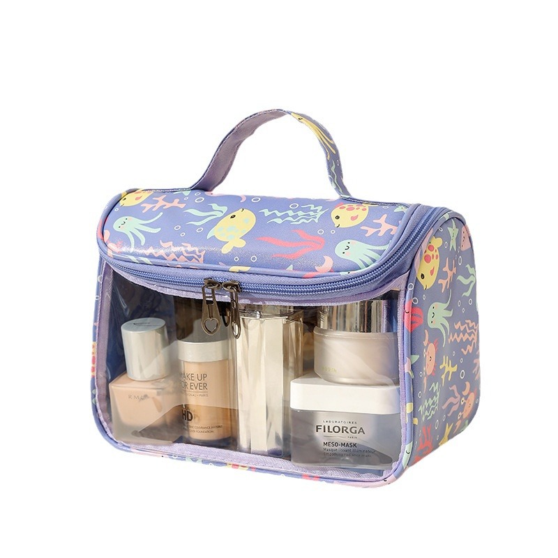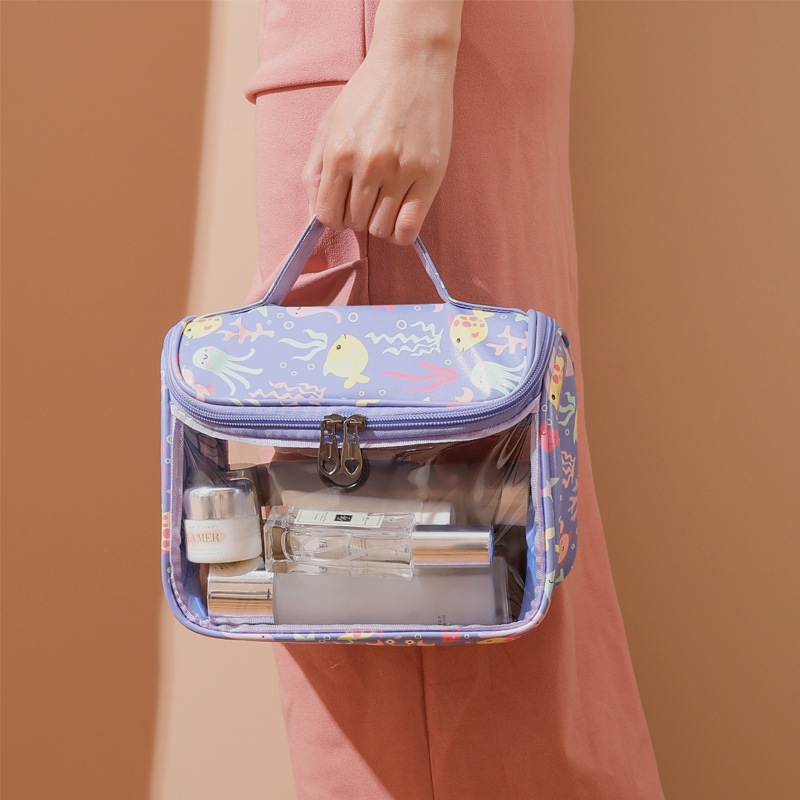 透明化妆包印花手提袋旅行收纳袋PVC防水洗漱包可悬挂手提洗浴袋