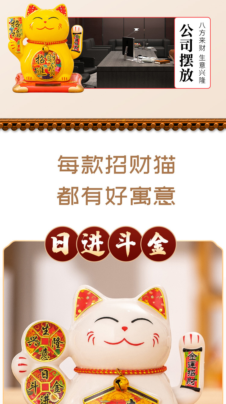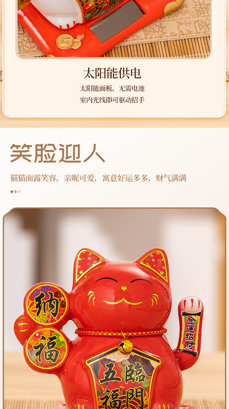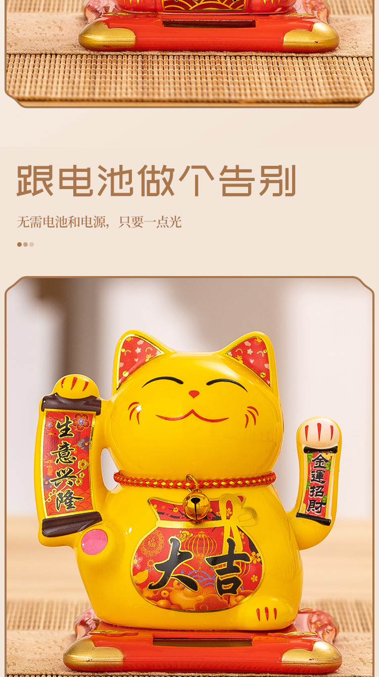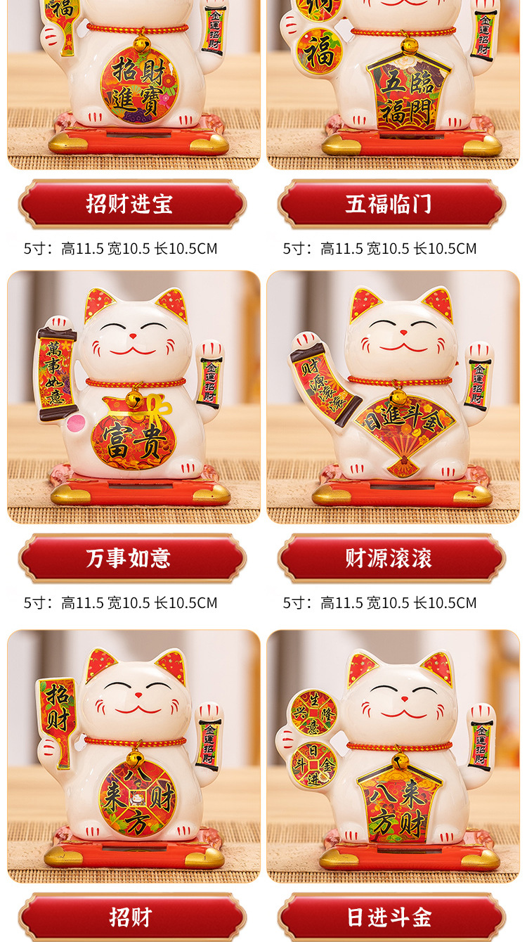 陶瓷太阳能车载招财猫门店礼品可摇手年会礼品随手礼汽车小摆件