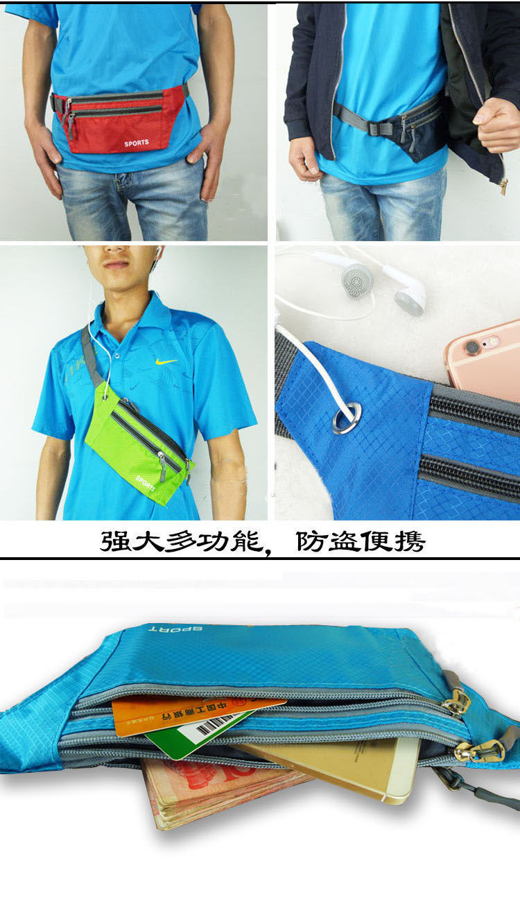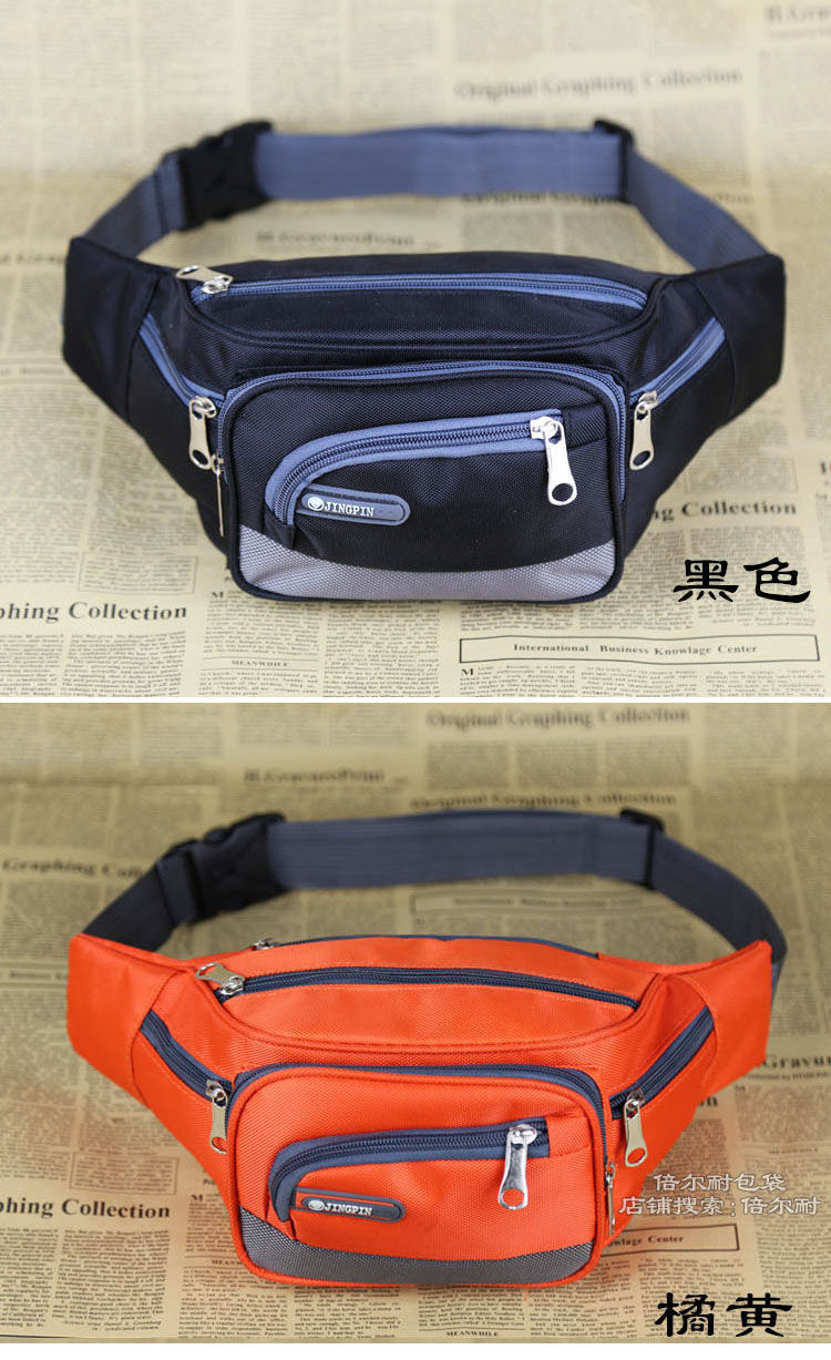 运动腰包女时尚防水布大容量多隔层生意腰包男收银钱包健身包胸包