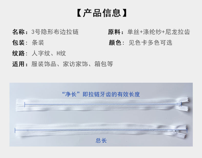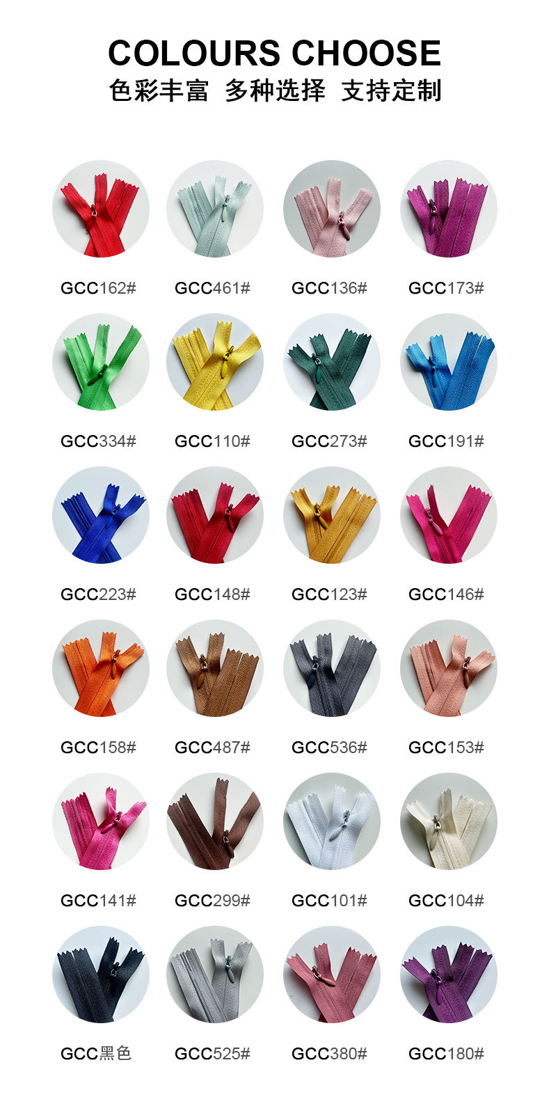 厂家批发3号尼龙隐形布边拉链女裙家纺靠垫抱枕黑白彩色现货零售