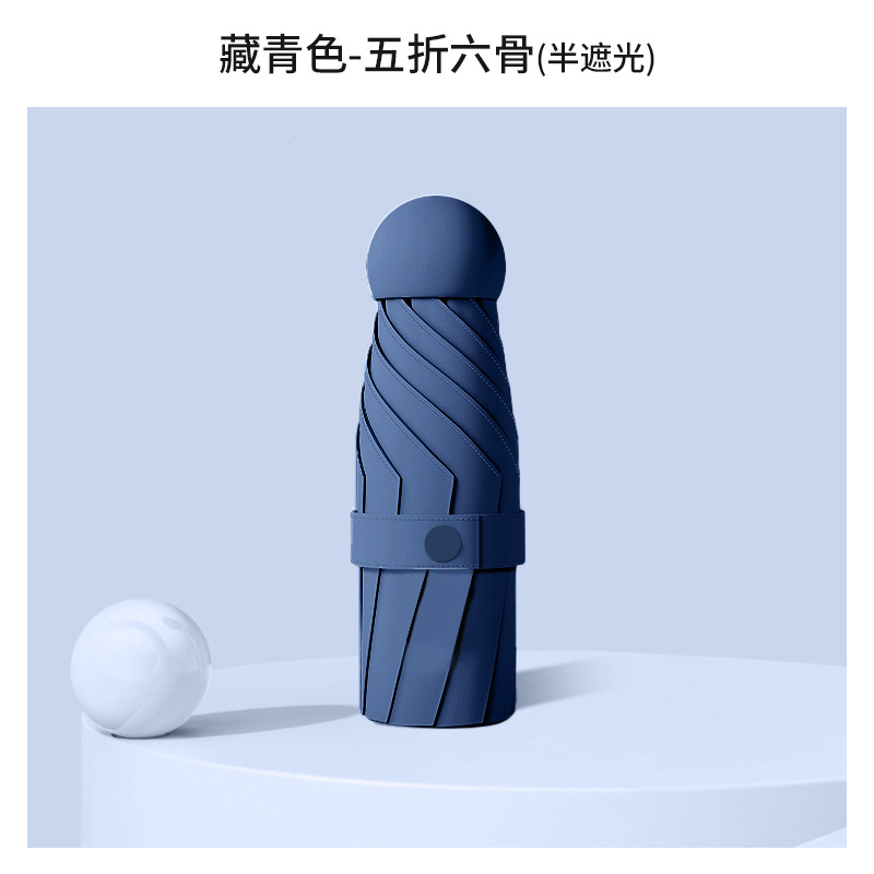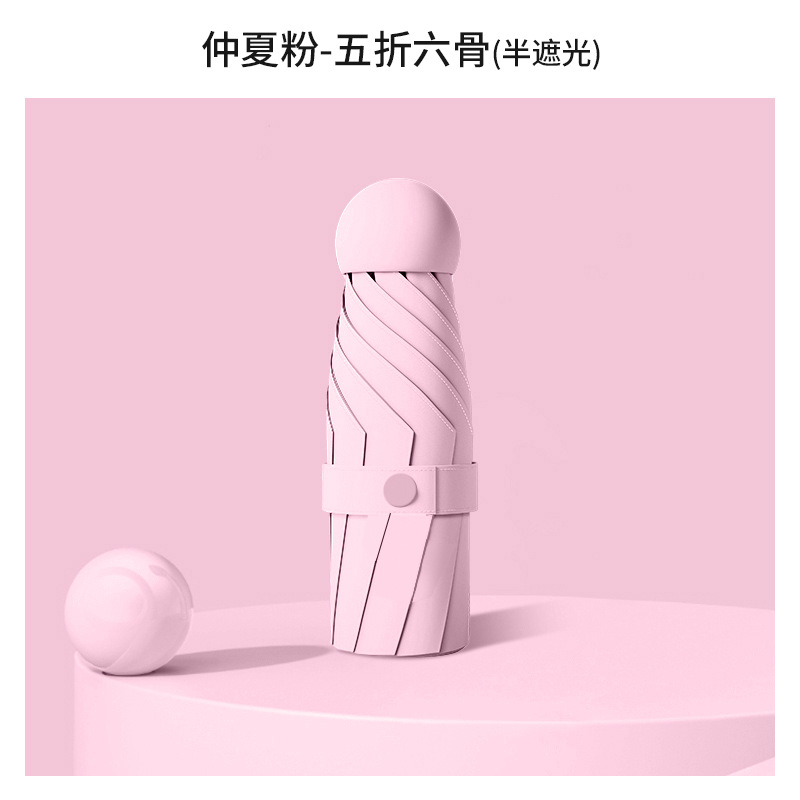 新款五折伞六骨超轻镜盒胶囊伞遮阳伞黑胶防晒防紫外线可订广告伞