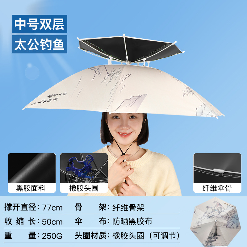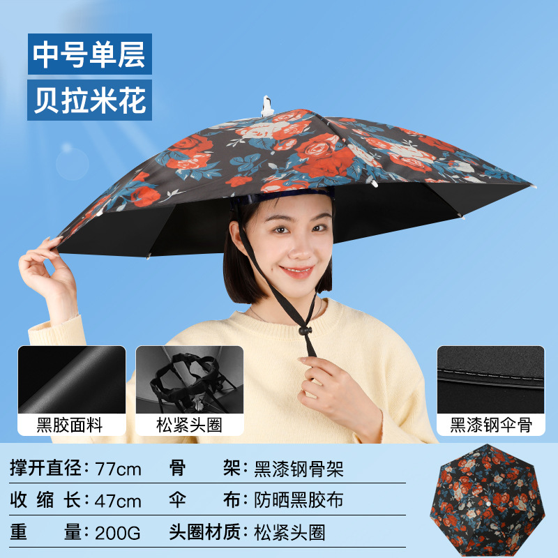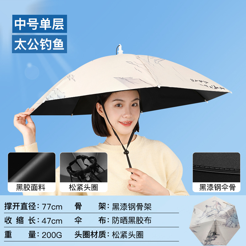 采茶防晒伞头戴式防紫外线防雨鱼遮阳戴在头顶上太阳斗笠帽伞伞帽