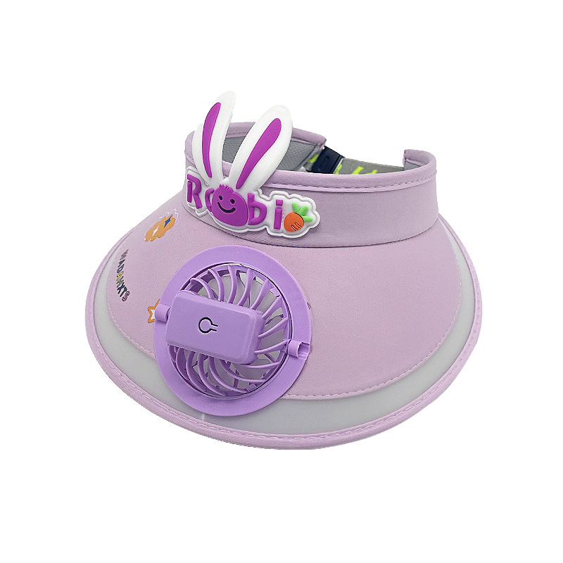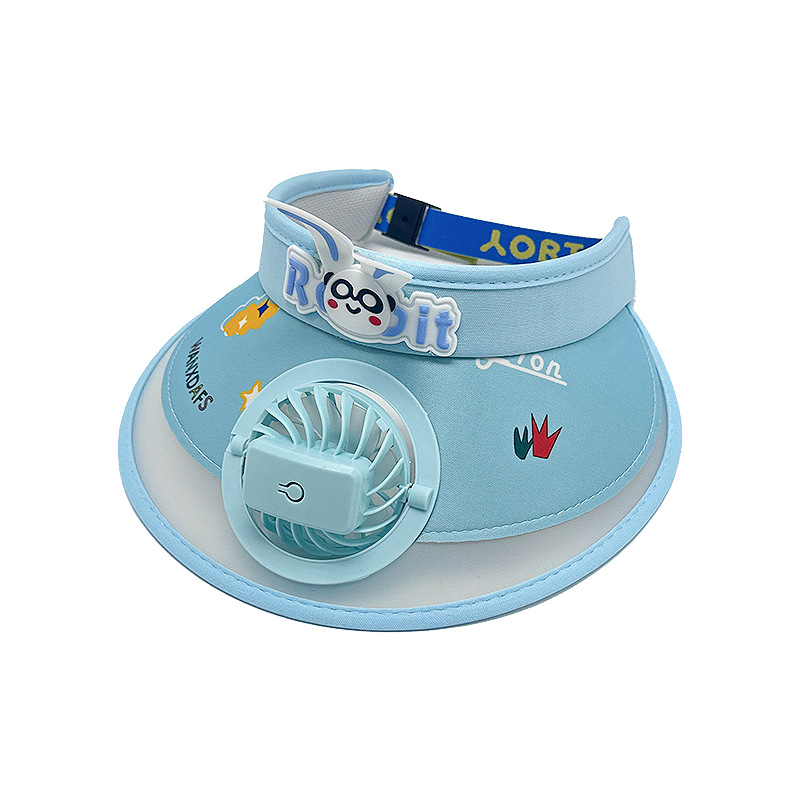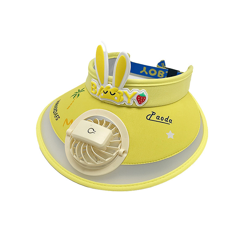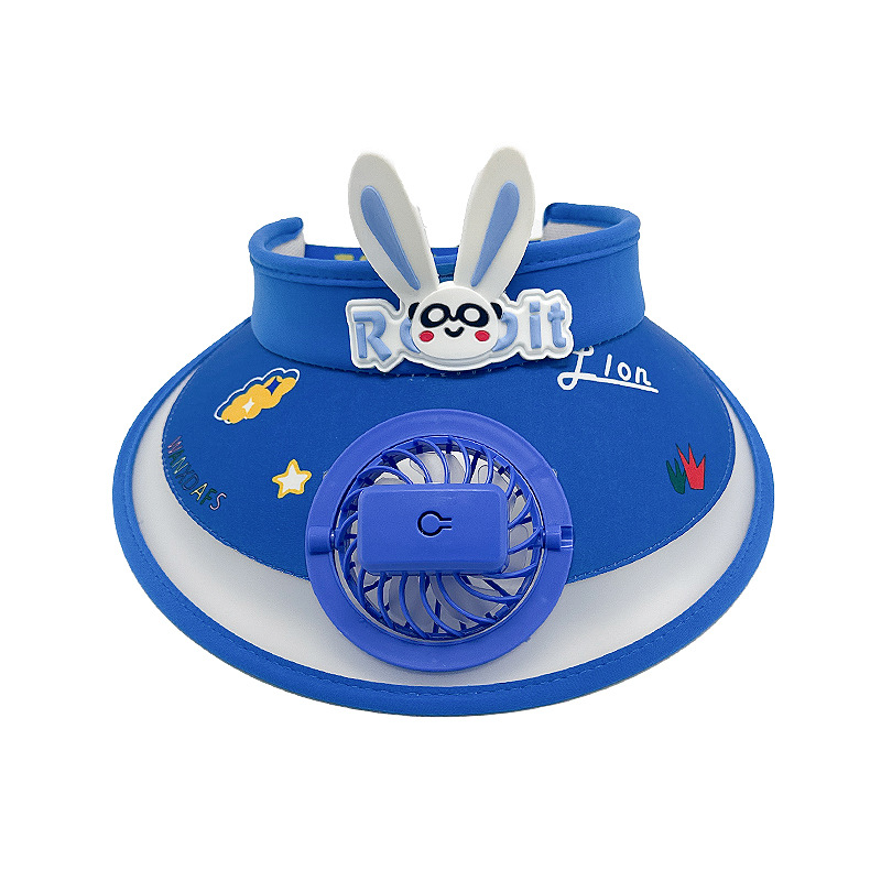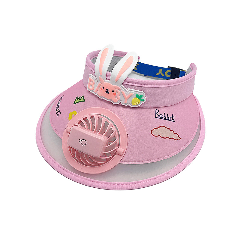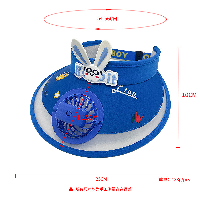夏季USB充电儿童风扇防晒帽 户外卡通男女童空顶帽大檐宝宝遮阳帽