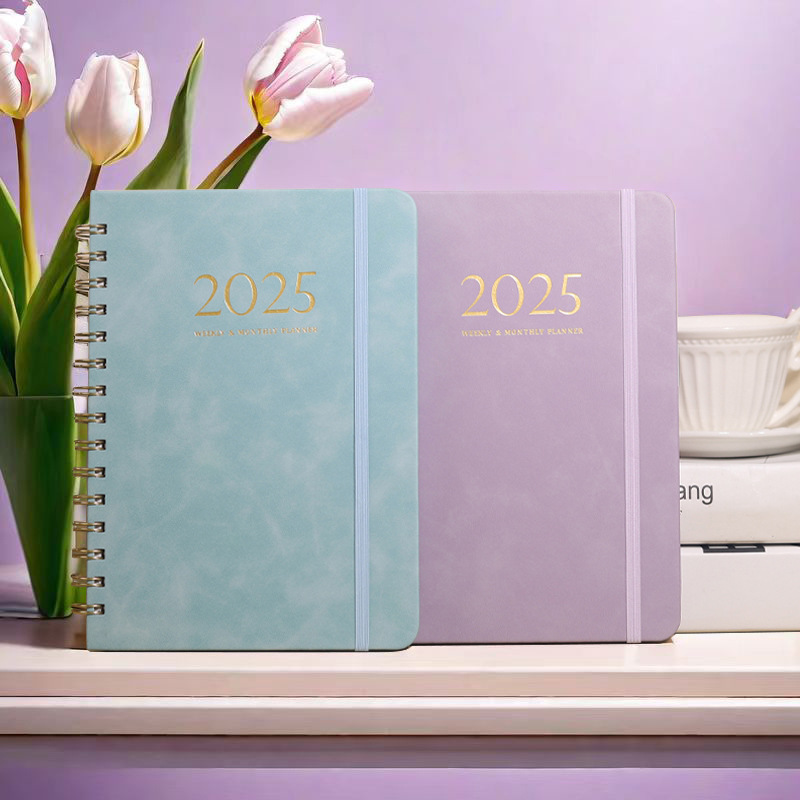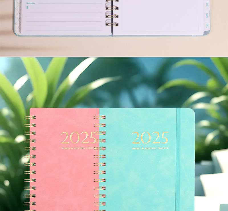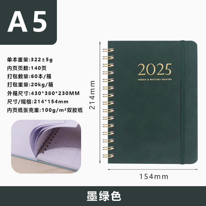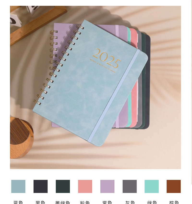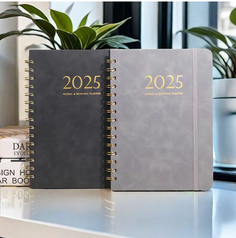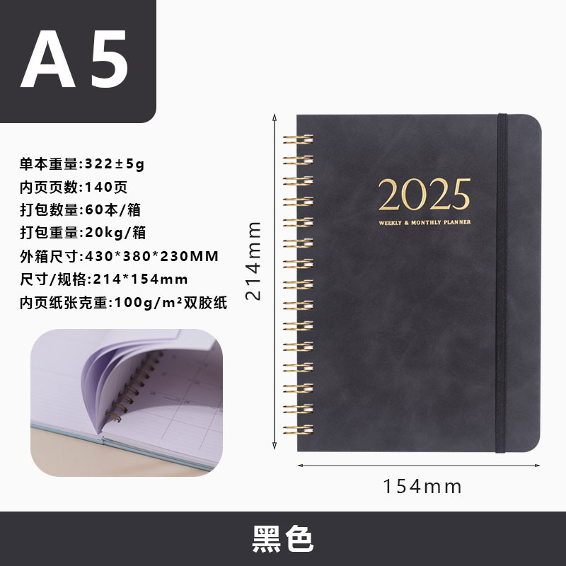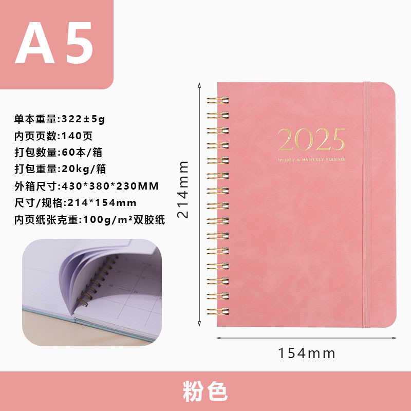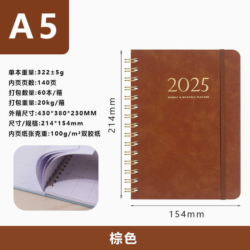 跨境线圈本皮质日程本2025计划本A5绑带笔记本本子planner定制