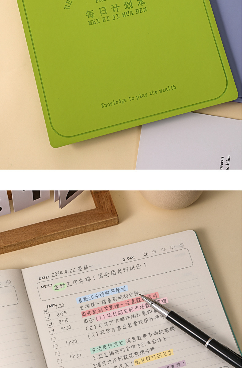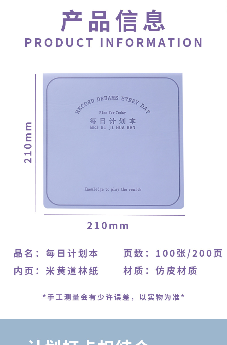 每日计划本方形笔记本本子高颜值皮面时间管理自律打卡简约定制本