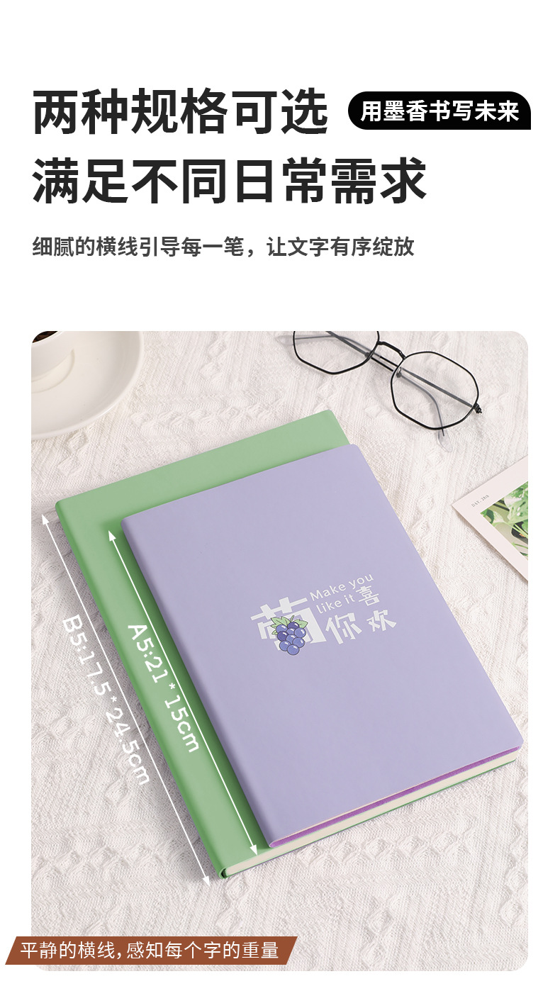 2024新款a5软皮可爱日记本小清新记事本学生横线B5加厚笔记本定制