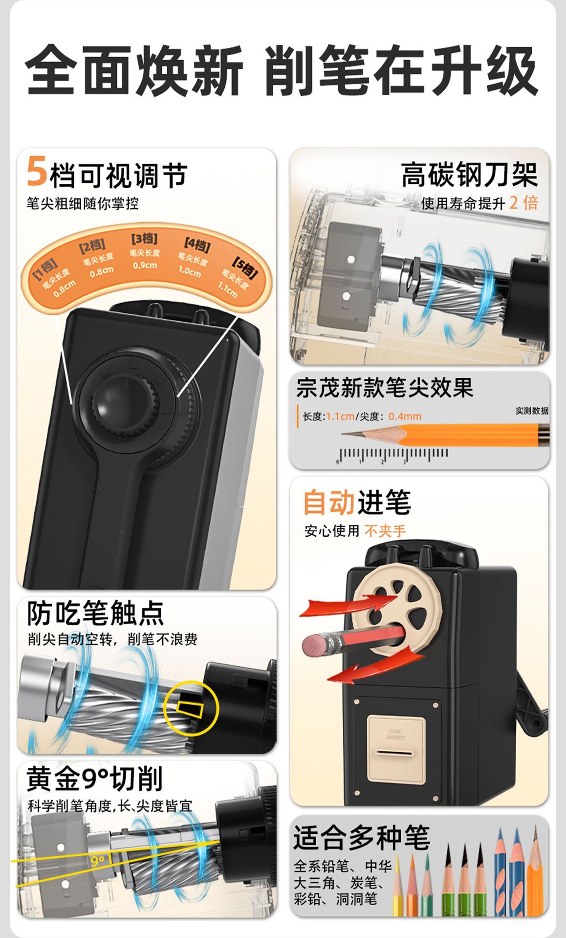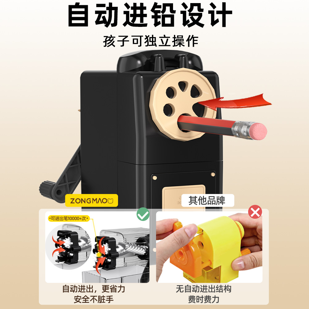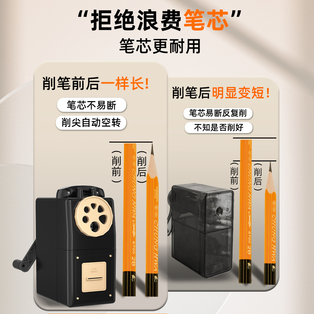 大口径多孔手摇削笔器三角洞洞杆粗笔卷笔刀小学生铅笔刀转笔刀