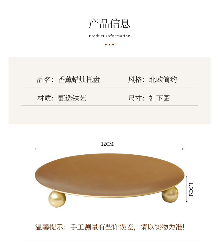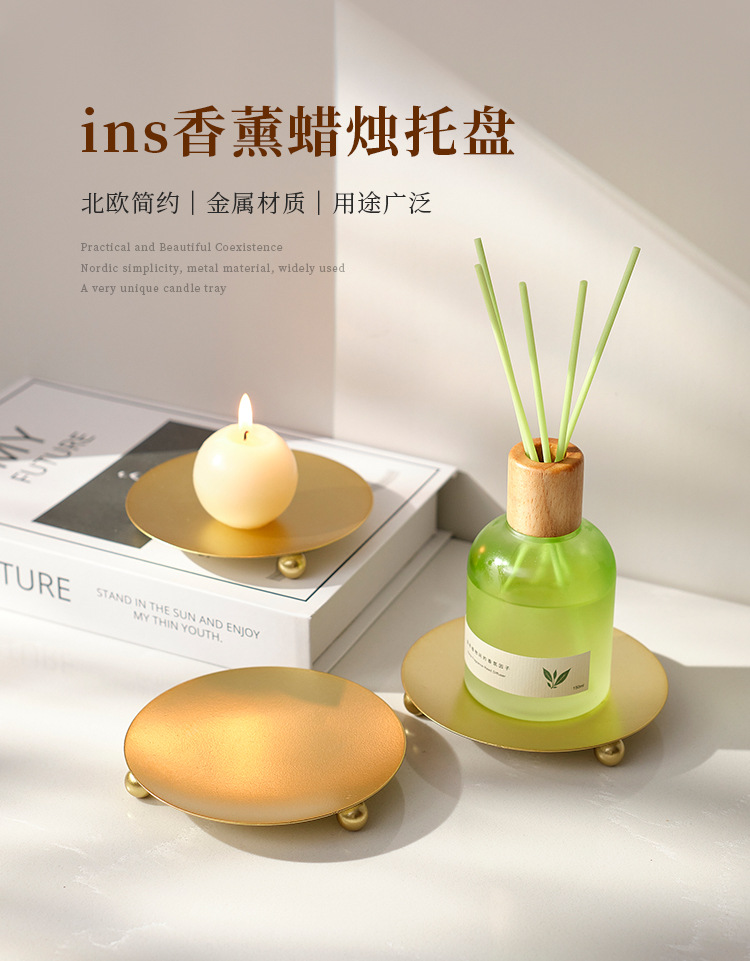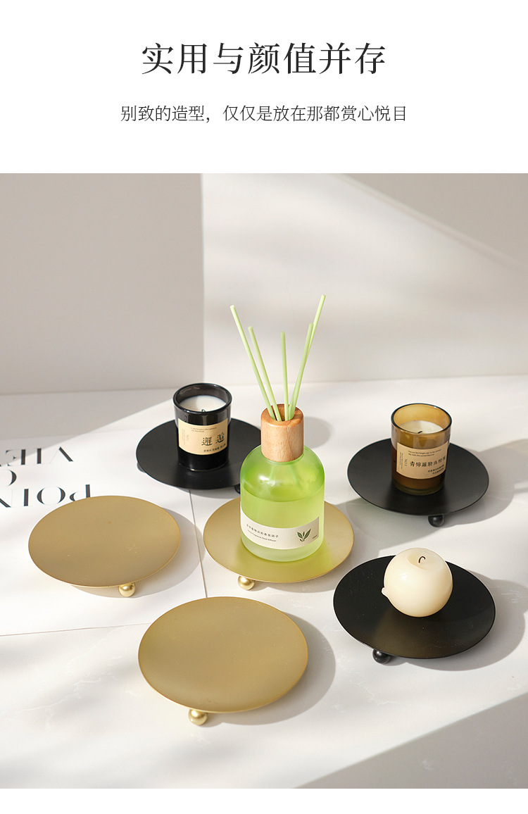 北欧风圆形香薰烛台轻奢家居桌面托盘创意圆形摆件ins房间装饰品