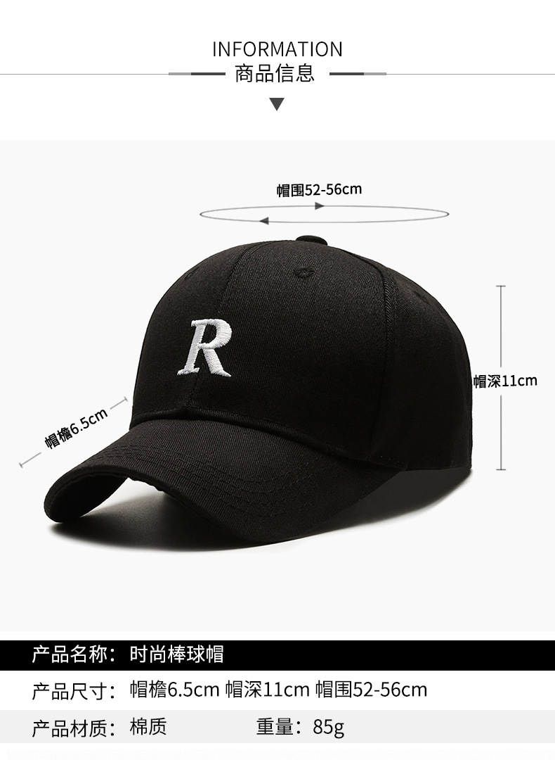 网红款韩版儿童棒球帽R字母刺绣鸭舌帽小学生涤棉运动防晒棒球帽