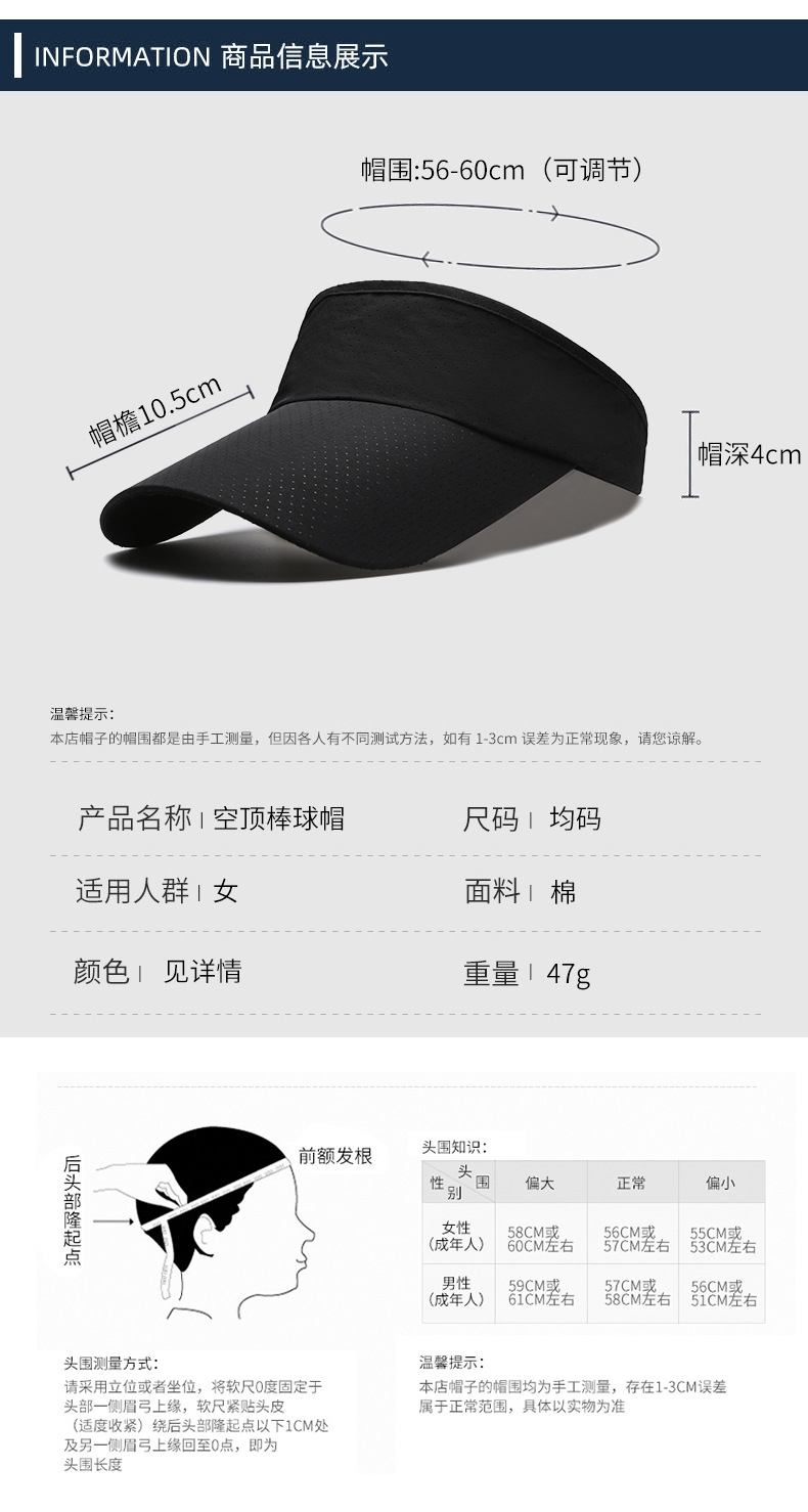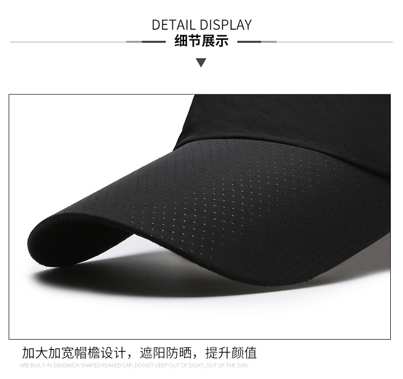 夏季新款空顶帽光板打孔遮阳帽涤纶速干户外鸭舌帽遮阳棒球帽男女