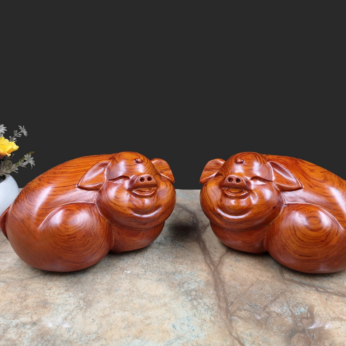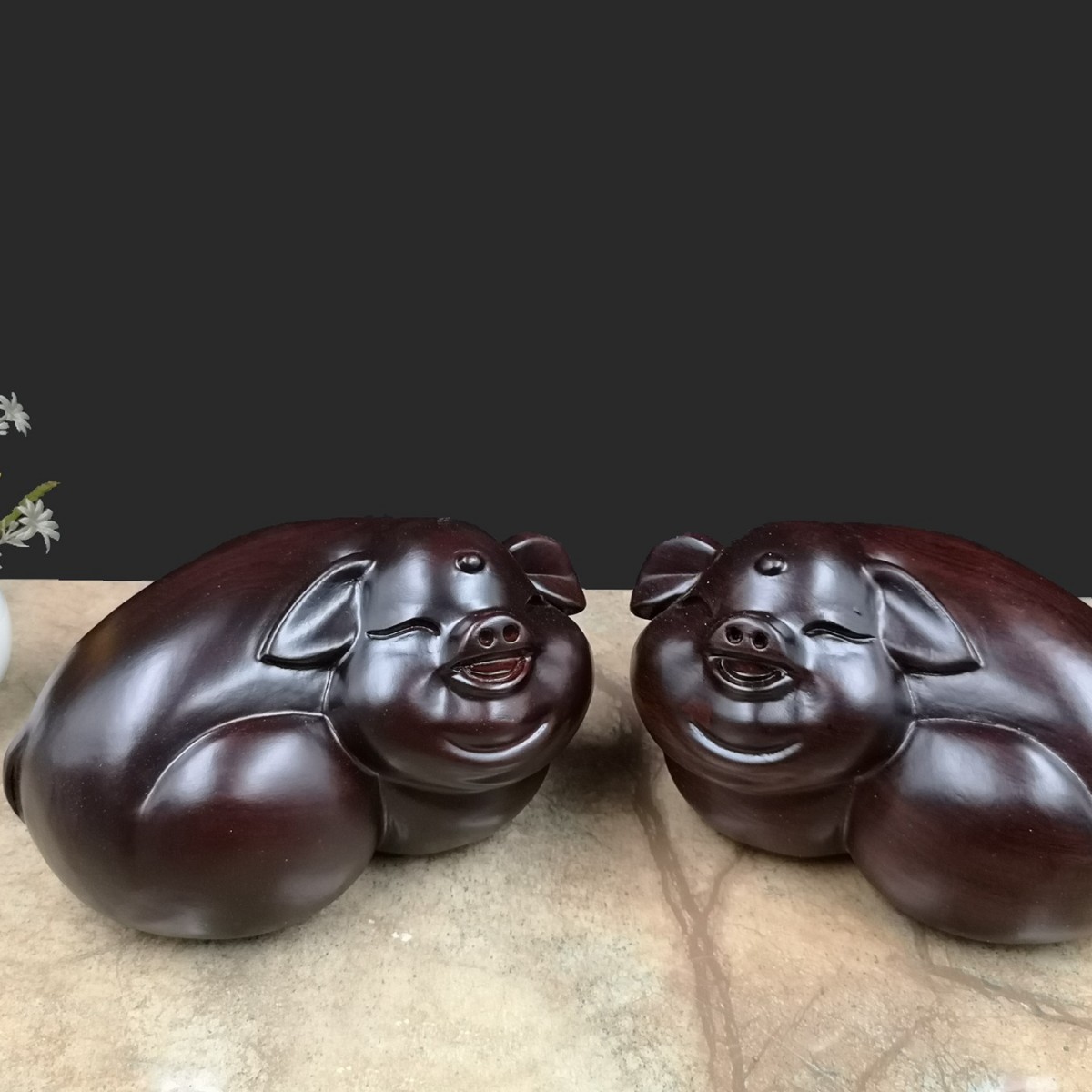 仙游木雕富贵福猪摆件黑檀木12生肖发财猪把玩件木质工艺红木礼品