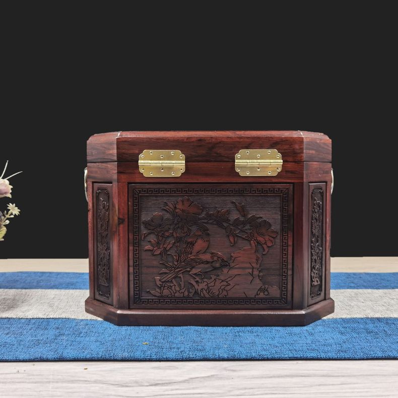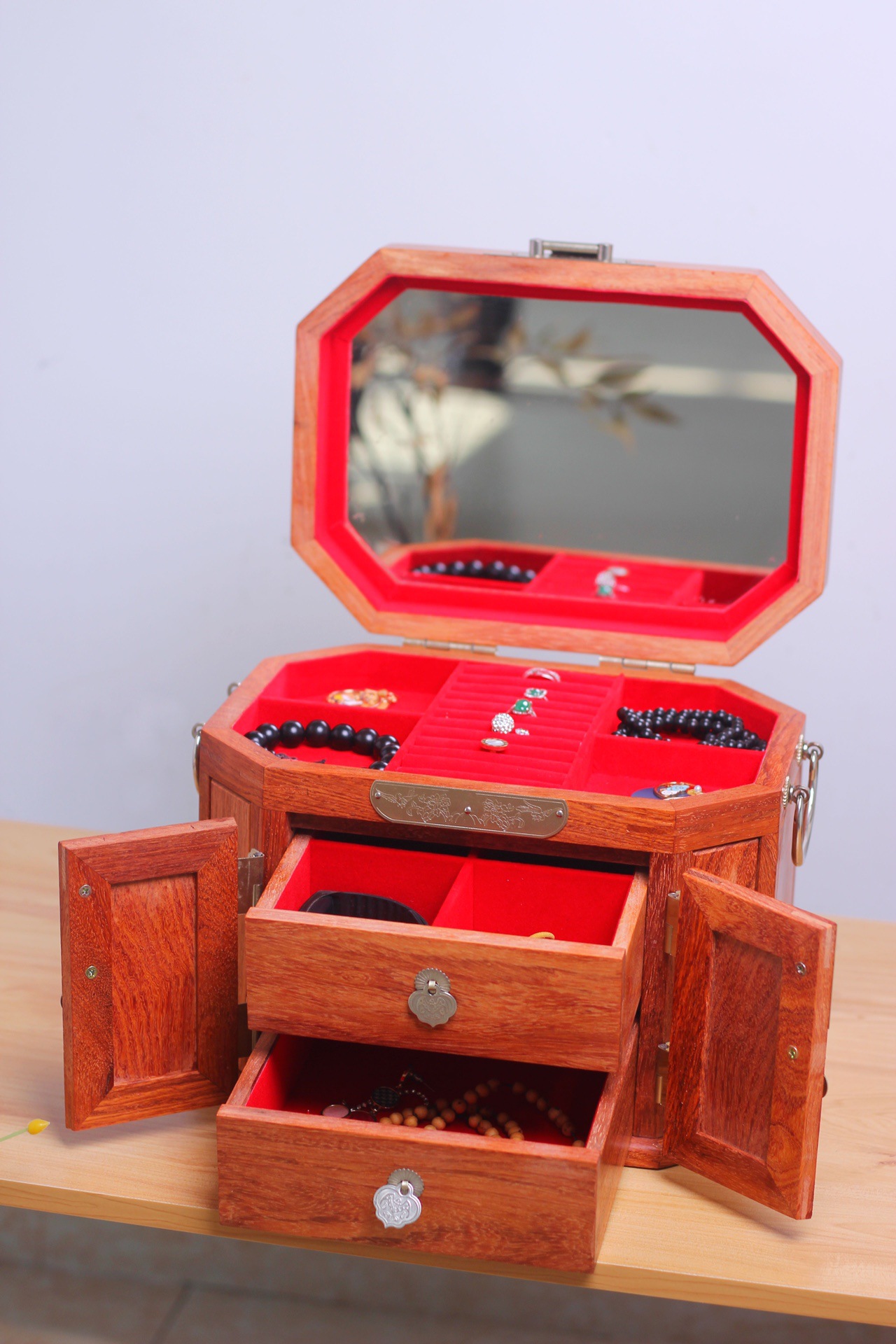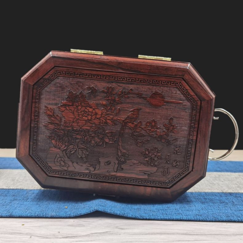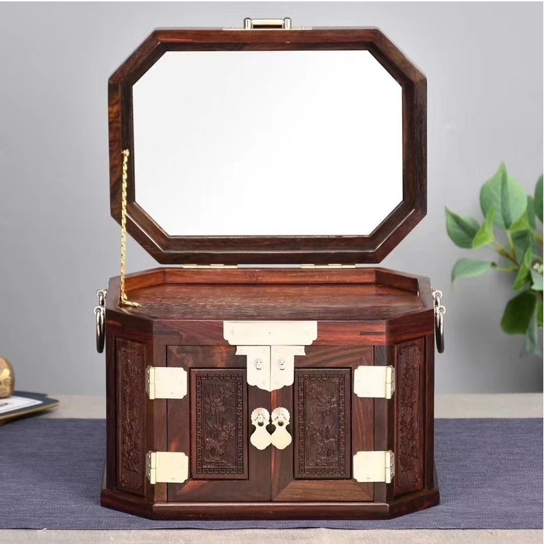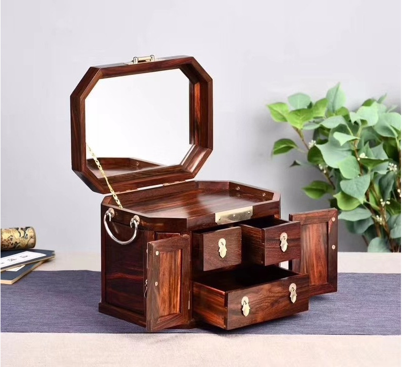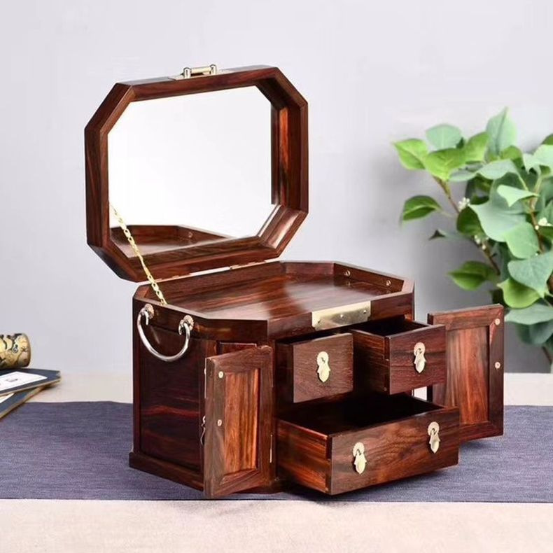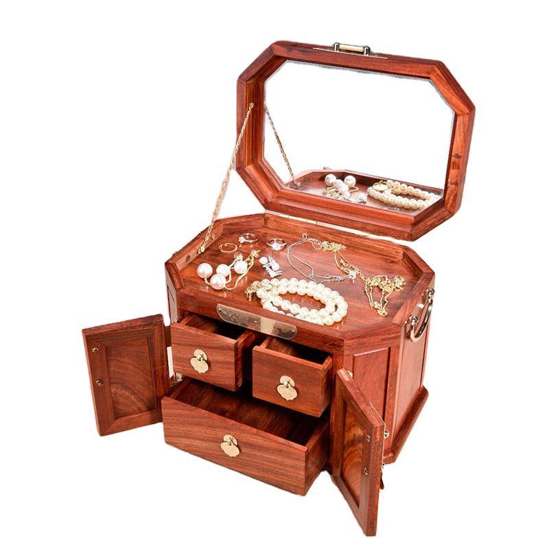 老挝红酸枝花好月圆首饰收纳盒红木珠宝盒新款复古创意便携梳妆盒