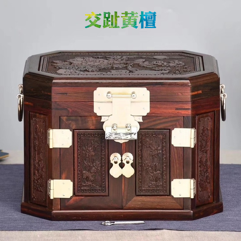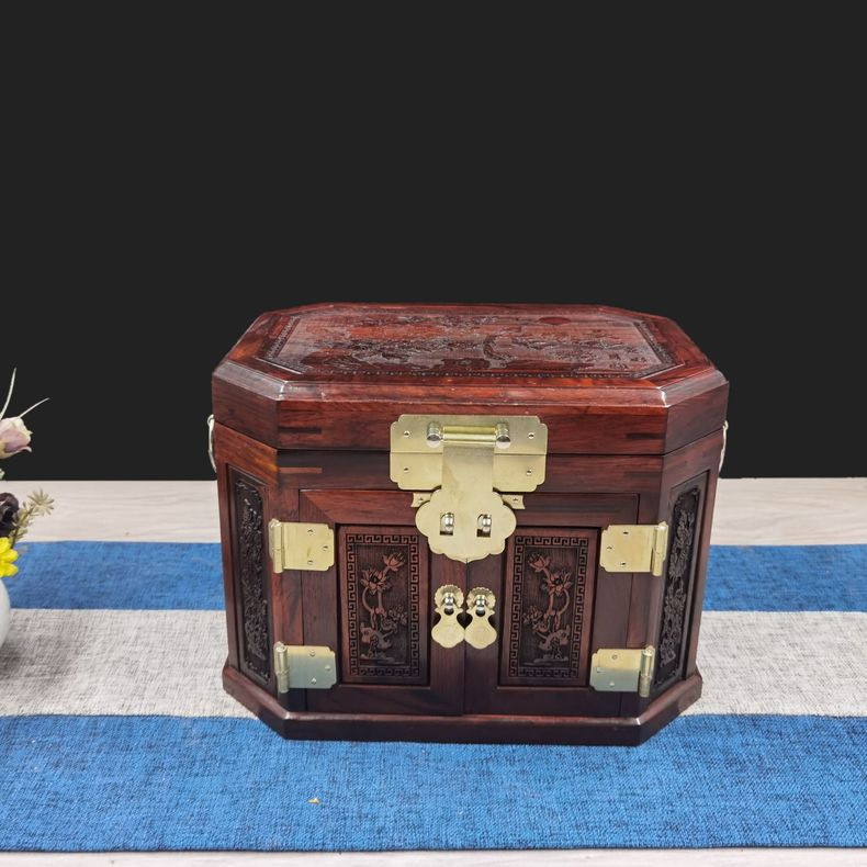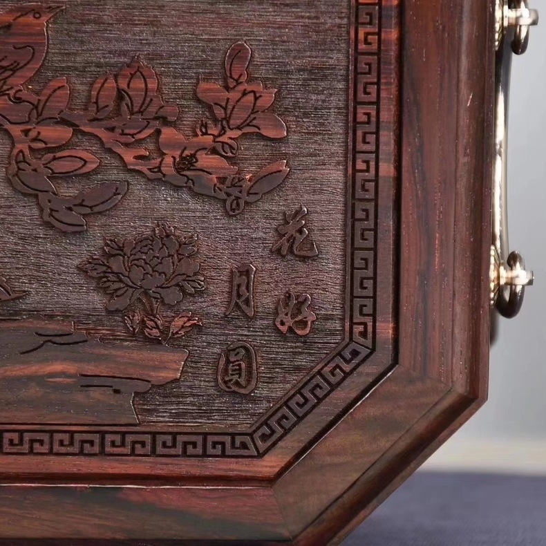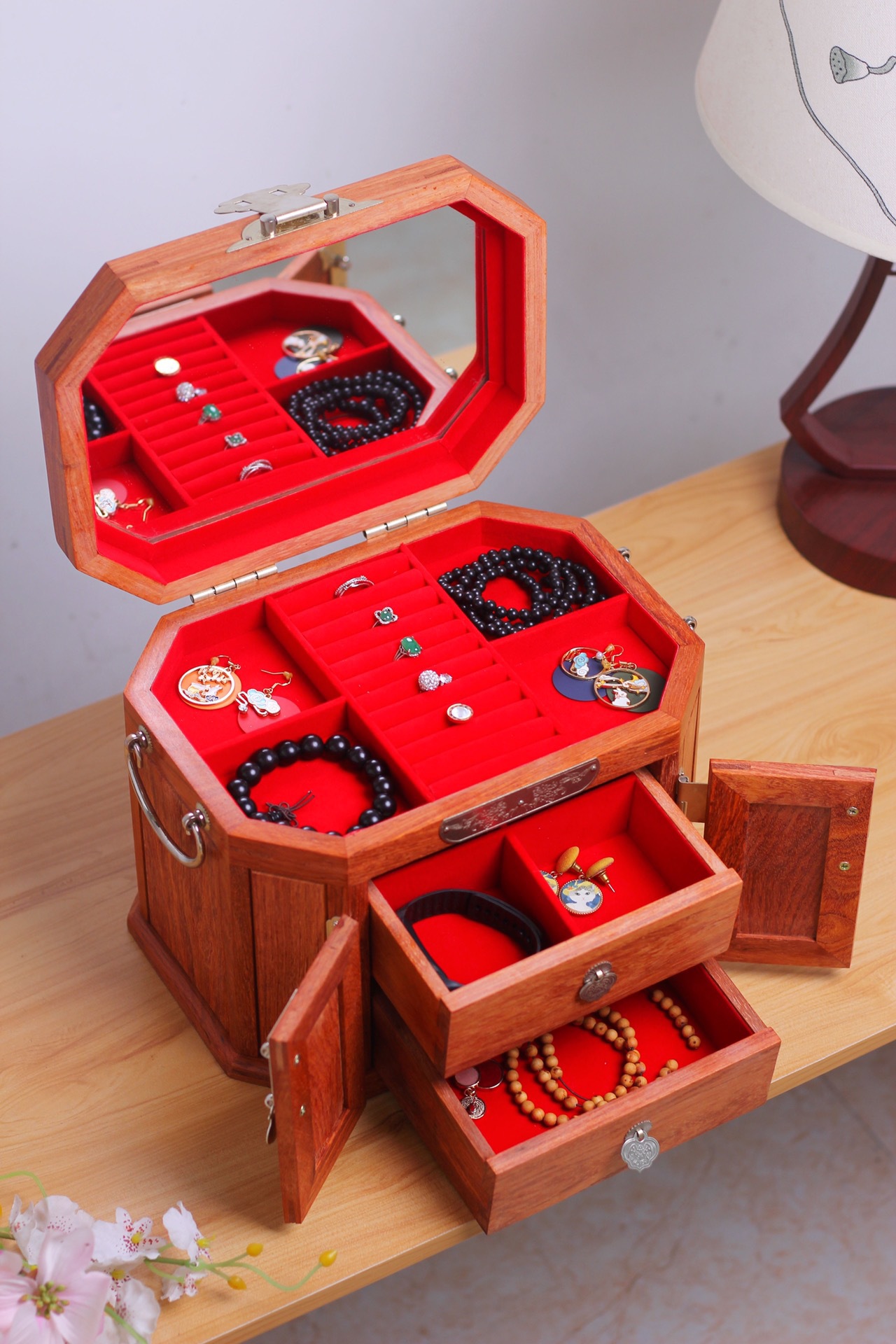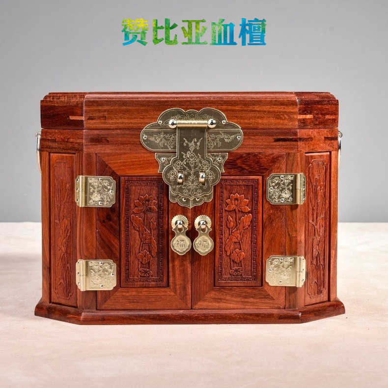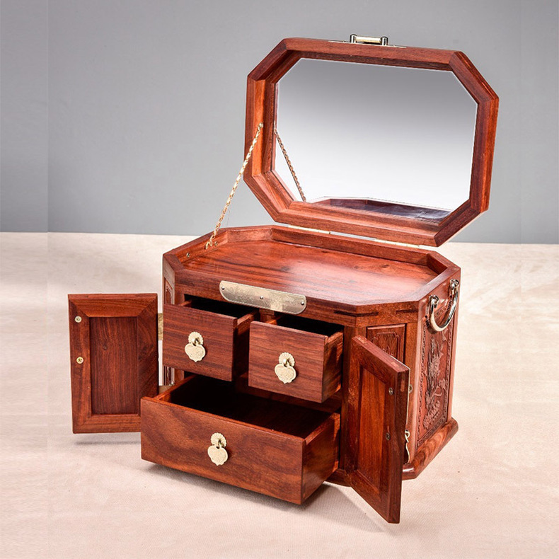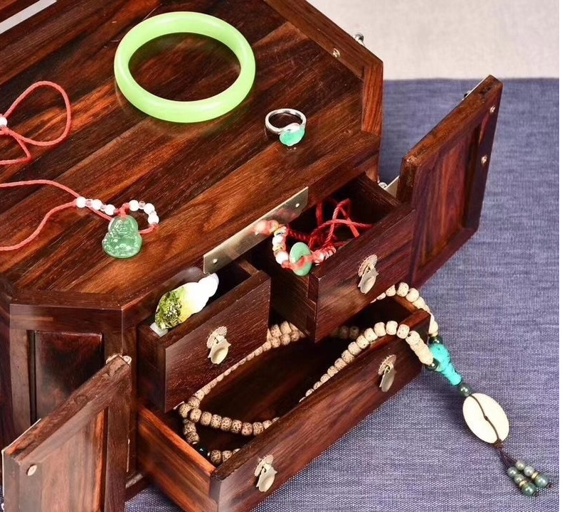 老挝红酸枝花好月圆首饰收纳盒红木珠宝盒新款复古创意便携梳妆盒