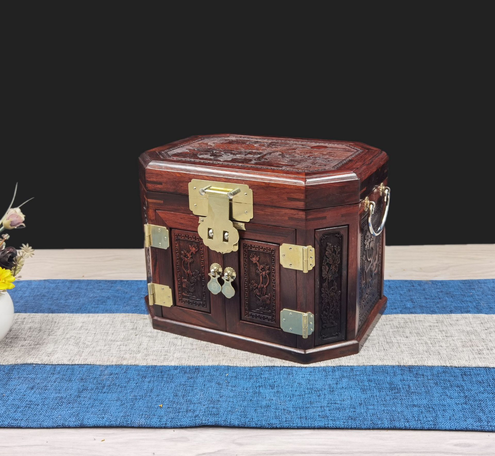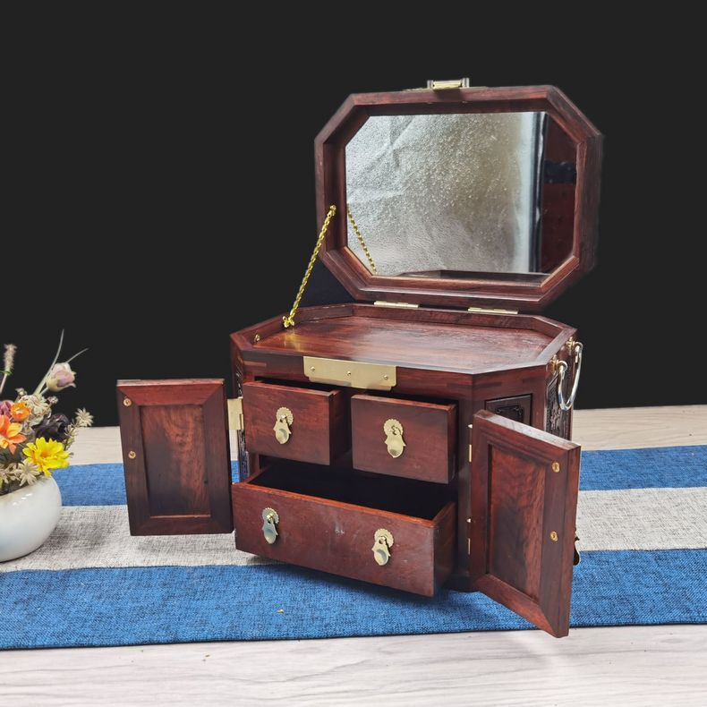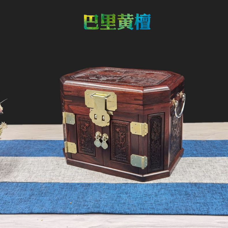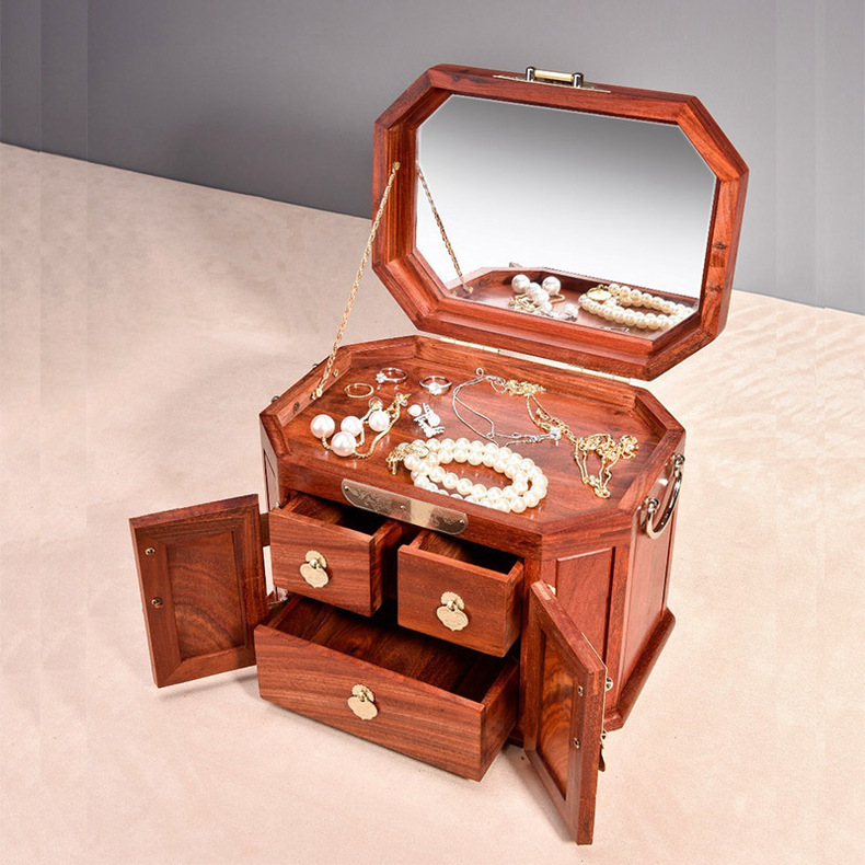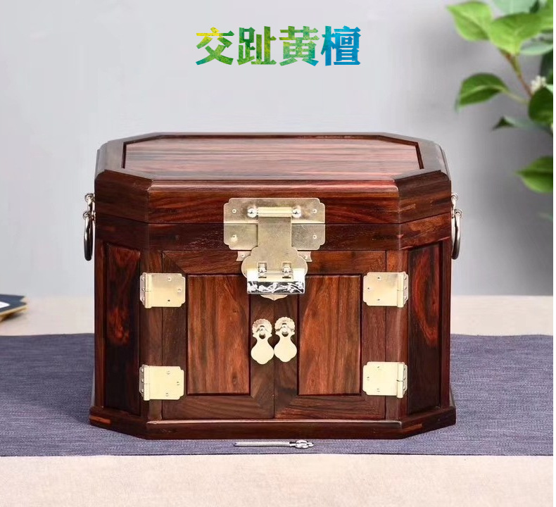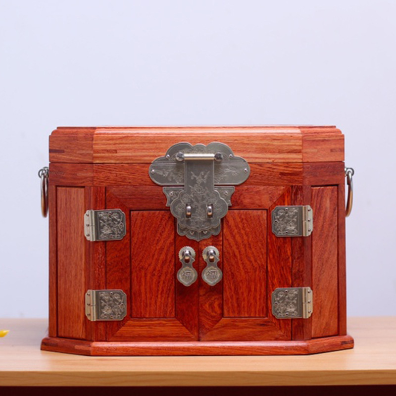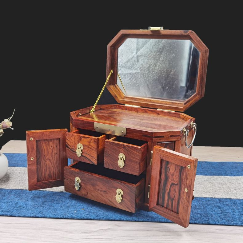 老挝红酸枝花好月圆首饰收纳盒红木珠宝盒新款复古创意便携梳妆盒