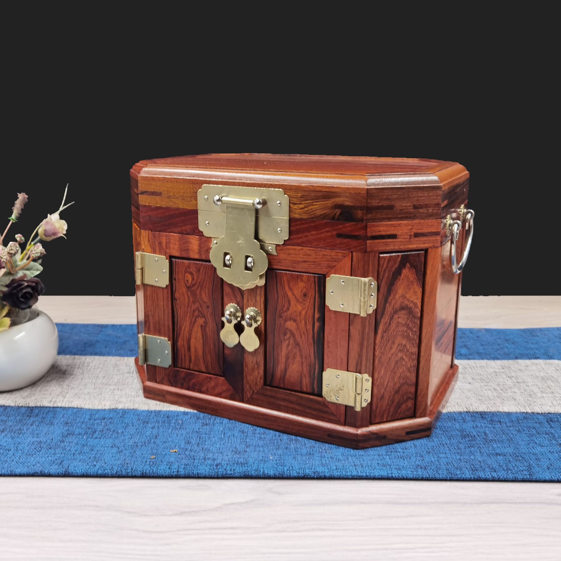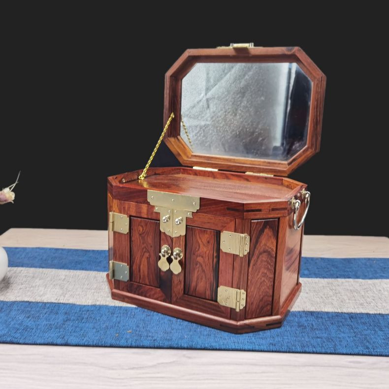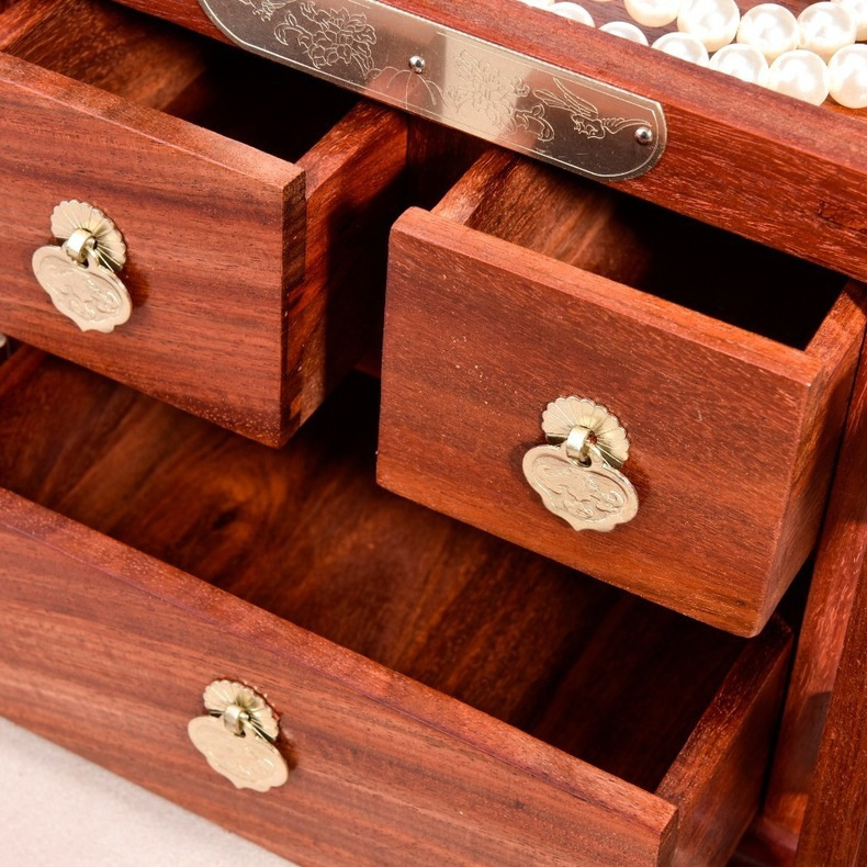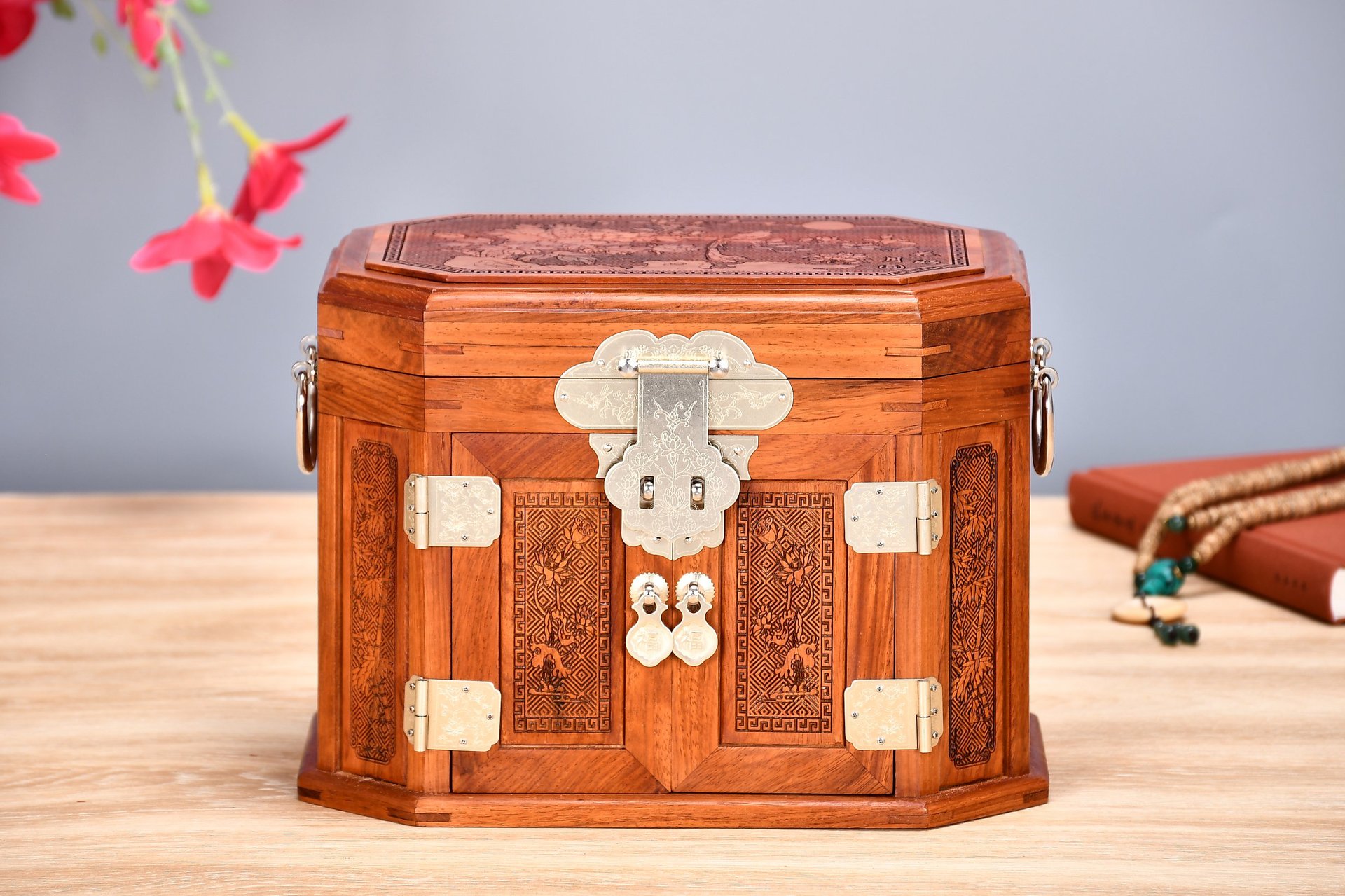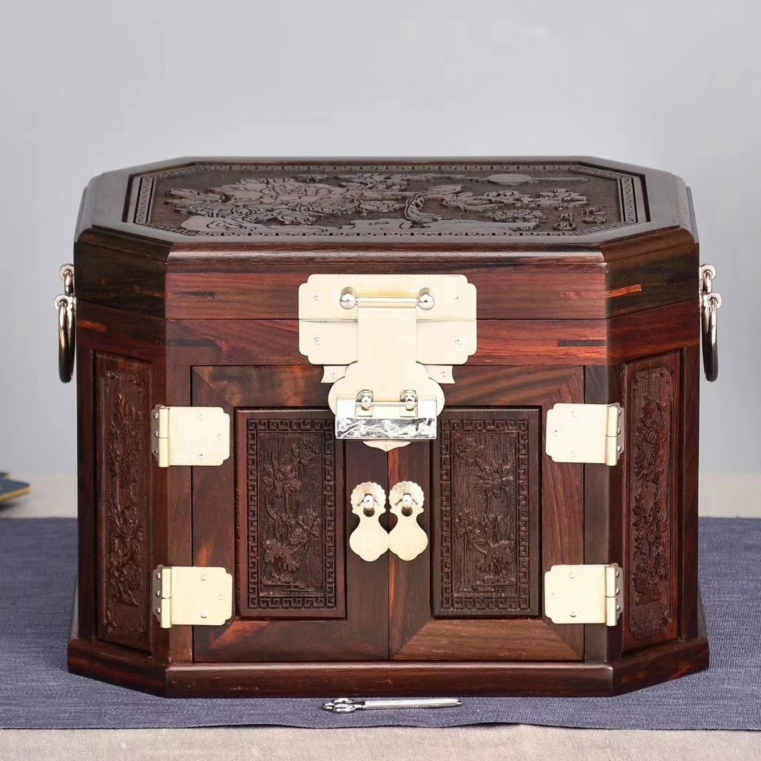 老挝红酸枝花好月圆首饰收纳盒红木珠宝盒新款复古创意便携梳妆盒