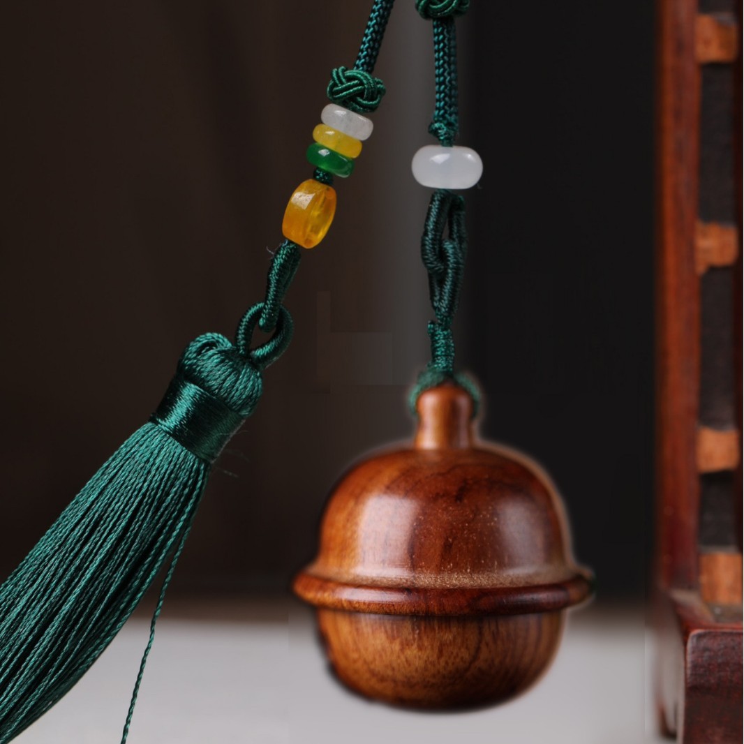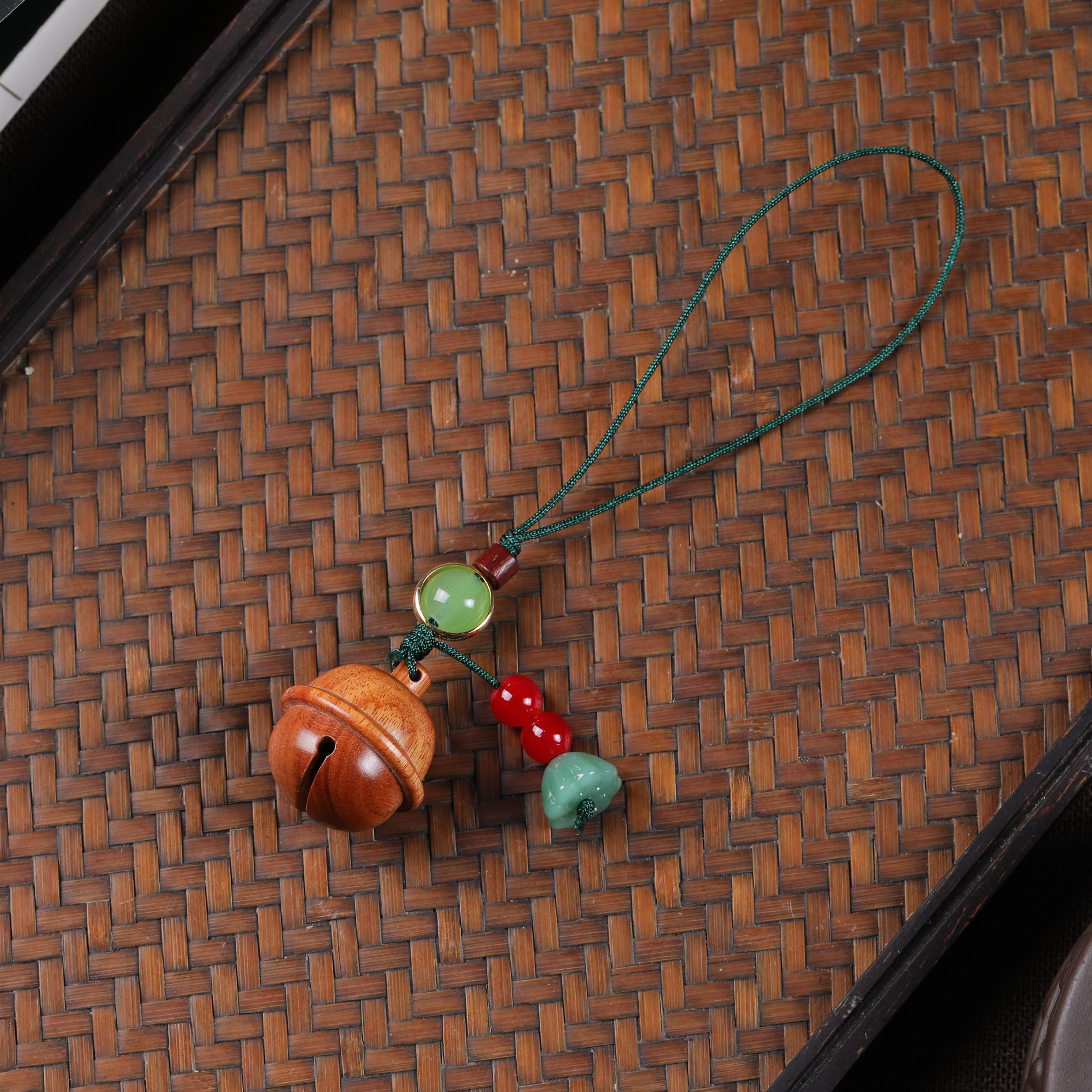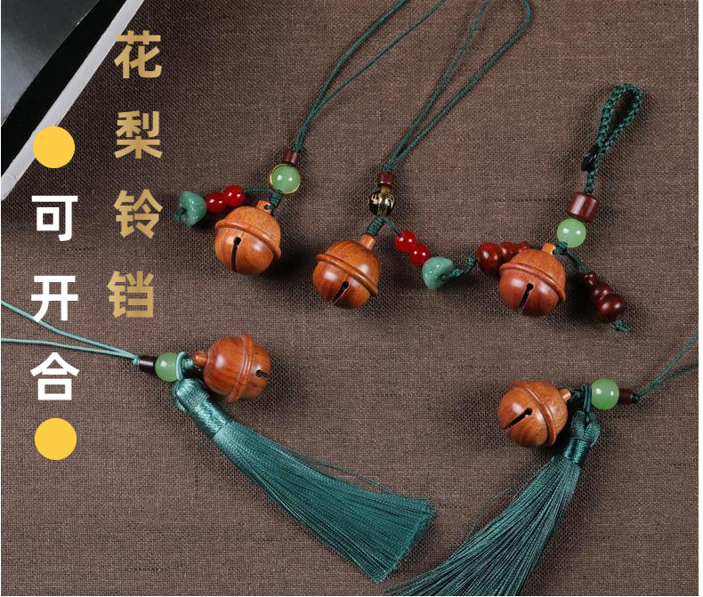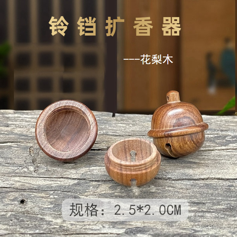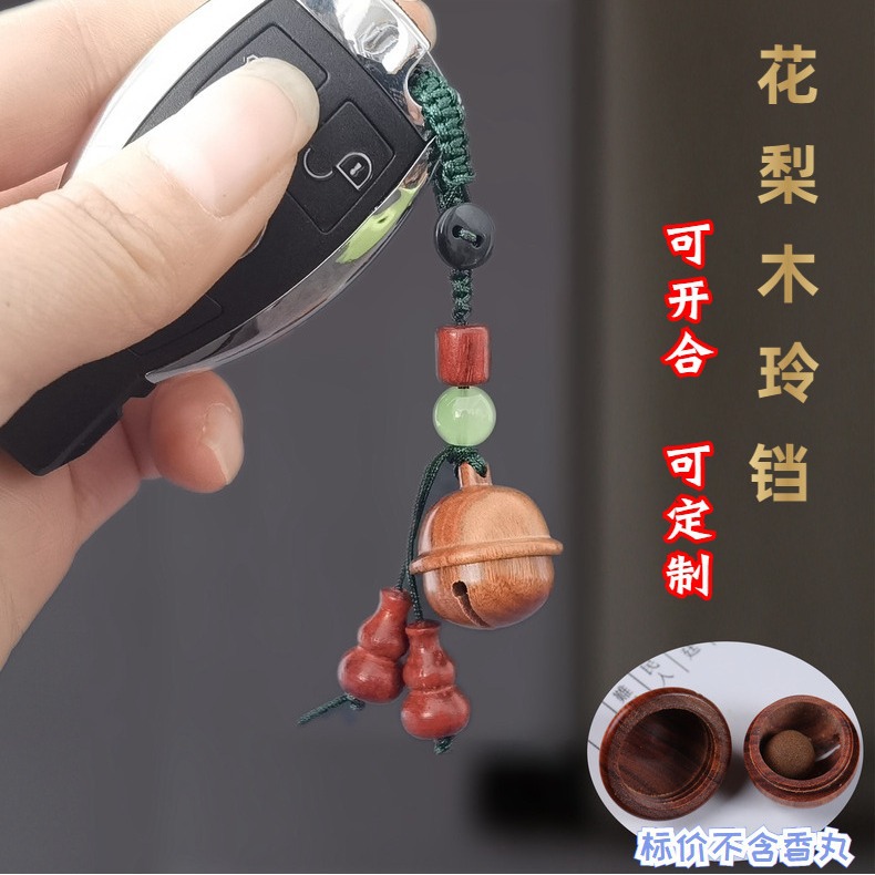 花梨木质玲铛可开合相思豆吊坠 创意钥匙扣小叮当挂件扩香储物瓶