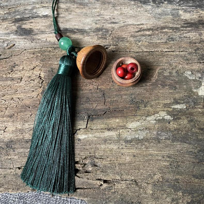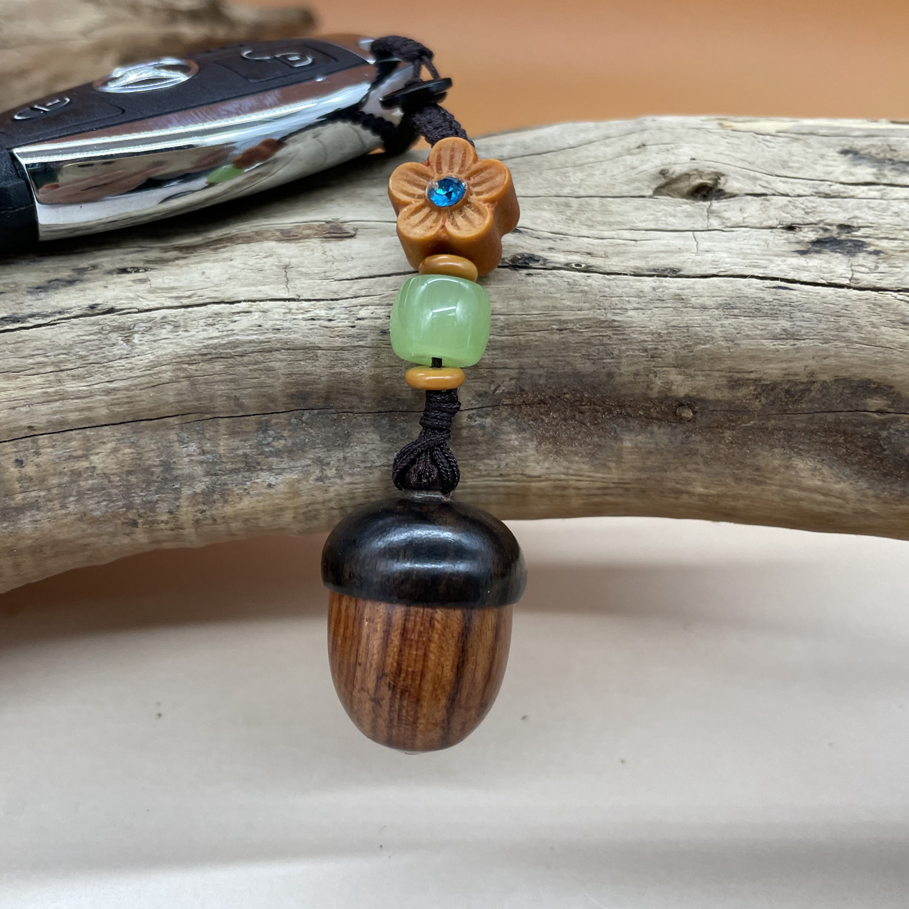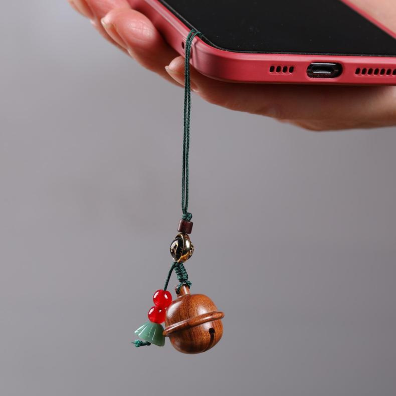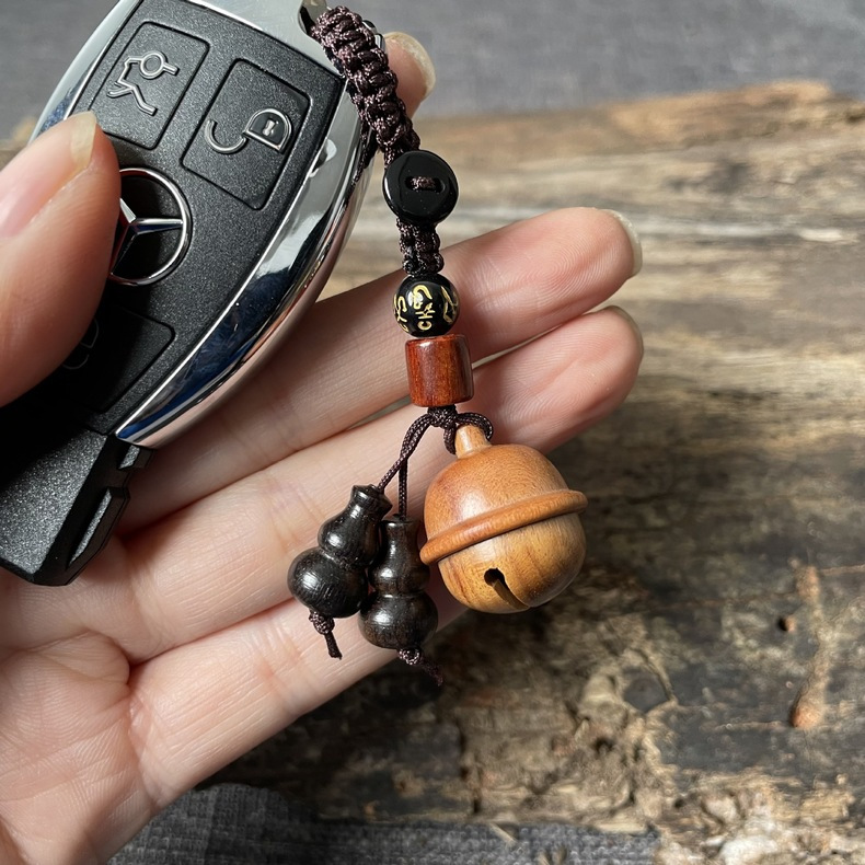 花梨木质玲铛可开合相思豆吊坠 创意钥匙扣小叮当挂件扩香储物瓶