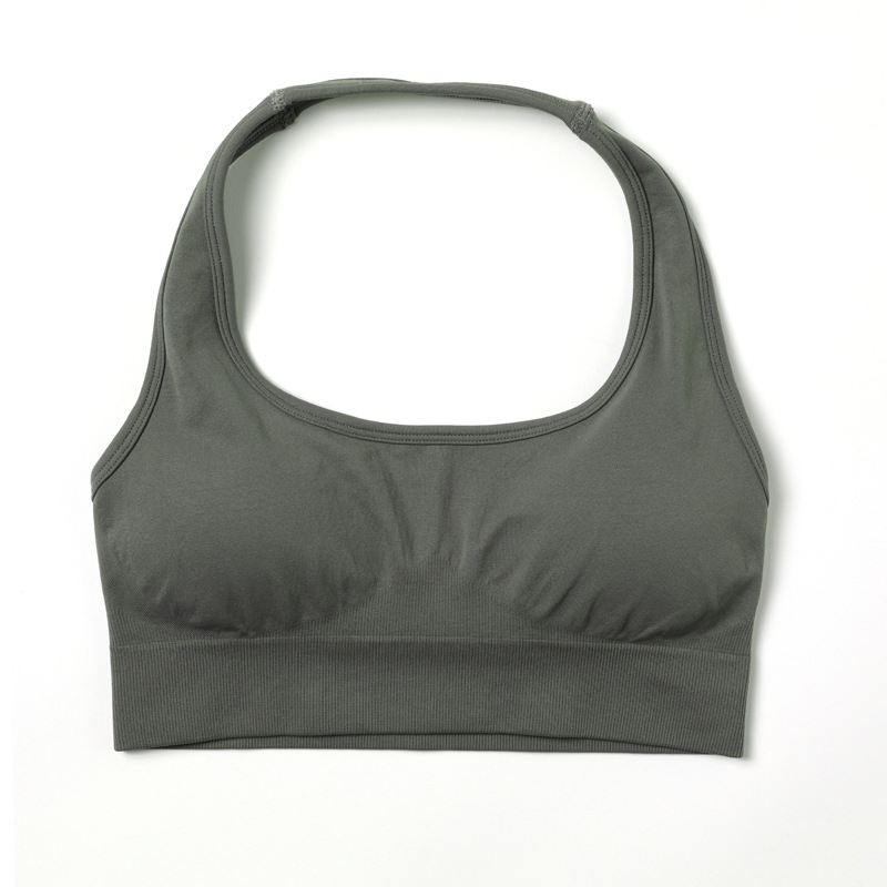 INS夏季新款欧美无缝瑜伽服露背挂脖文胸吊带运动健身提臀女短裤