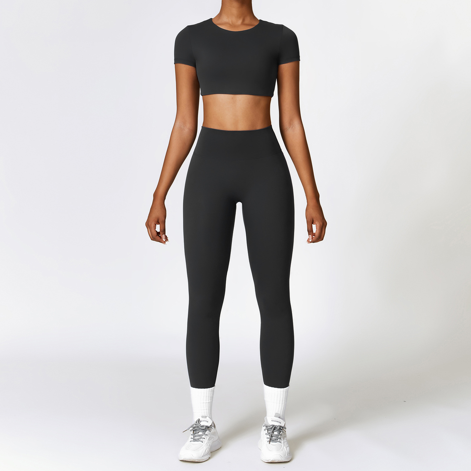 泽创欧美紧身磨毛瑜伽套装速干健身服冬季户外跑步运动套装女8519