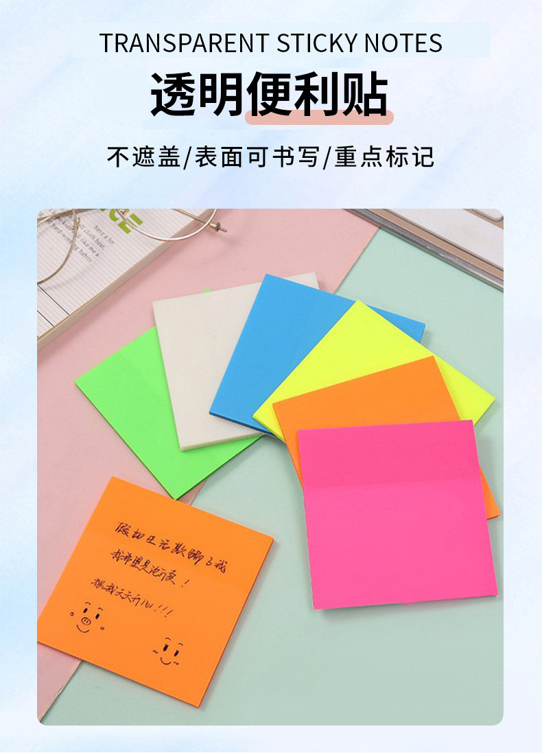现货透明便利贴透视贴彩色pet创意N次贴荧光膜不遮盖索引贴批发