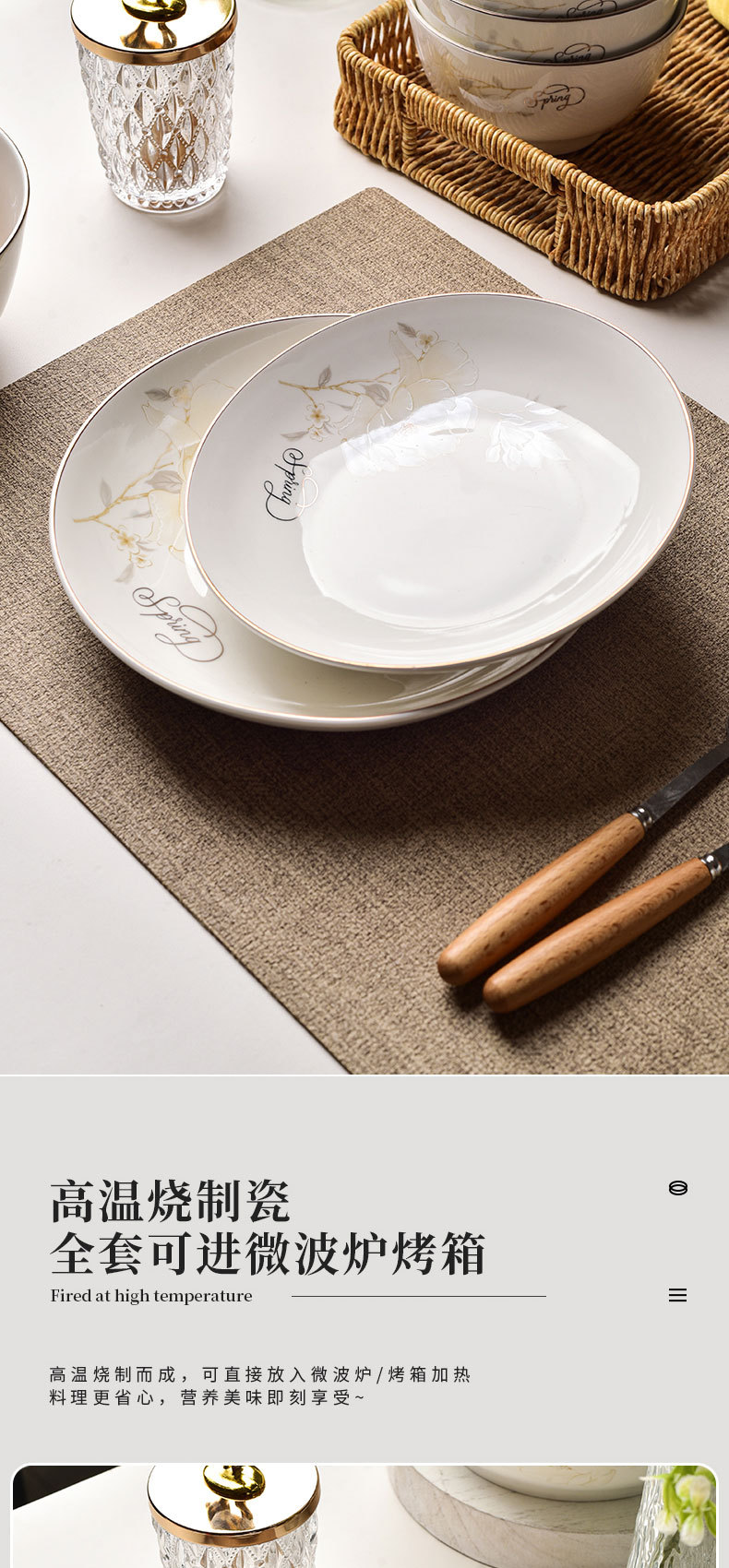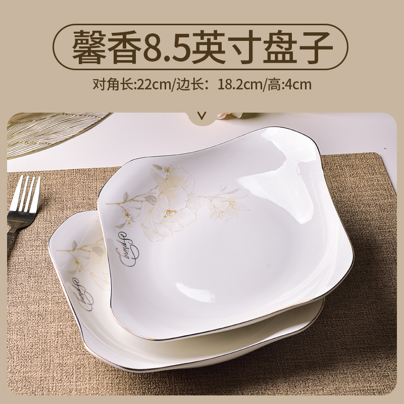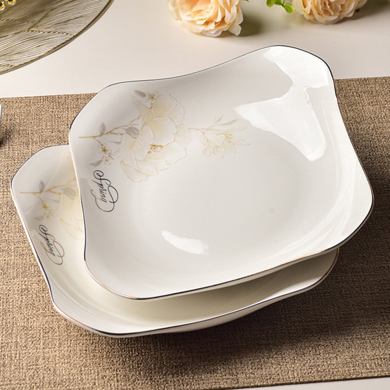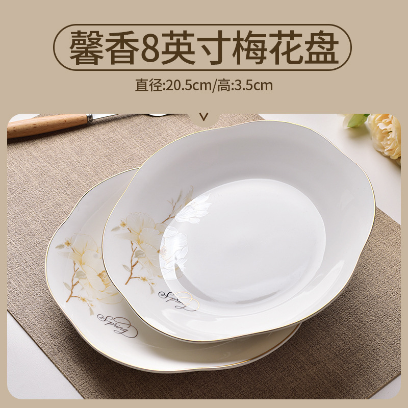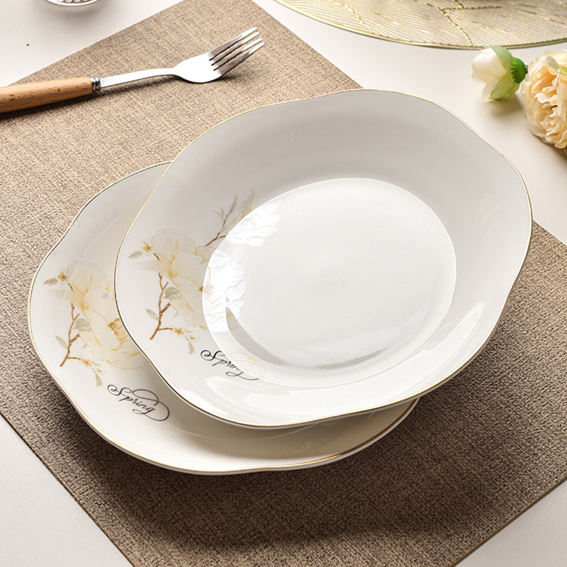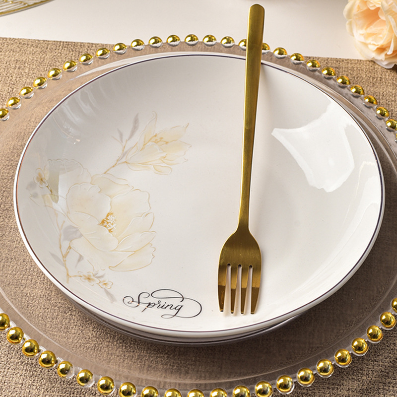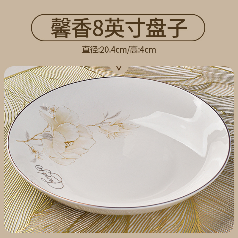 玉珑1992盘子青瓷简中轻奢深盘饭盘花边盘釉下彩轻奢简约家用菜盘