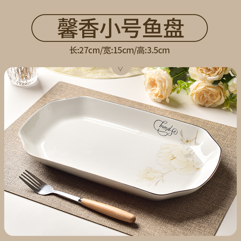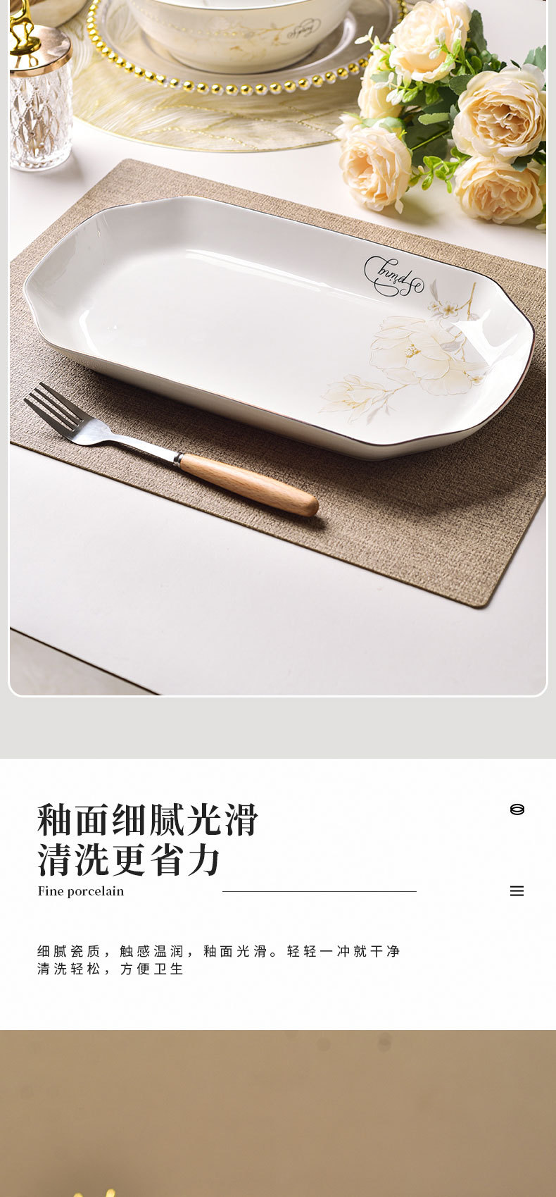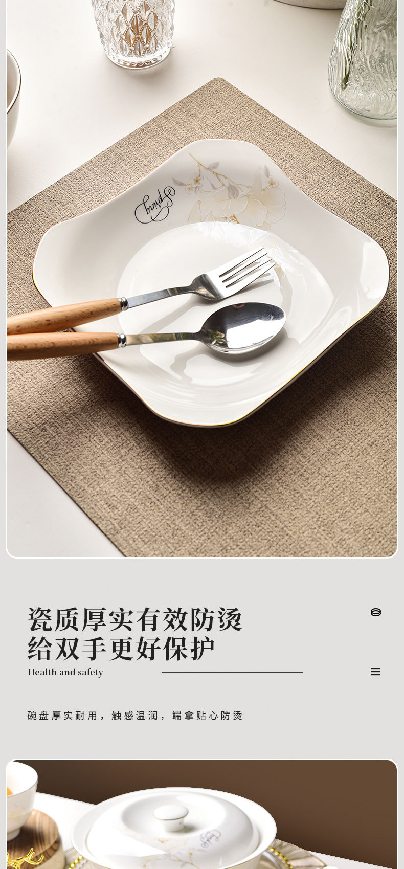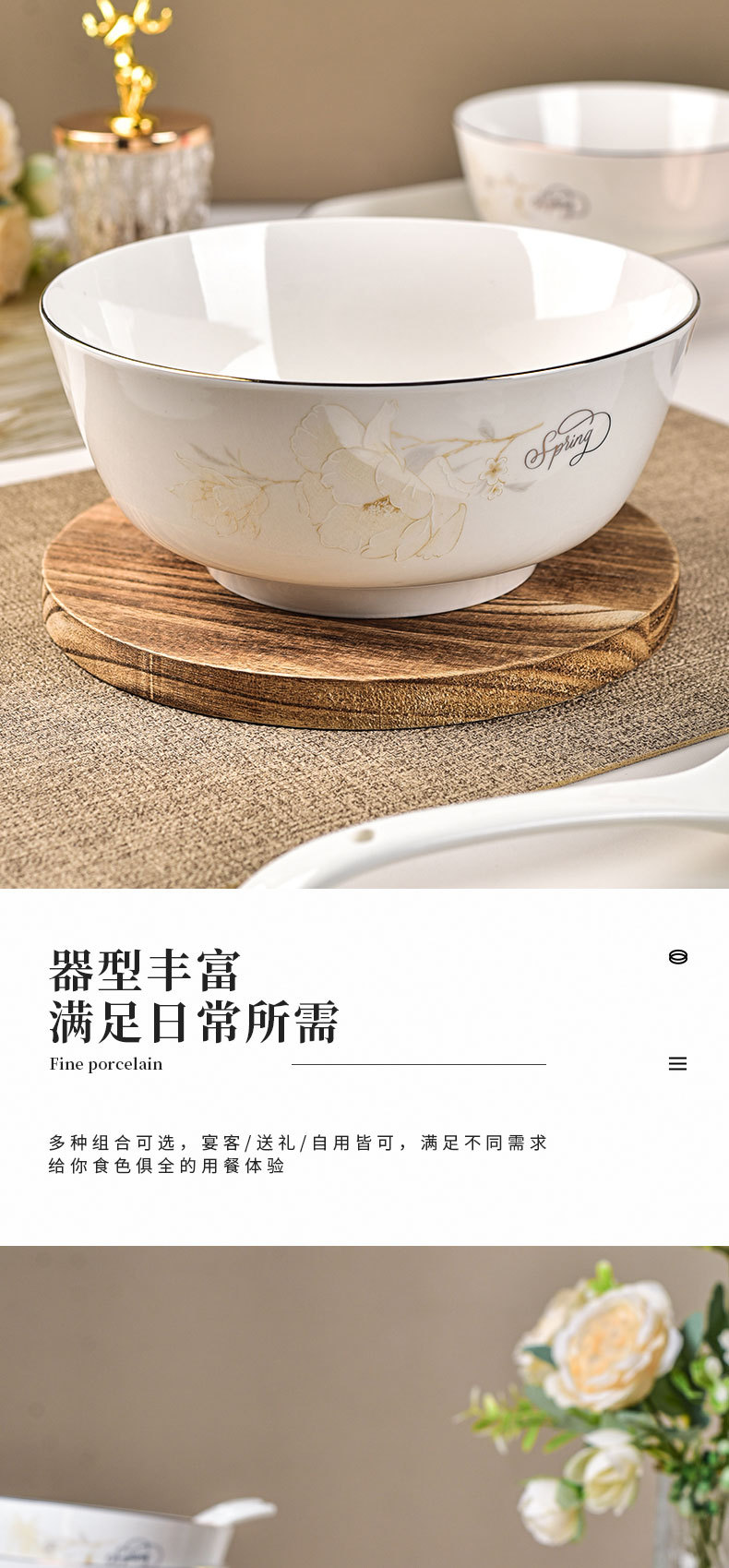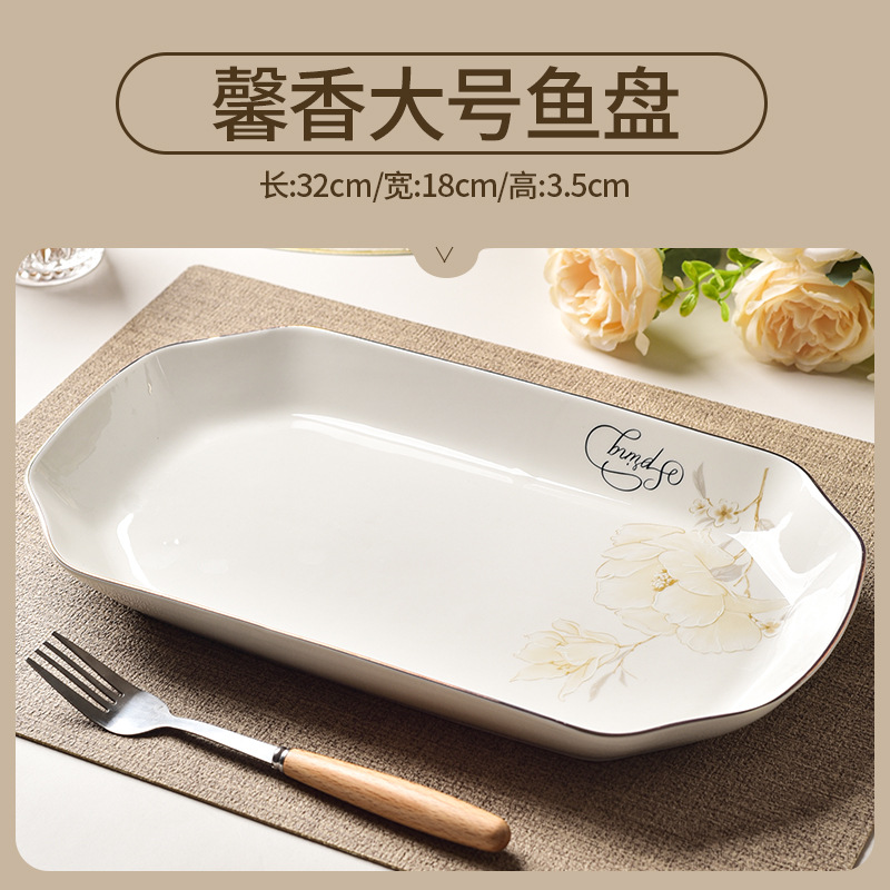 玉珑1992盘子青瓷简中轻奢深盘饭盘花边盘釉下彩轻奢简约家用菜盘