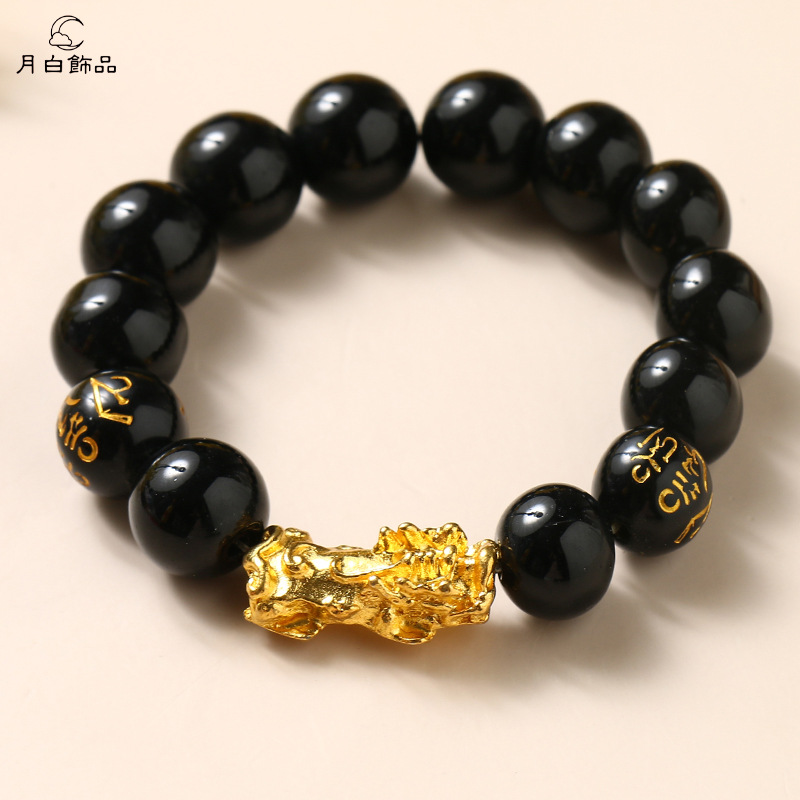 仿越南沙金黑曜石貔貅手链六字箴言貔貅手串男女佛珠礼品现货批发