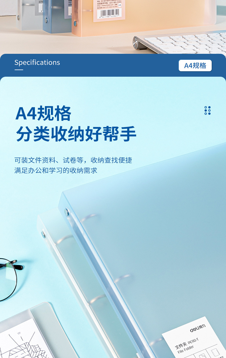 得力PE110-T四孔文件夹打孔资料夹塑料资料夹资料册档案合同夹