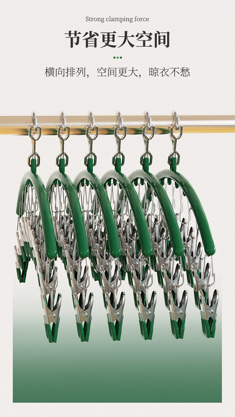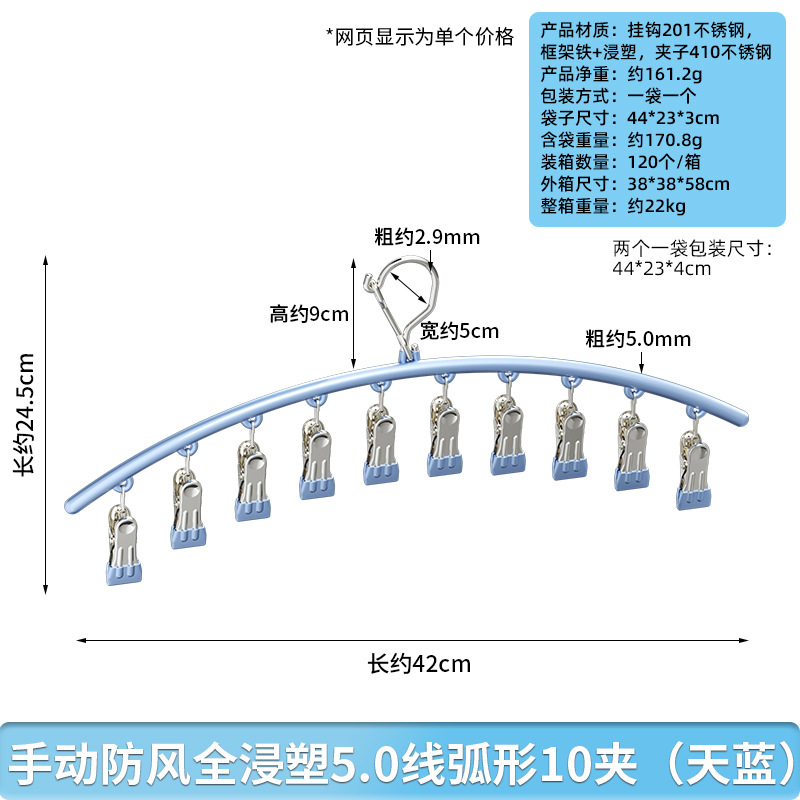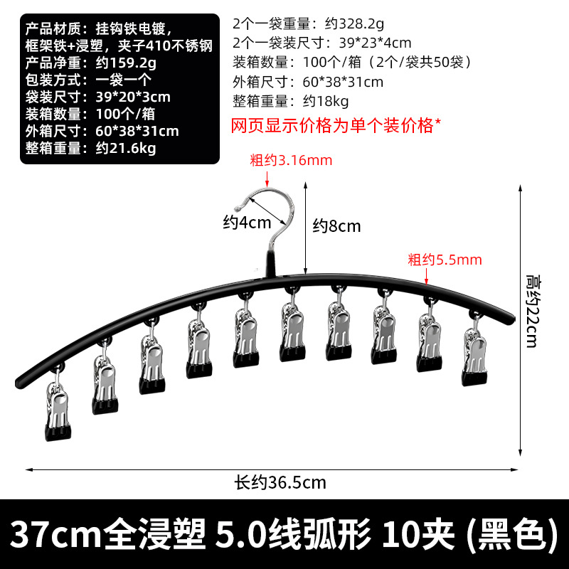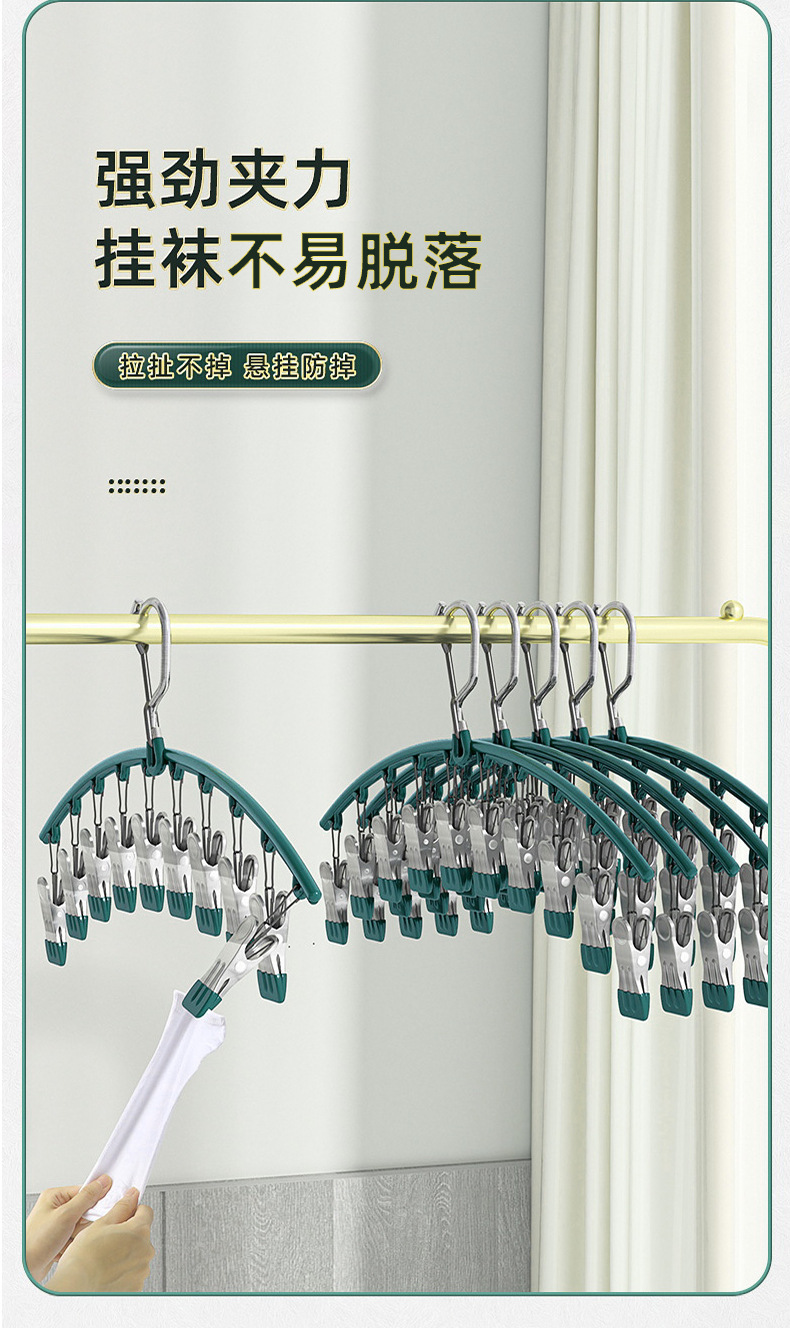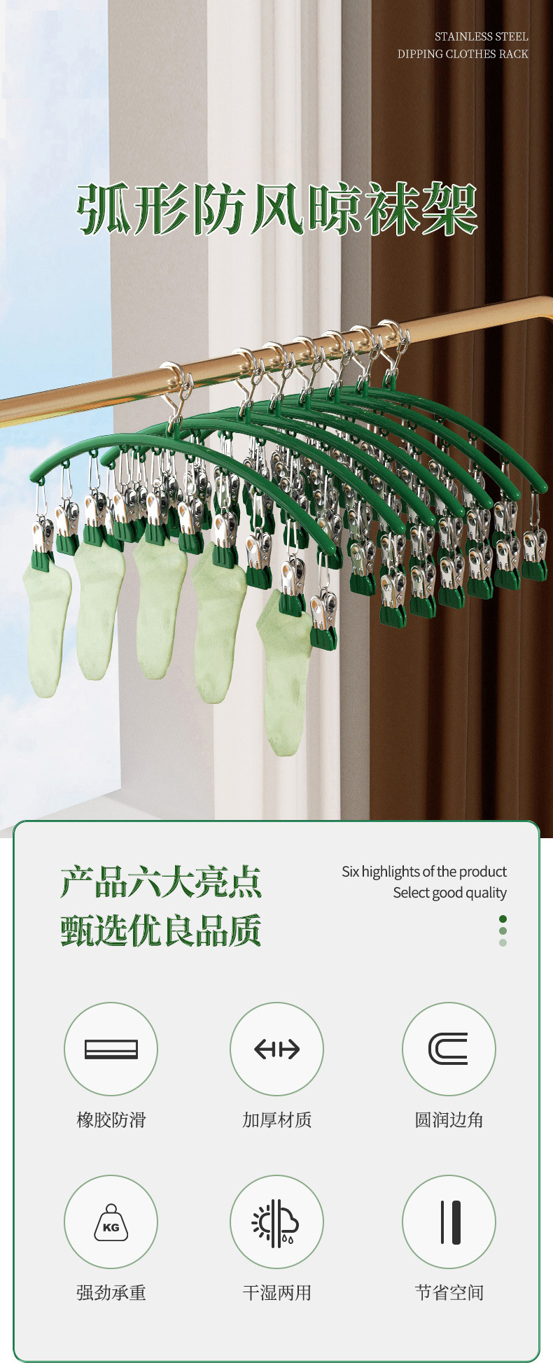 不锈钢袜子架家用内衣裤挂钩防风多夹子晾衣架弧形无痕衣架批发