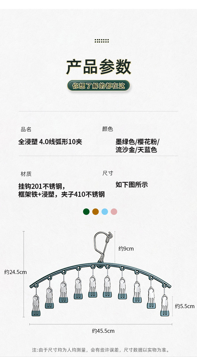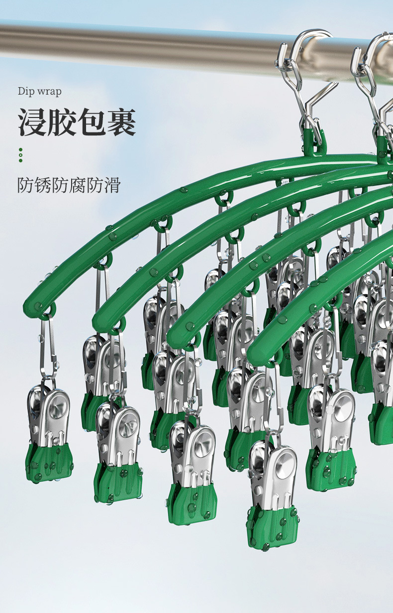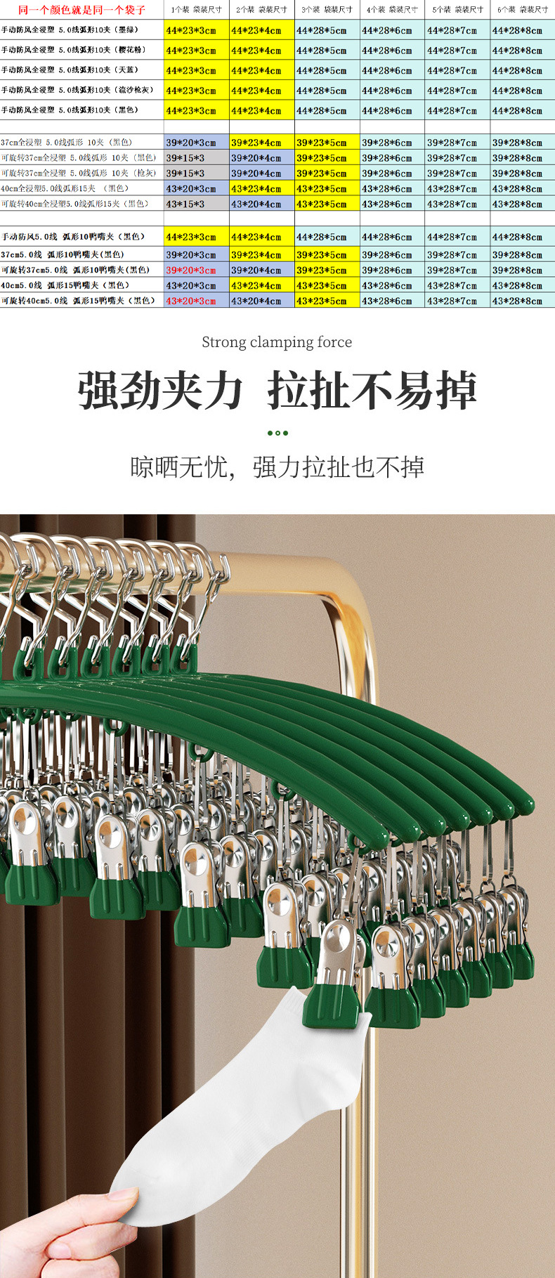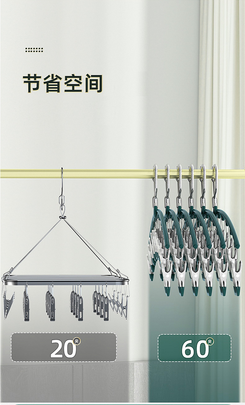 不锈钢袜子架家用内衣裤挂钩防风多夹子晾衣架弧形无痕衣架批发