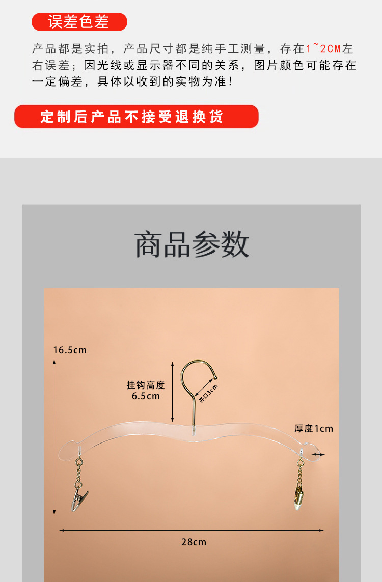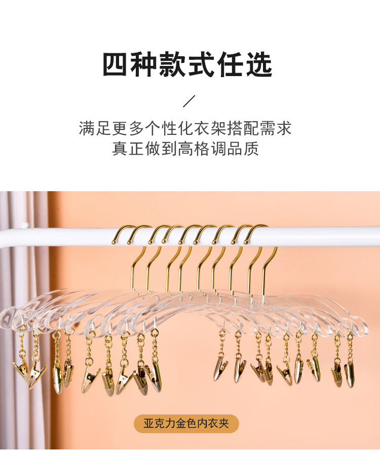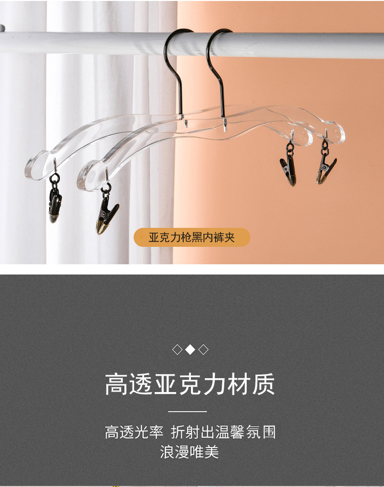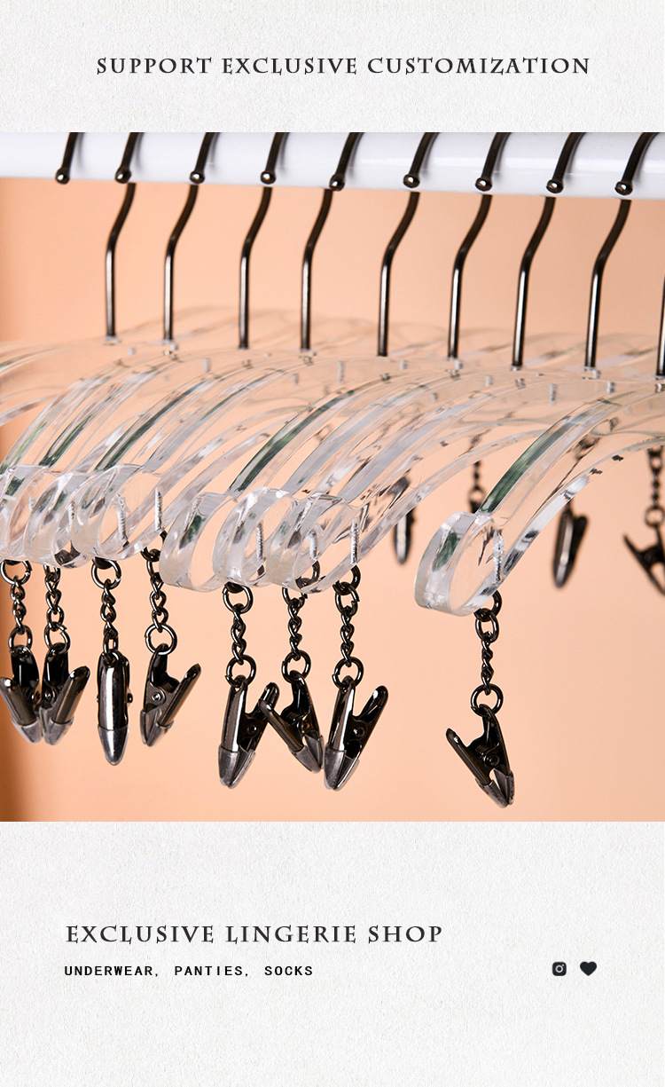 亚克力内衣衣架 服装店透明水晶衣架内衣店文胸架内衣架内裤夹子