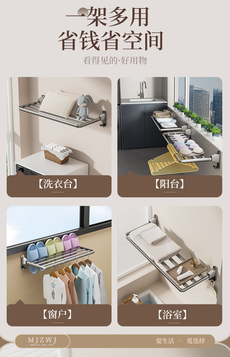 阳台晾衣架可打孔折叠晾晒隐形晾晒架晒鞋袜晾晒架子浴室浴巾架