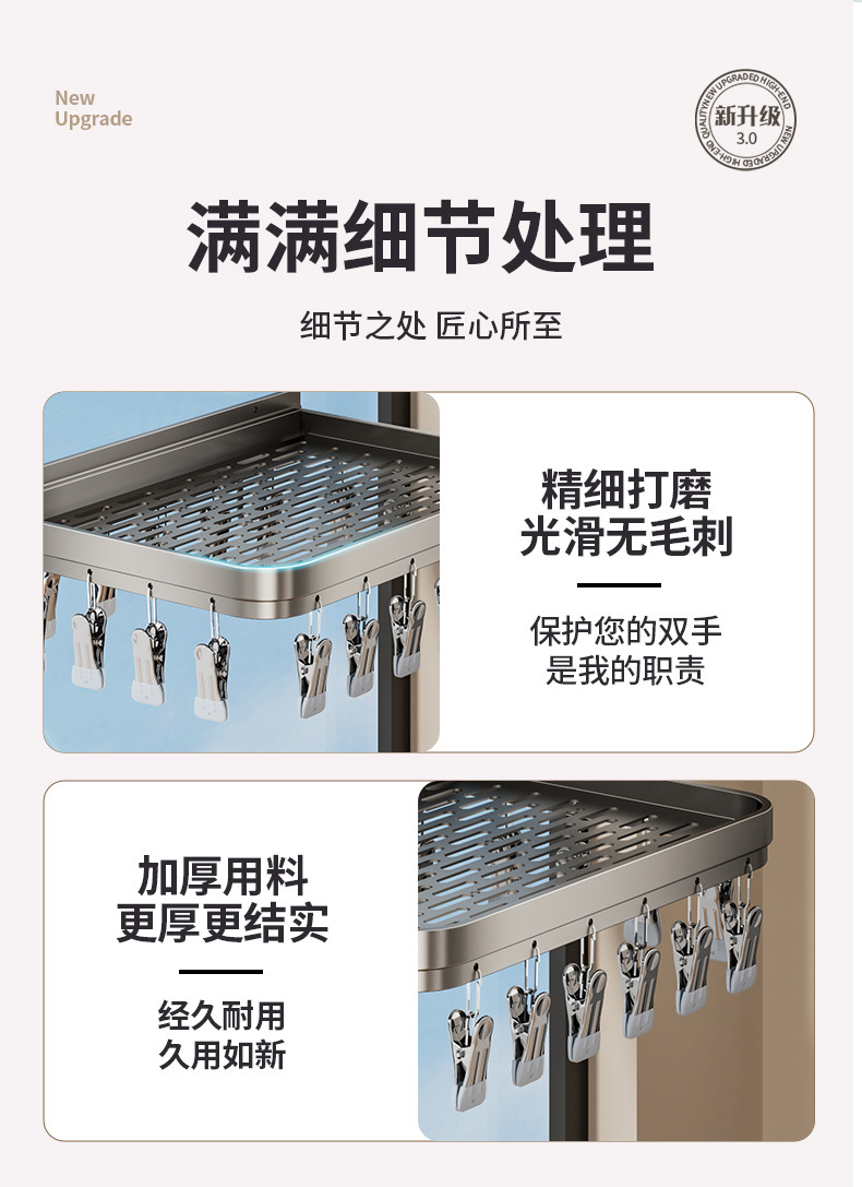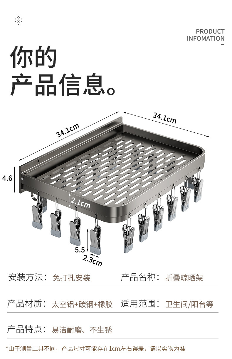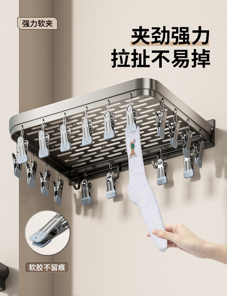 阳台折叠晾衣架免打孔晾晒网多夹子晒袜子鞋子篮太空铝室内凉衣架