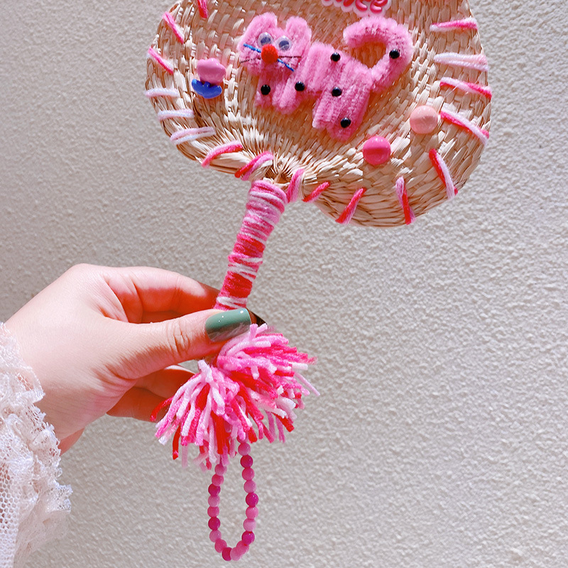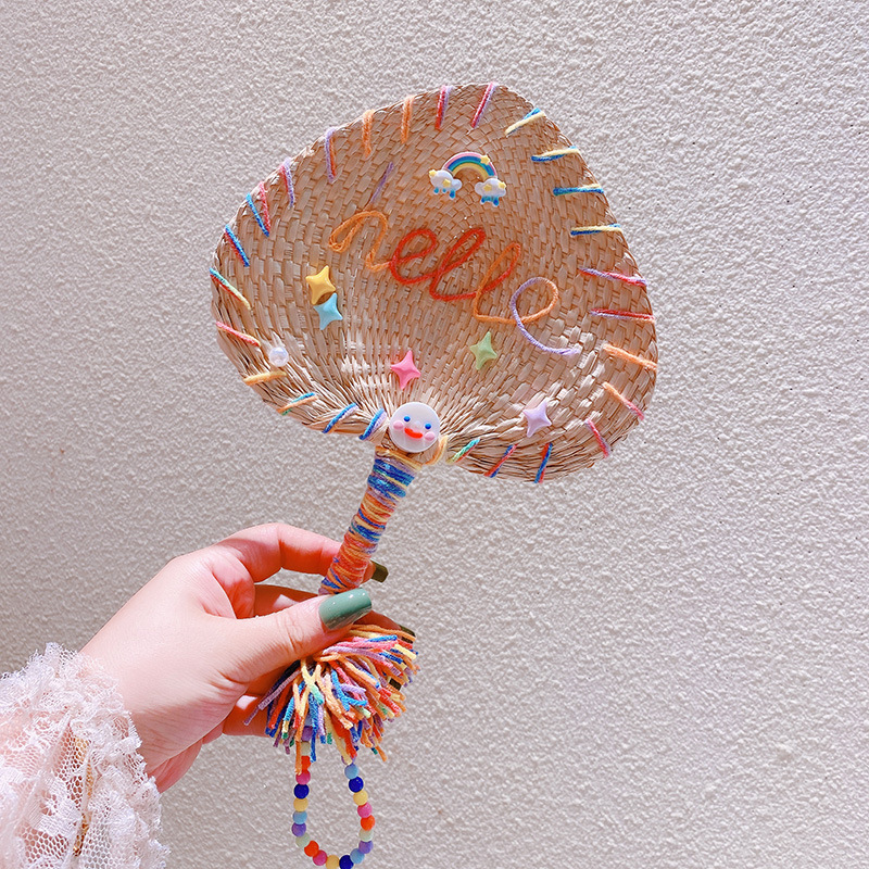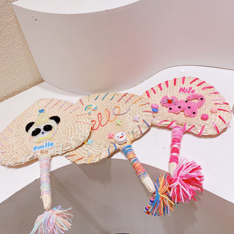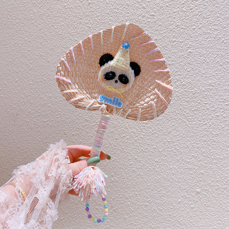 HD4363夏季老式葵扇复古草莓编织扇子手摇扇可爱小熊猫芭蕉扇蒲扇