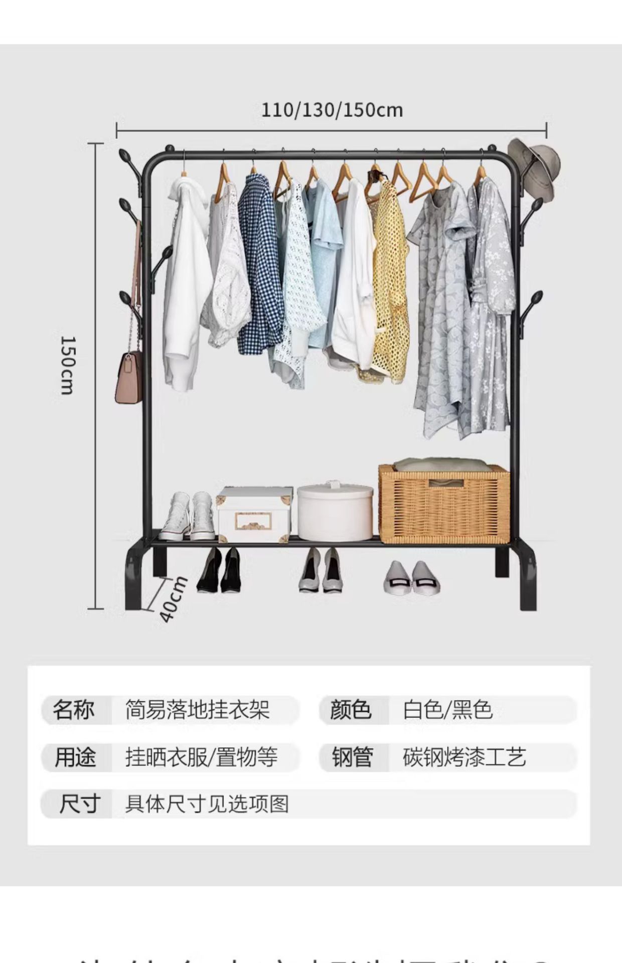 衣架落地立式卧室衣帽挂衣架家用客厅网红轻奢晾衣架双杆式晒衣架