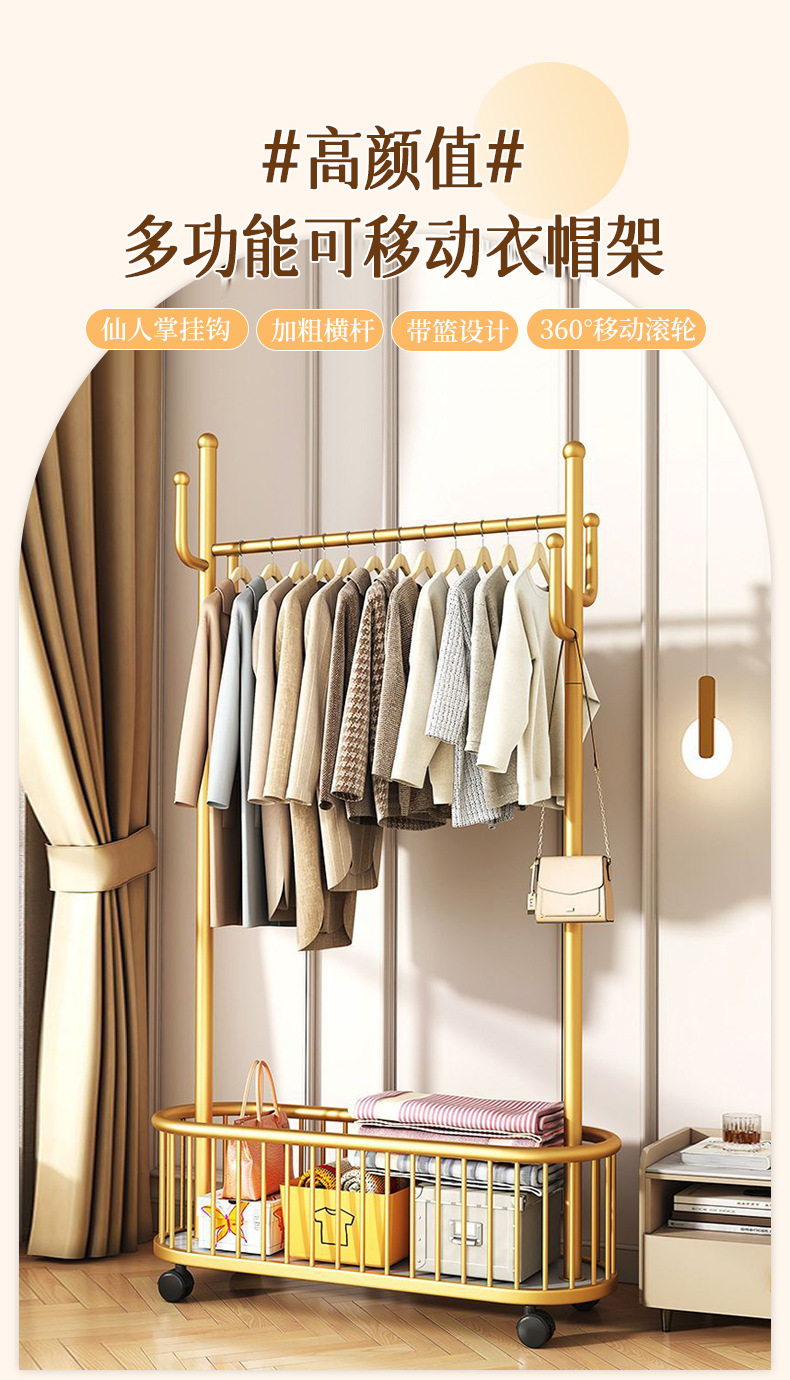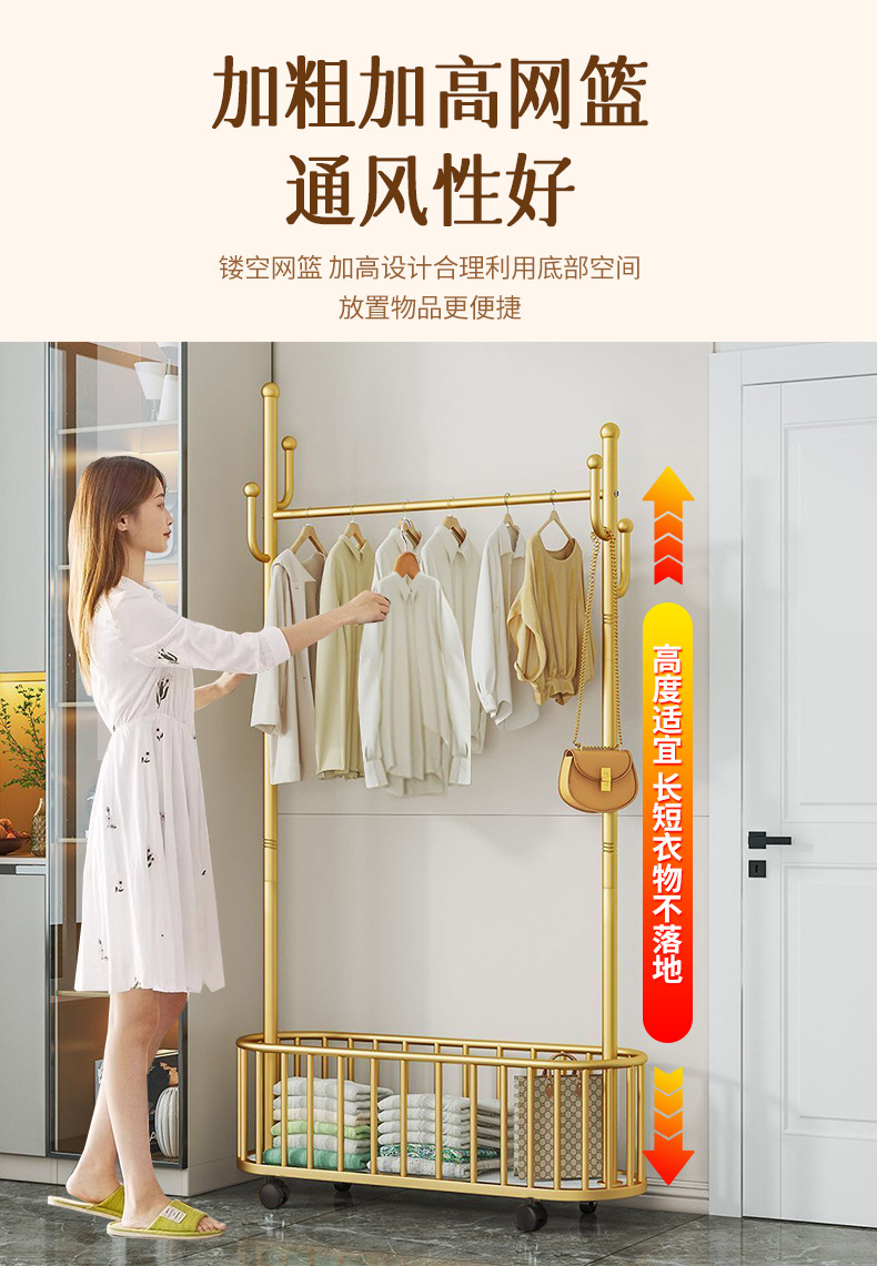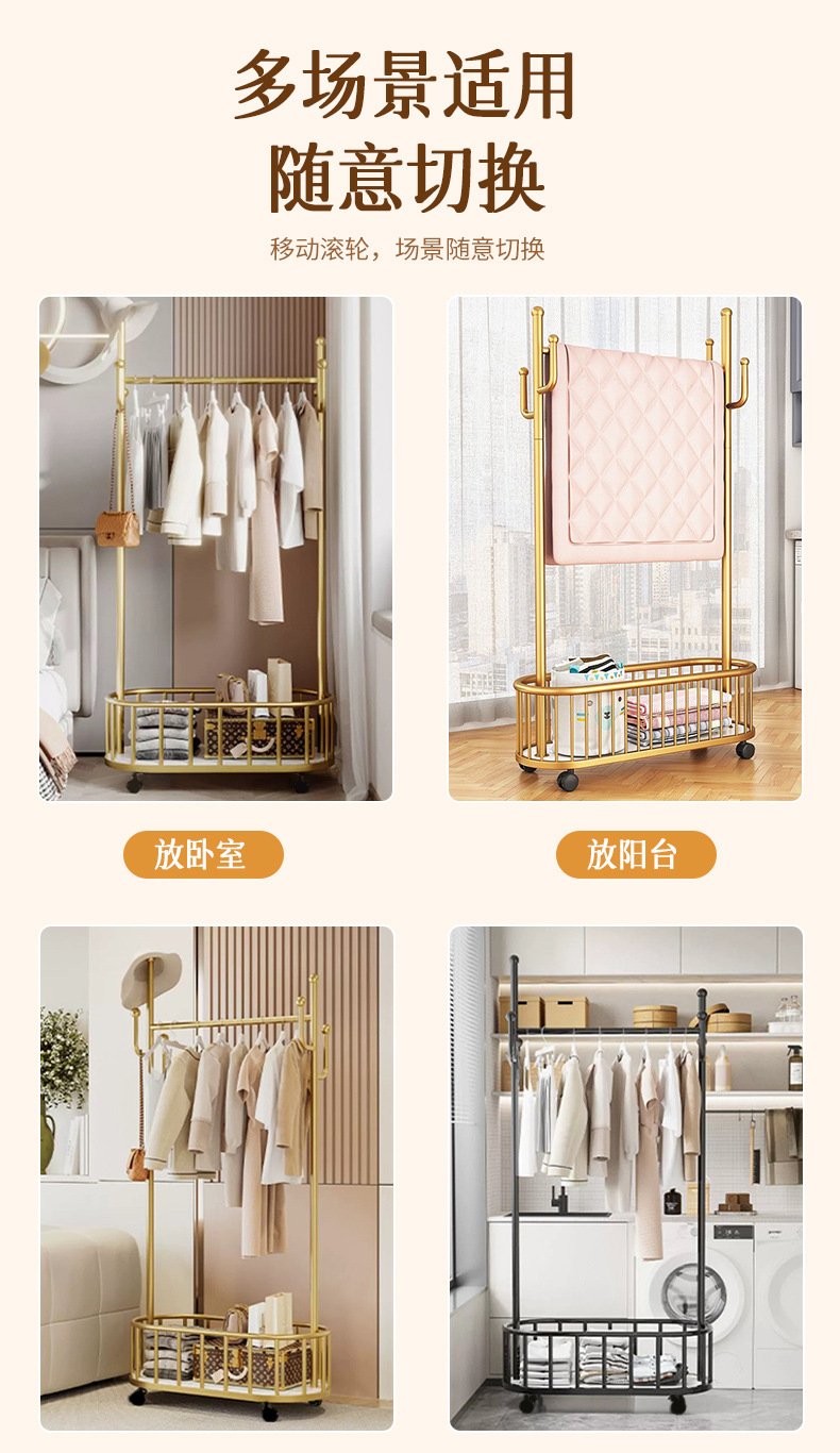 衣架落地卧室挂衣架可移动轻奢晾衣架室内衣服衣服衣架子落地立式