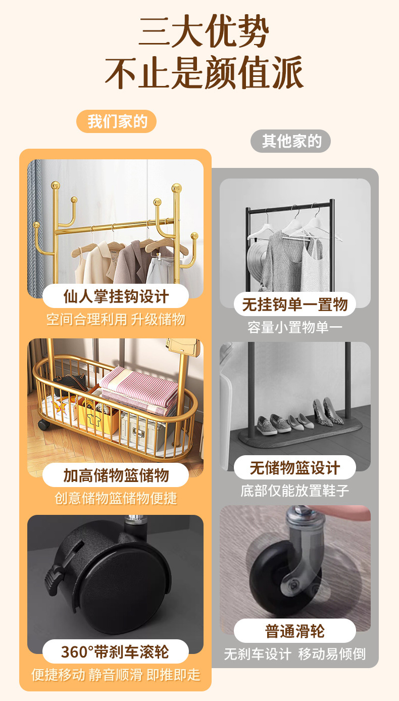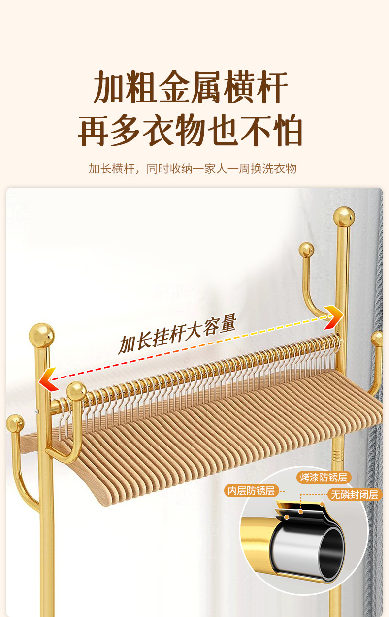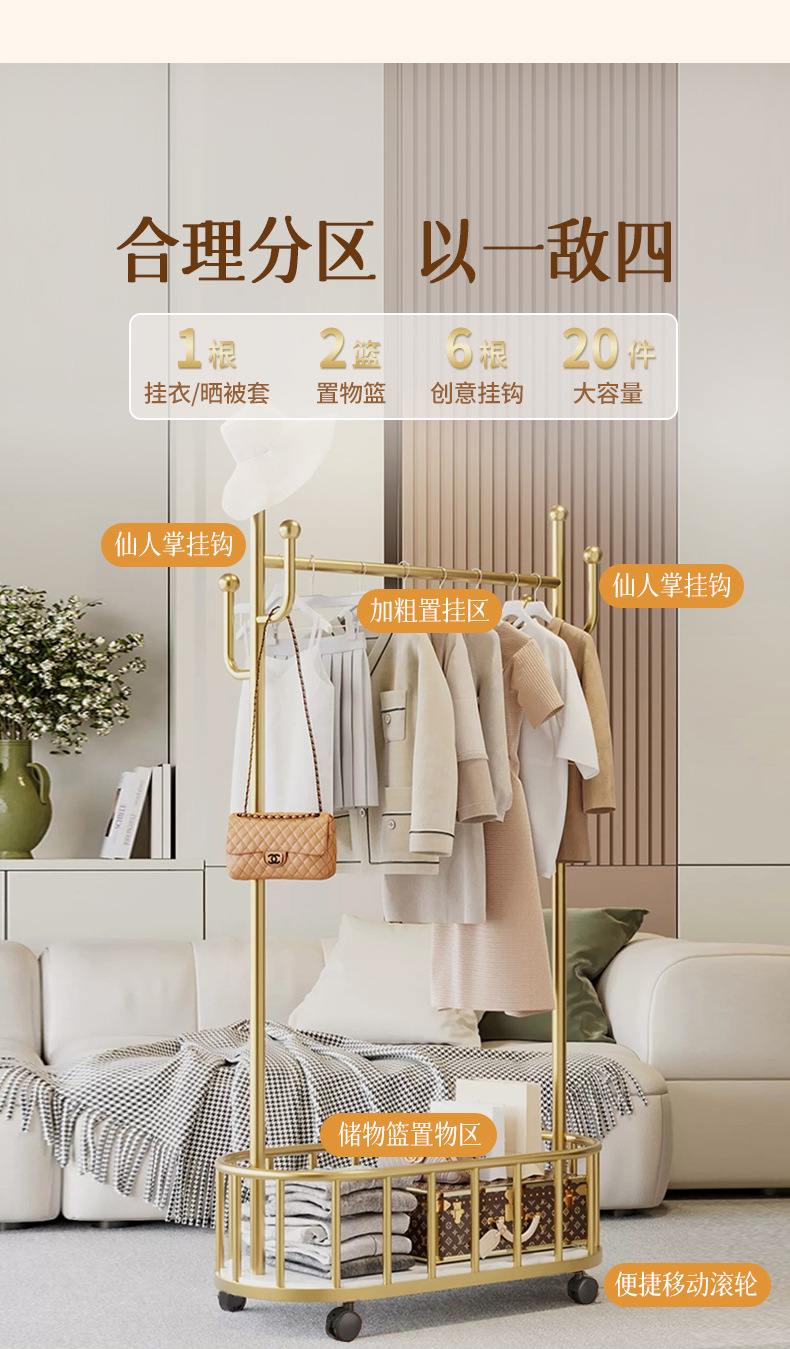 衣架落地卧室挂衣架可移动轻奢晾衣架室内衣服衣服衣架子落地立式
