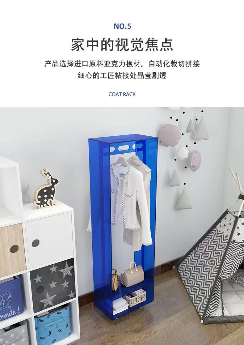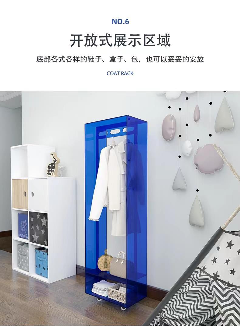 北欧轻奢简易亚克力衣帽架落地卧室家用网红简约挂衣收纳架带轮子