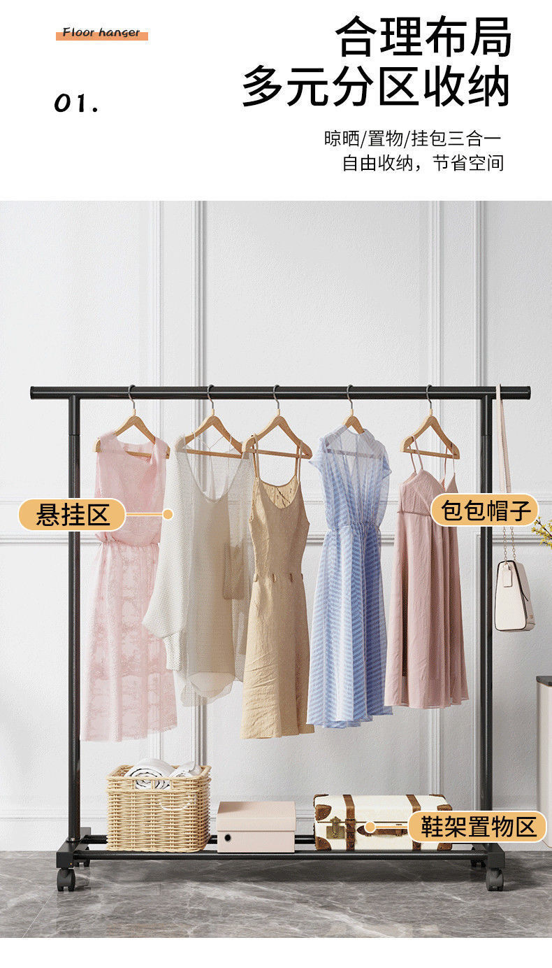 衣架落地立式家用卧室简易衣帽架室内入门挂衣架可移动阳台谷无从