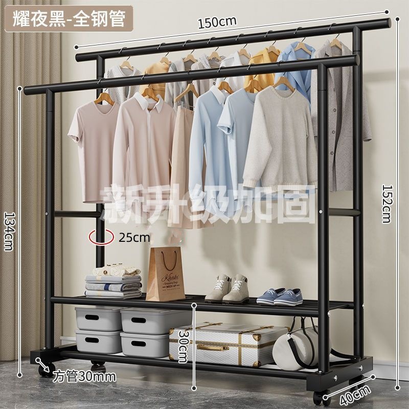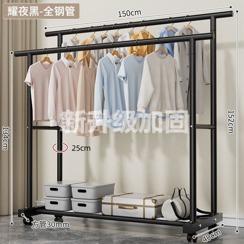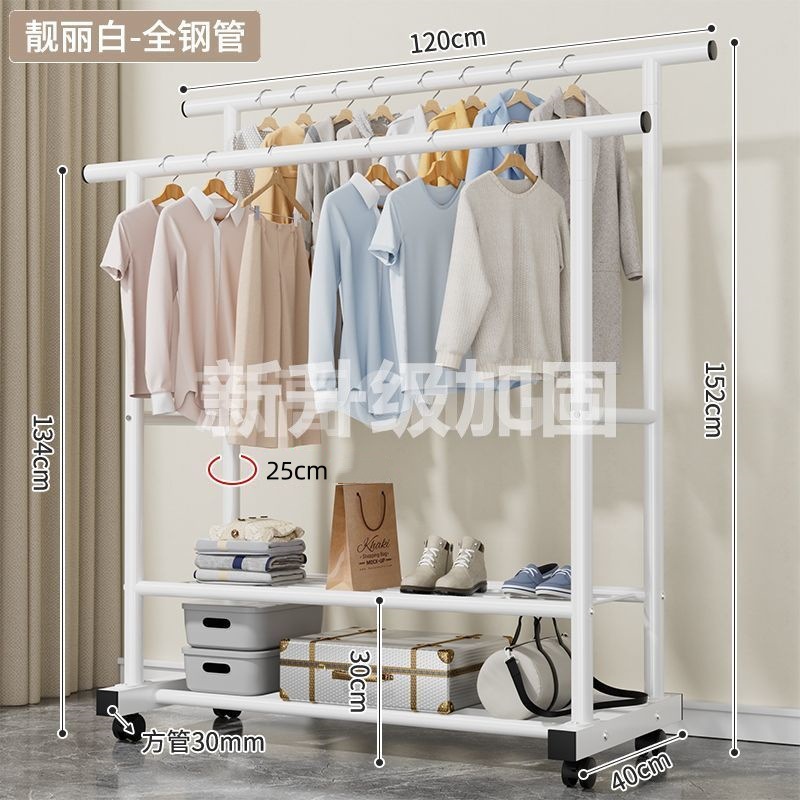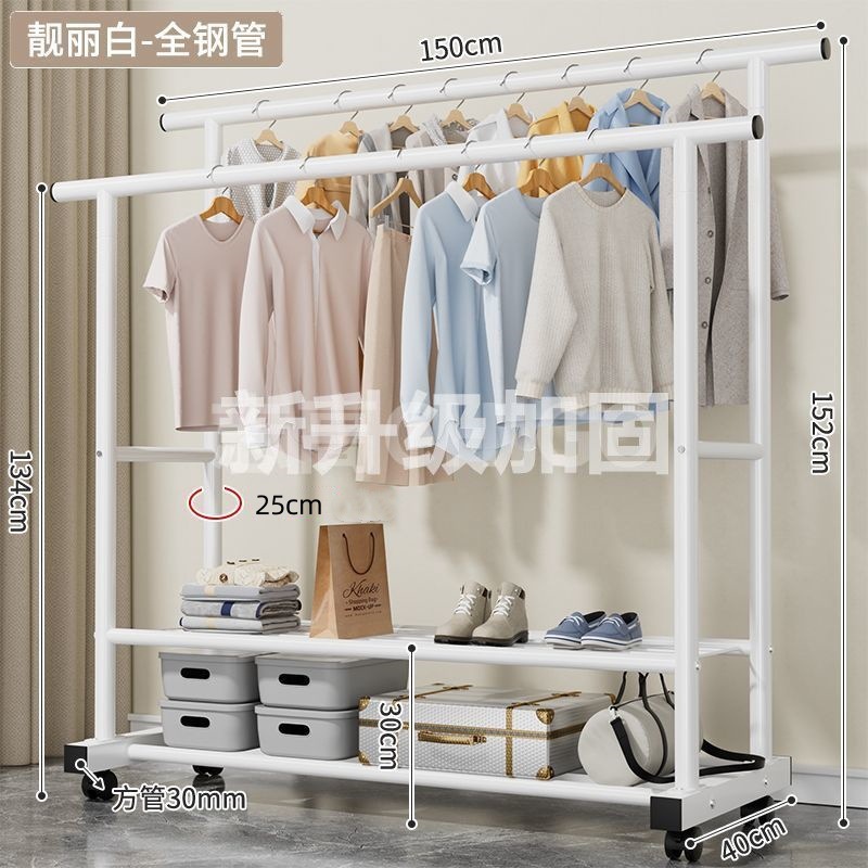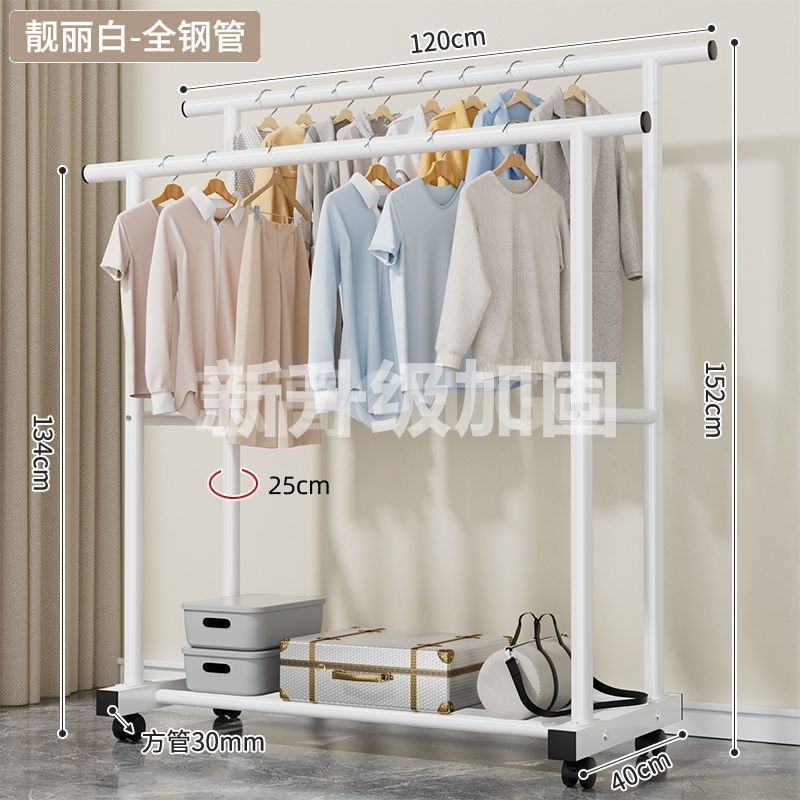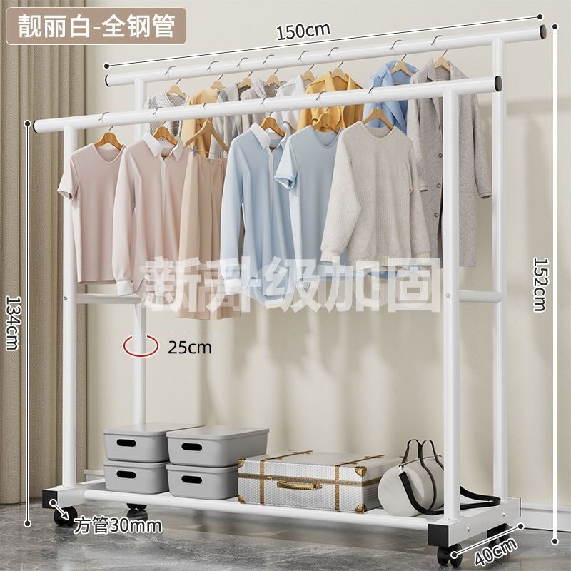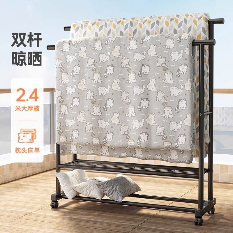 特粗加厚双排简易晾晒架落地家用卧室阳台移动收纳整理多用晾衣架