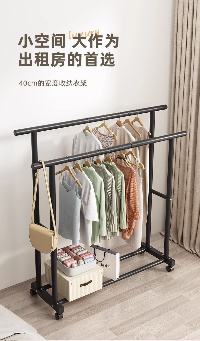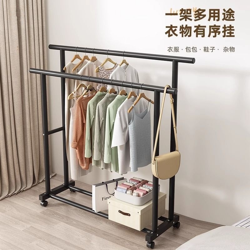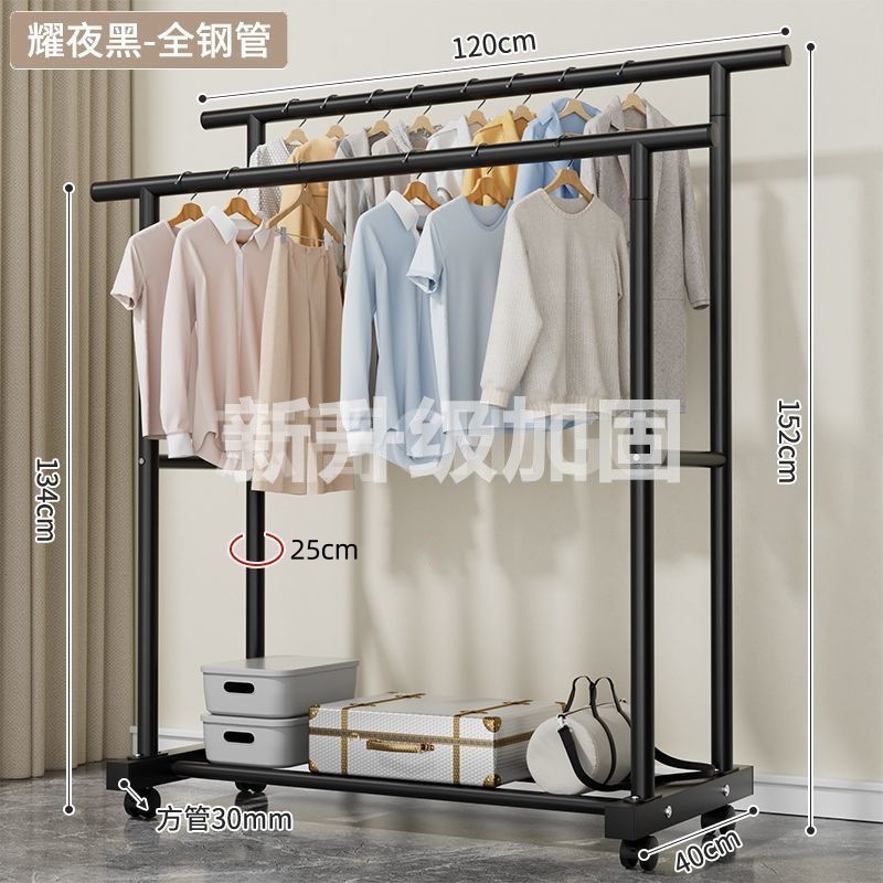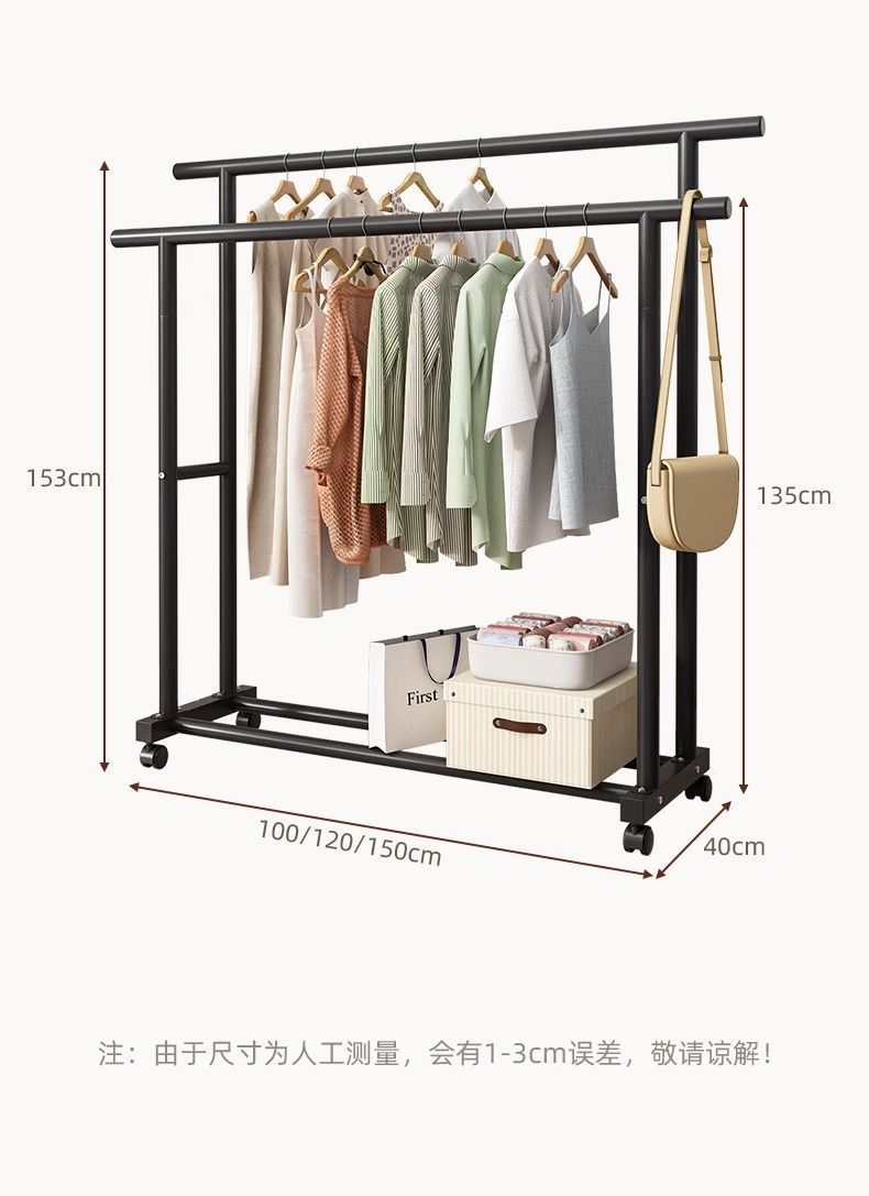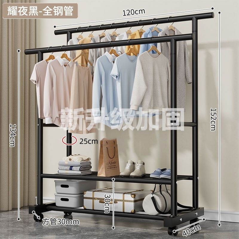特粗加厚双排简易晾晒架落地家用卧室阳台移动收纳整理多用晾衣架